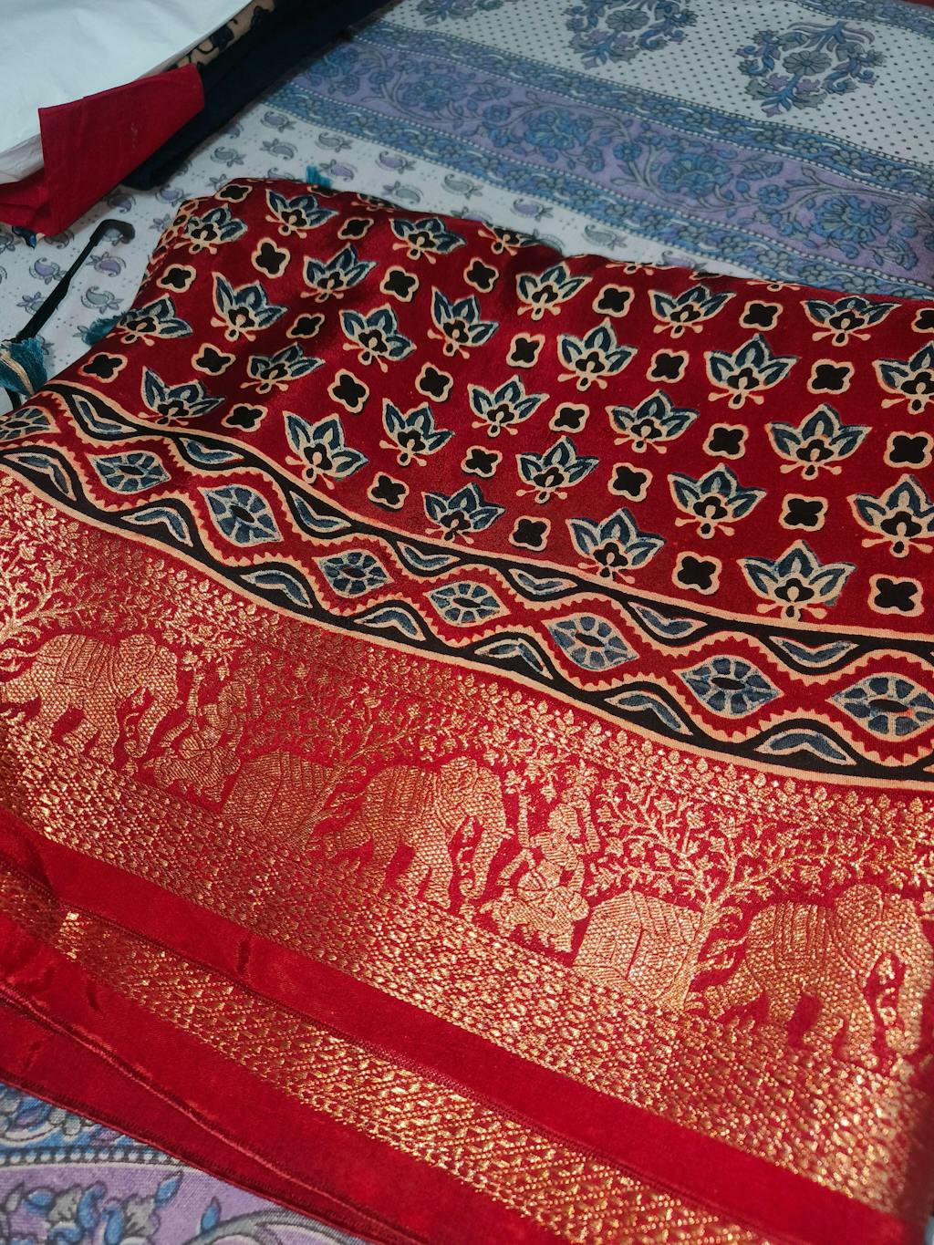 Very beautiful saree of Ajrakh what I want actually. Material is also very good. 👍 looking forward to buying more from Myposhaakh.