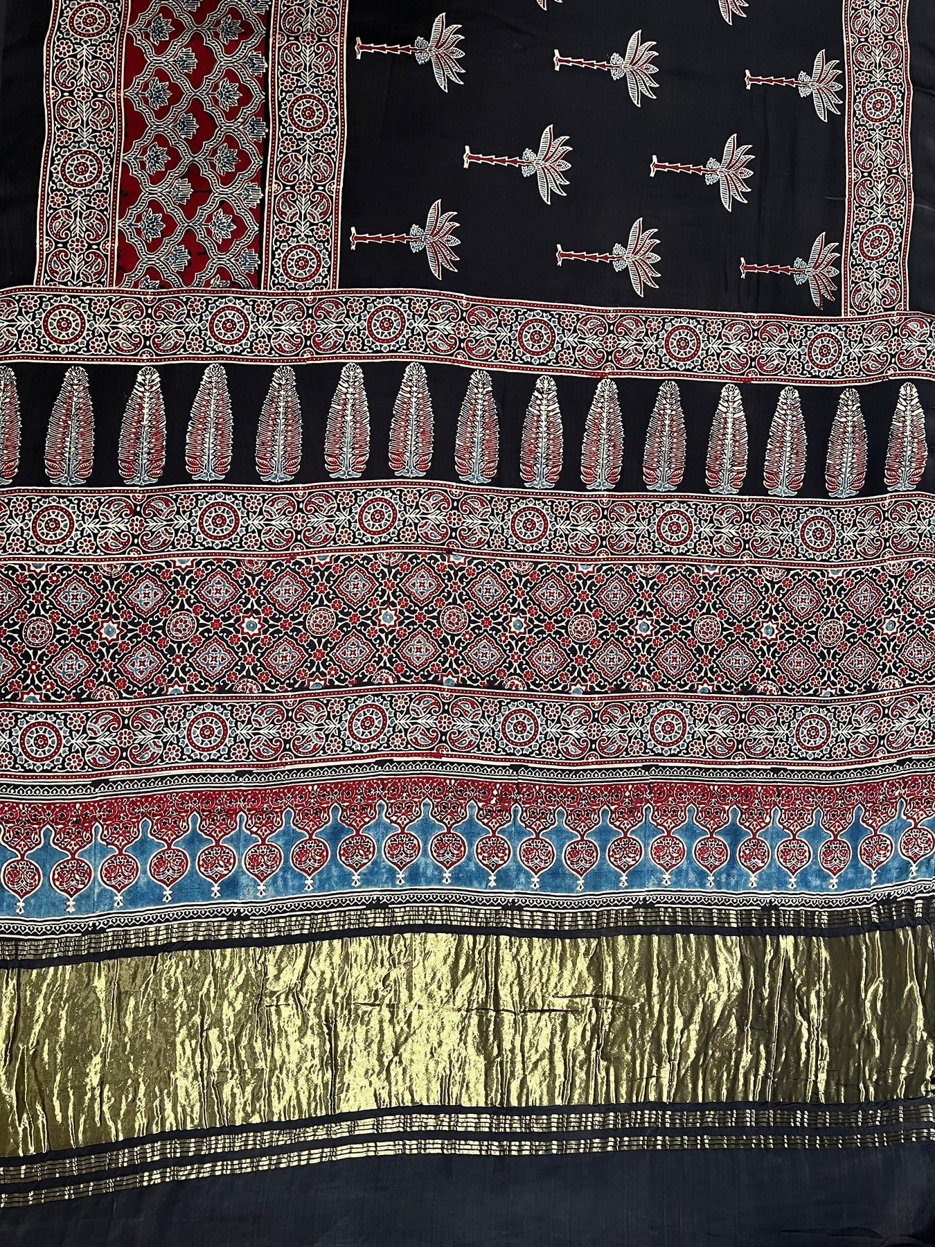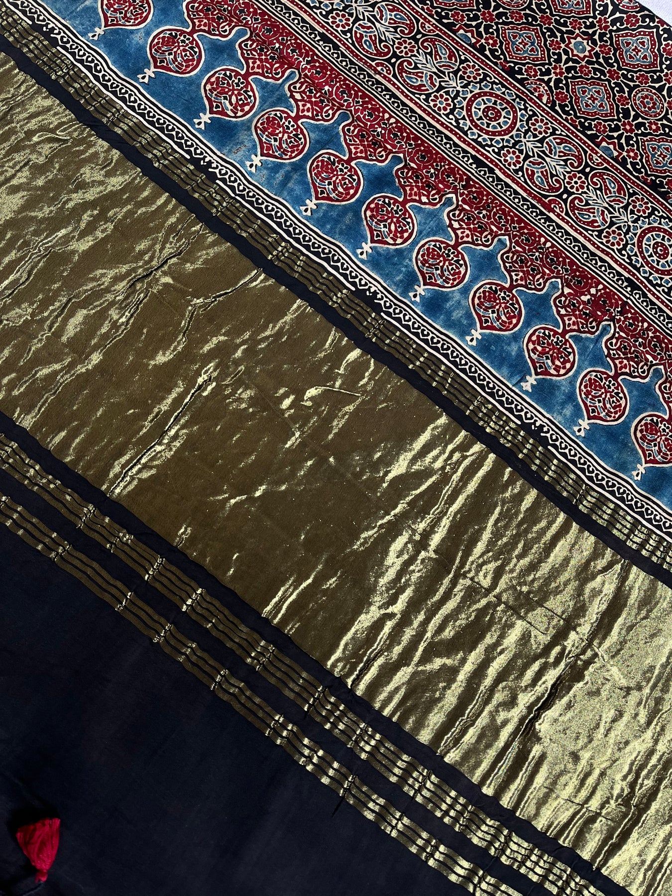 BHOOMI: Handblock Modal Silk Tissue Ajrakh Saree