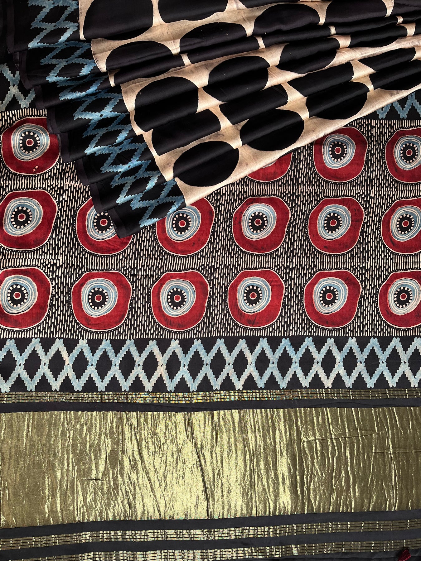 KALPANA: Handblock Modal Silk Tissue Ajrakh Saree