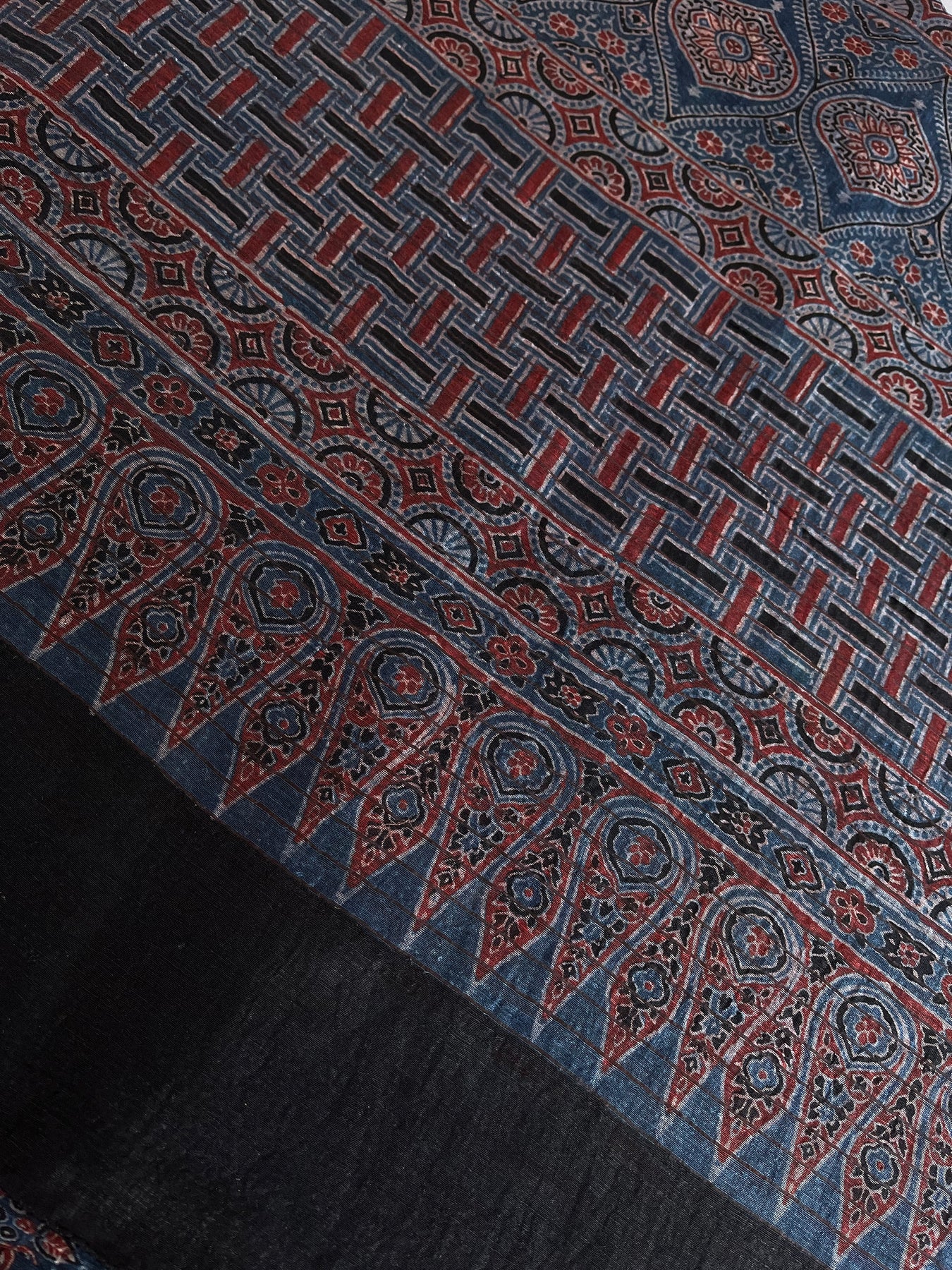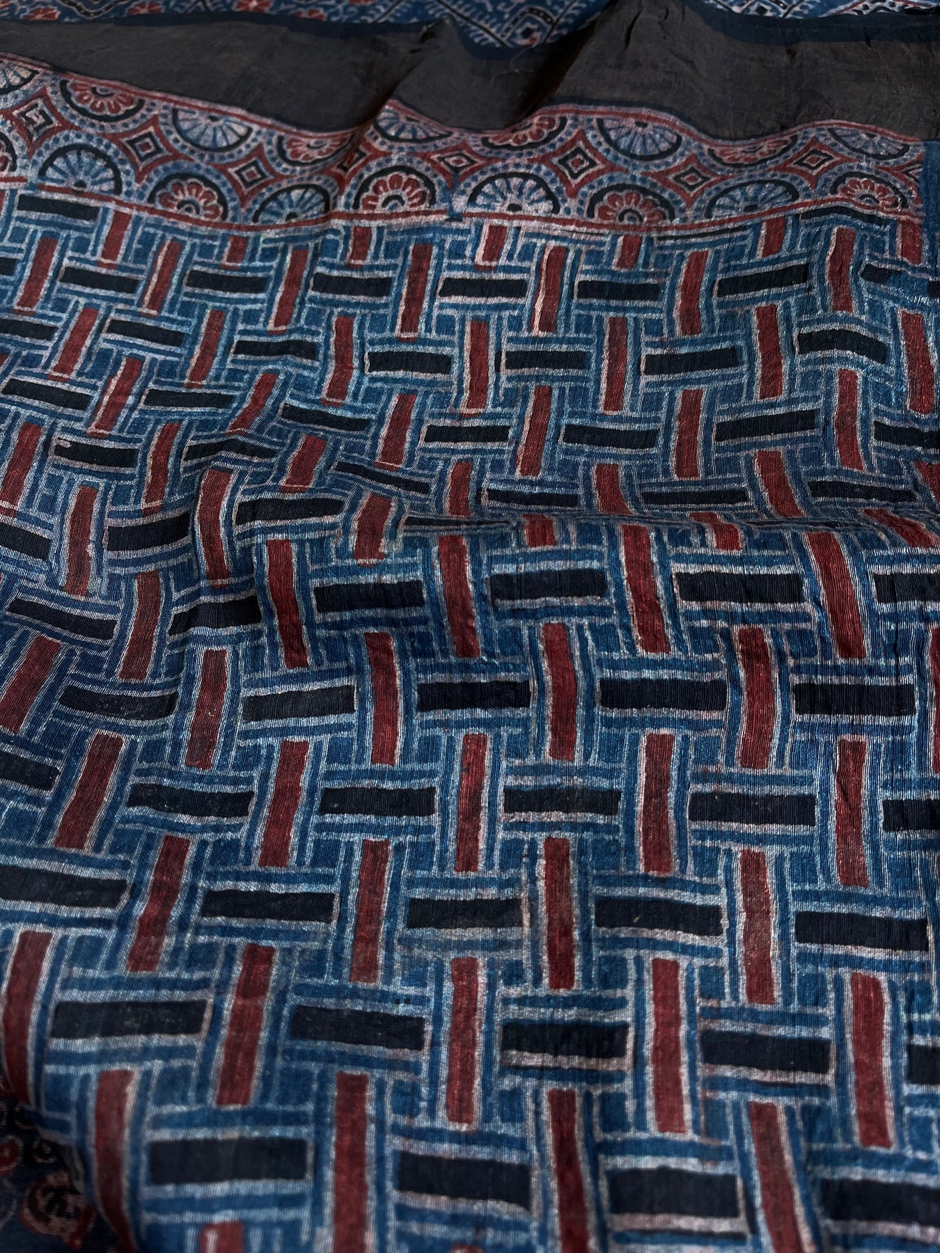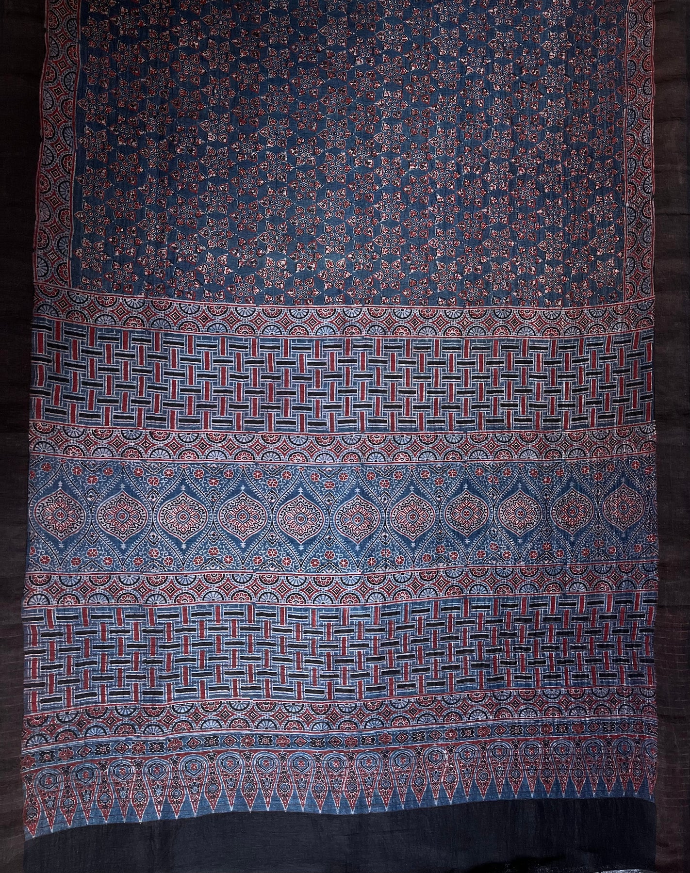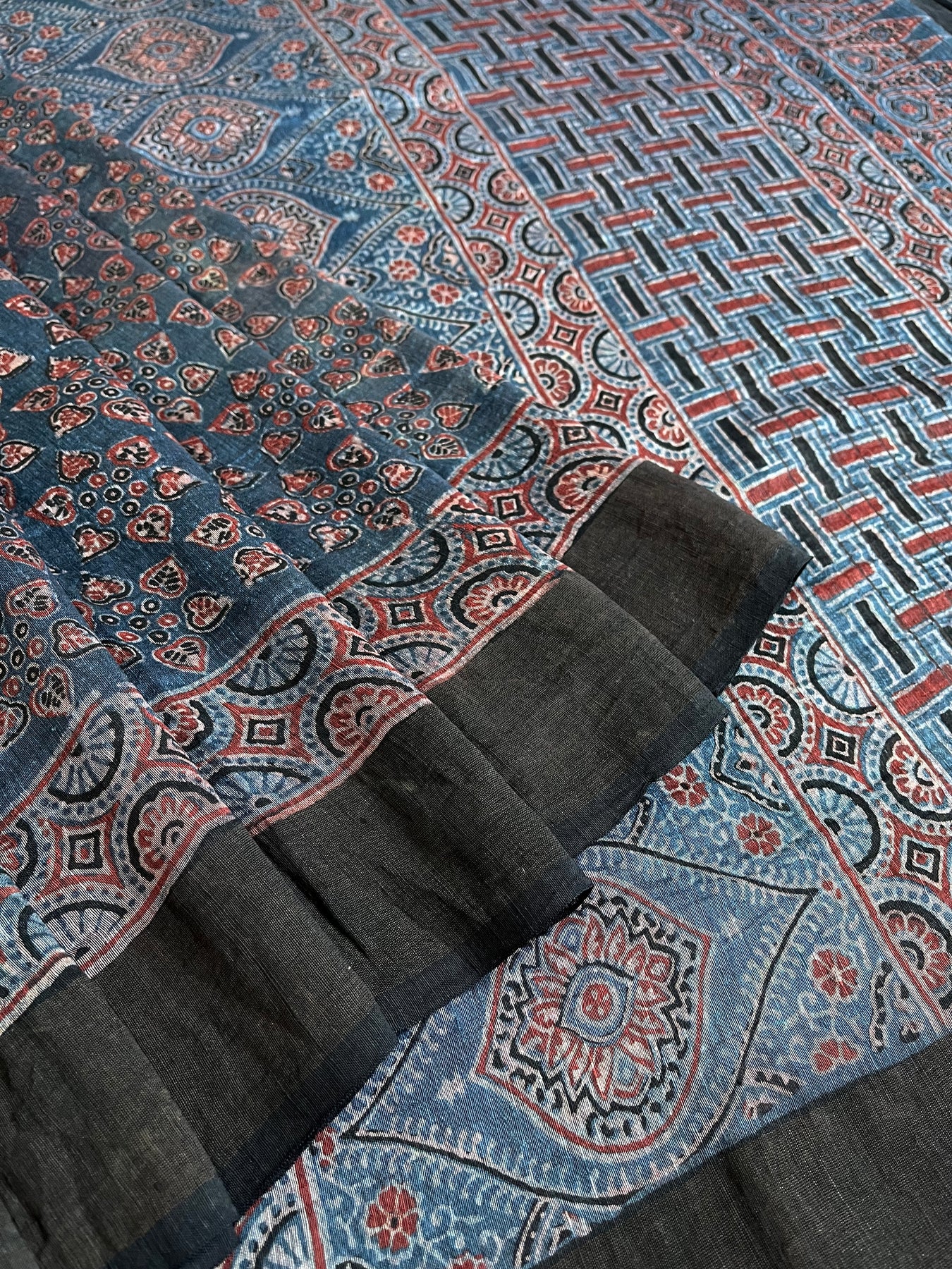 MEHAK:HANDBLOCK AJRAKH PURE SILK-LINEN SAREE