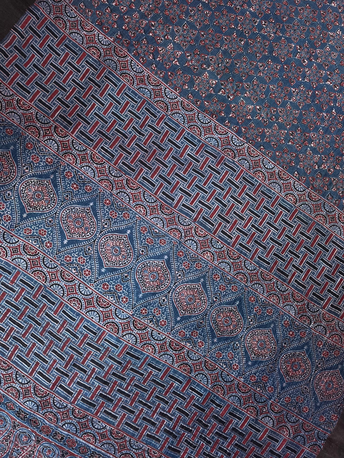 It’s a handmade product so there may be some irregularities are possible due to human hand involvement , this may enhance the beauty of handmade products. This saree is made by a award winning ajrakh artists from kutch Gujrat.