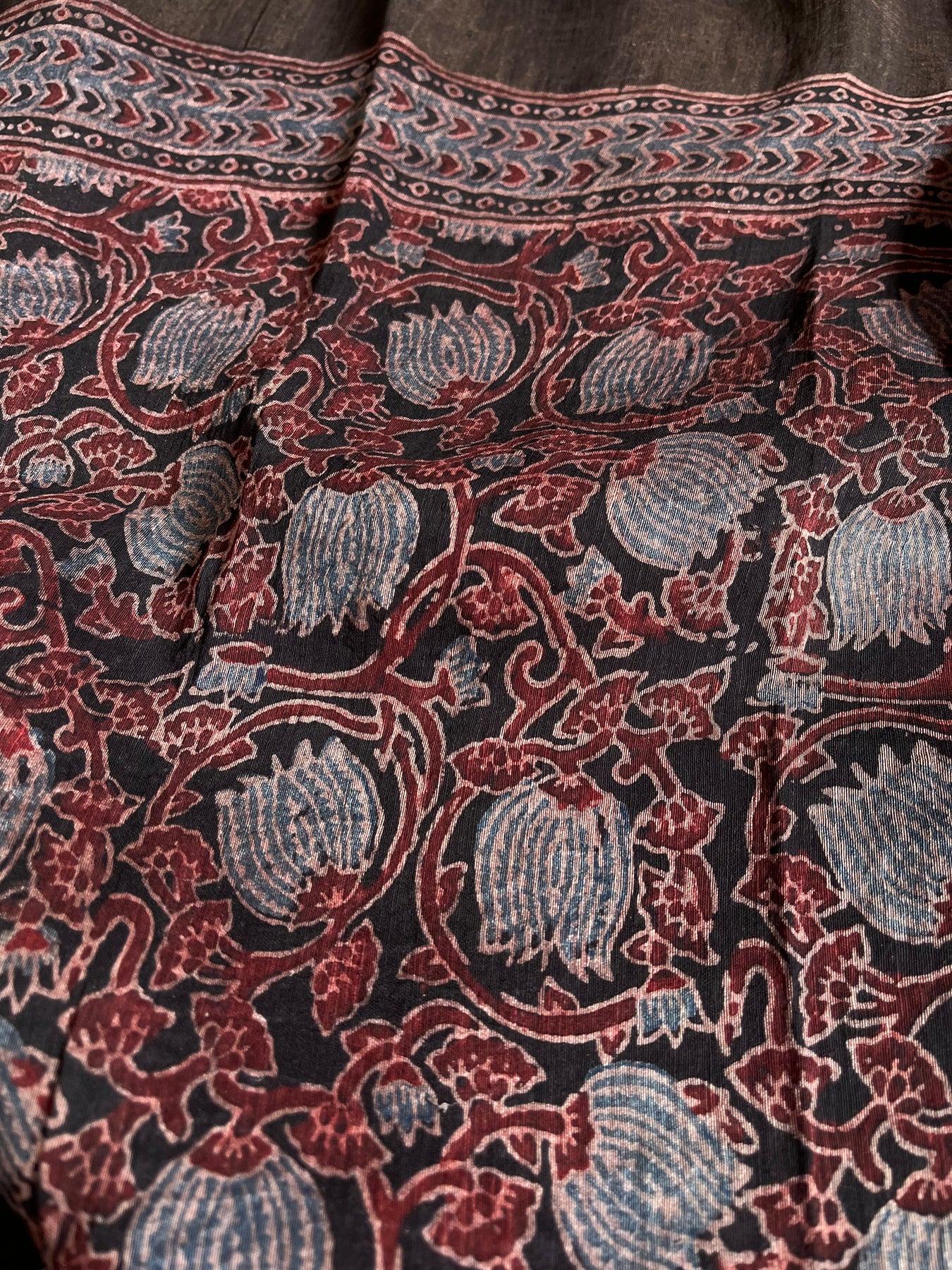 It’s a handmade product so there may be some irregularities are possible due to human hand involvement , this may enhance the beauty of handmade products. This saree is made by a award winning ajrakh artists from kutch Gujrat.