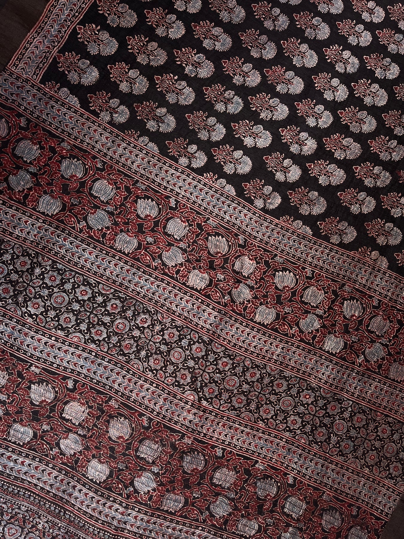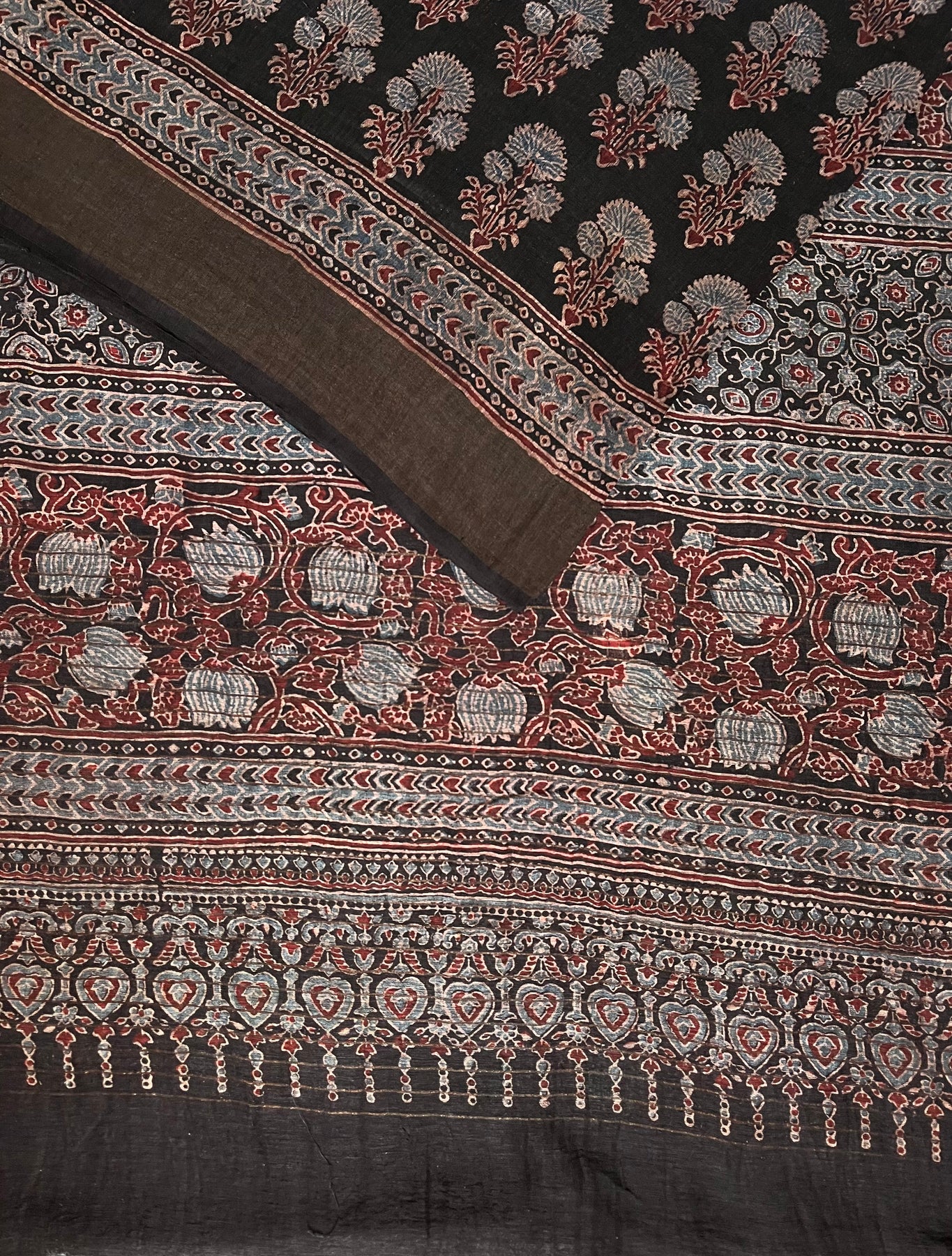 NANDINI:HANDBLOCK AJRAKH PURE SILK-LINEN SAREE