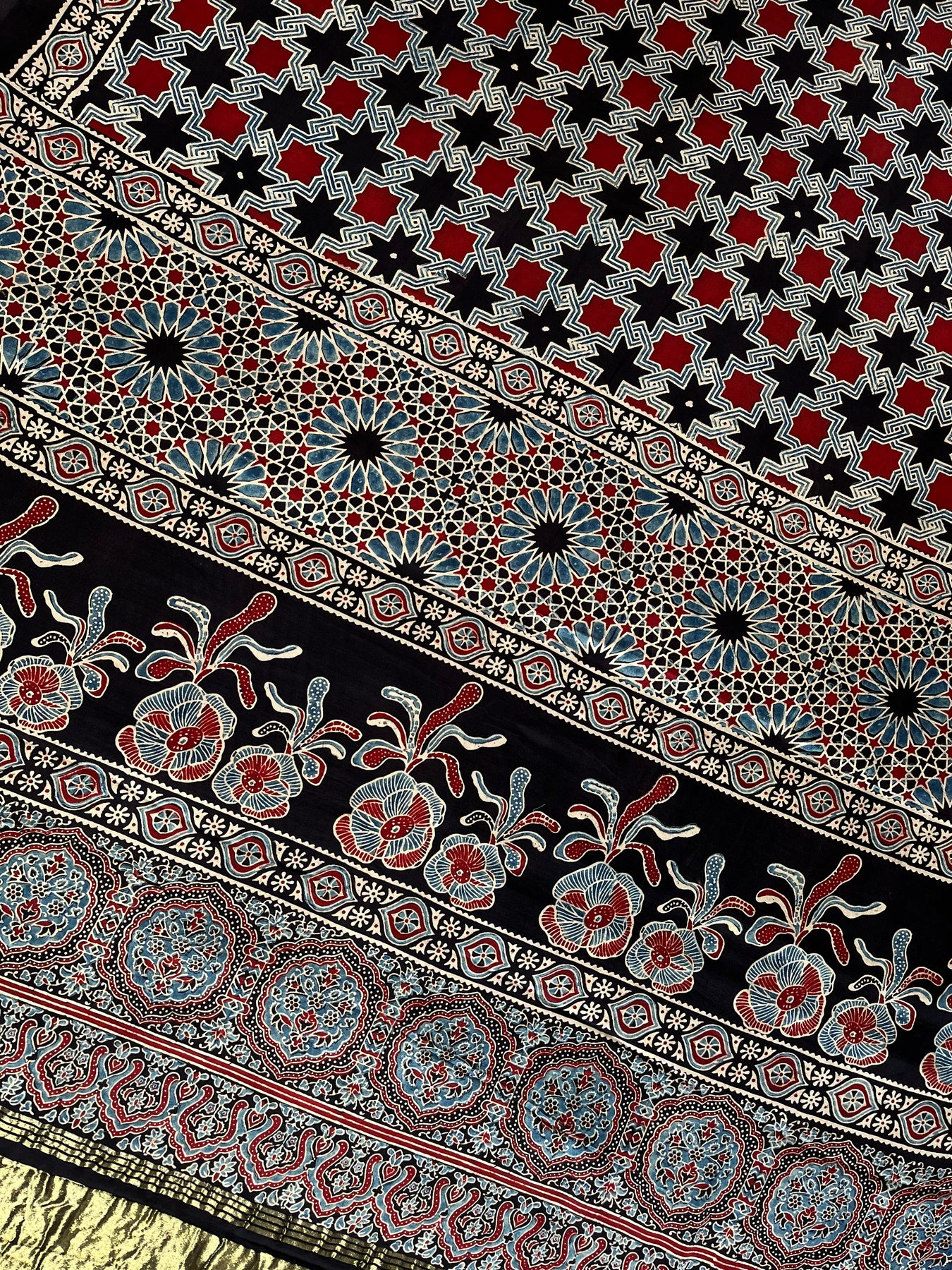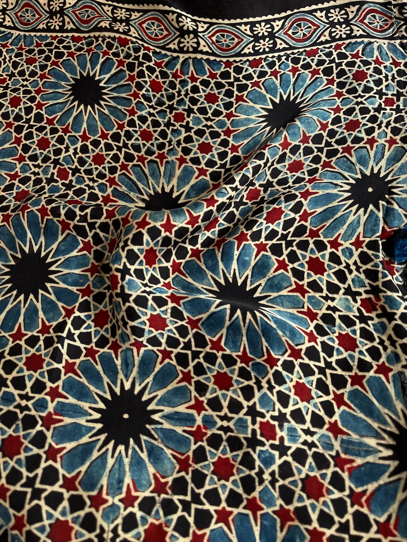 PRAGYA: Handblock Modal Silk Tissue Ajrakh Saree
