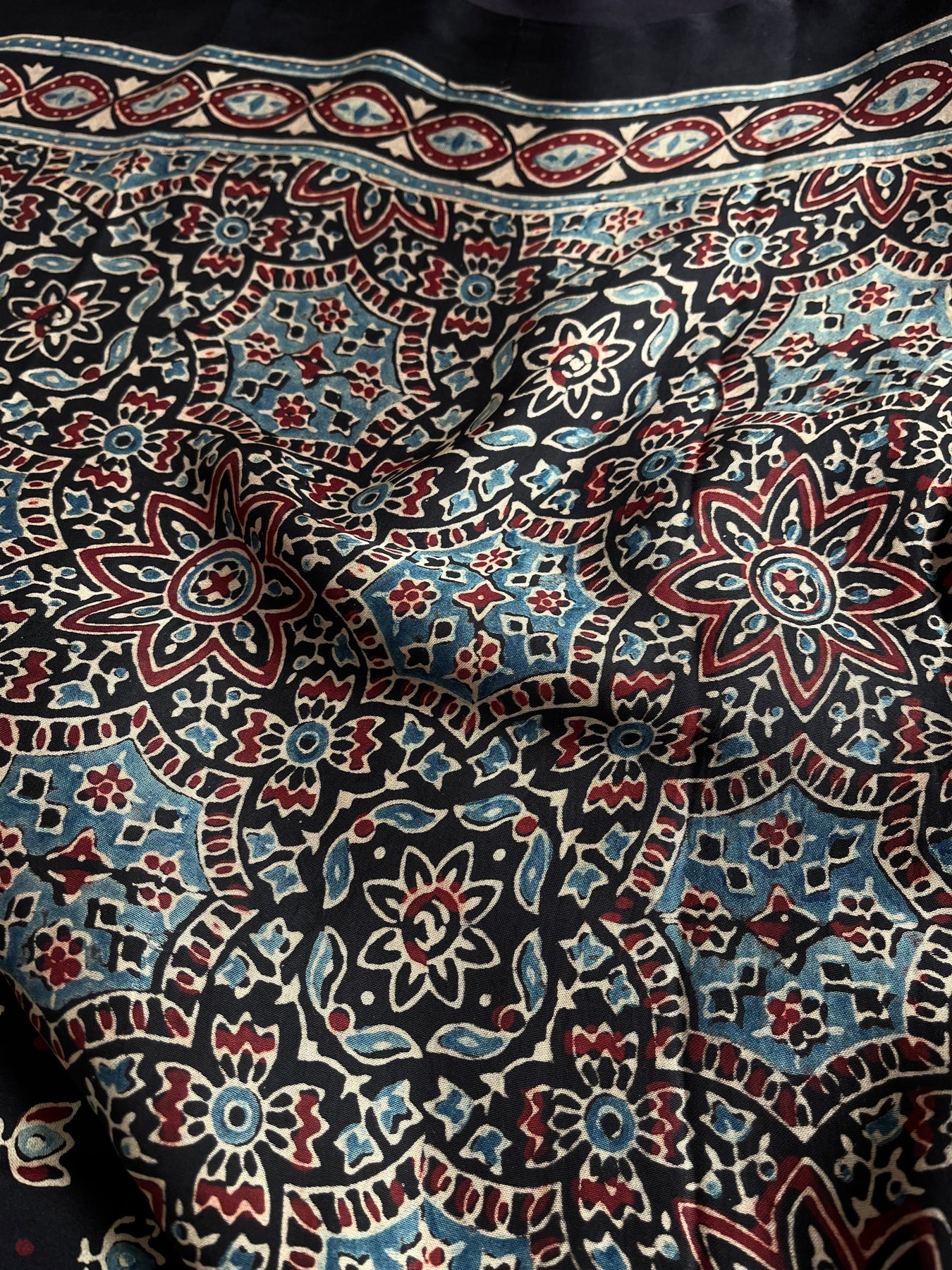 PREETA: Handblock Modal Silk Tissue Ajrakh Saree