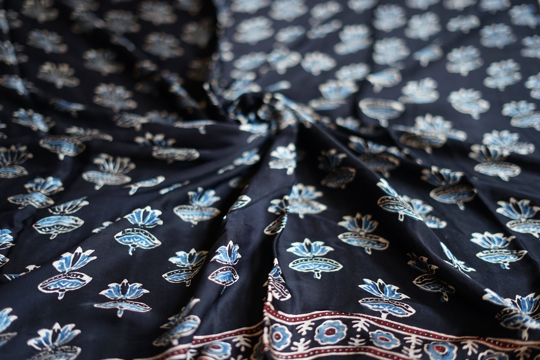 SATYA: Handblock Modal Silk Tissue Ajrakh Saree