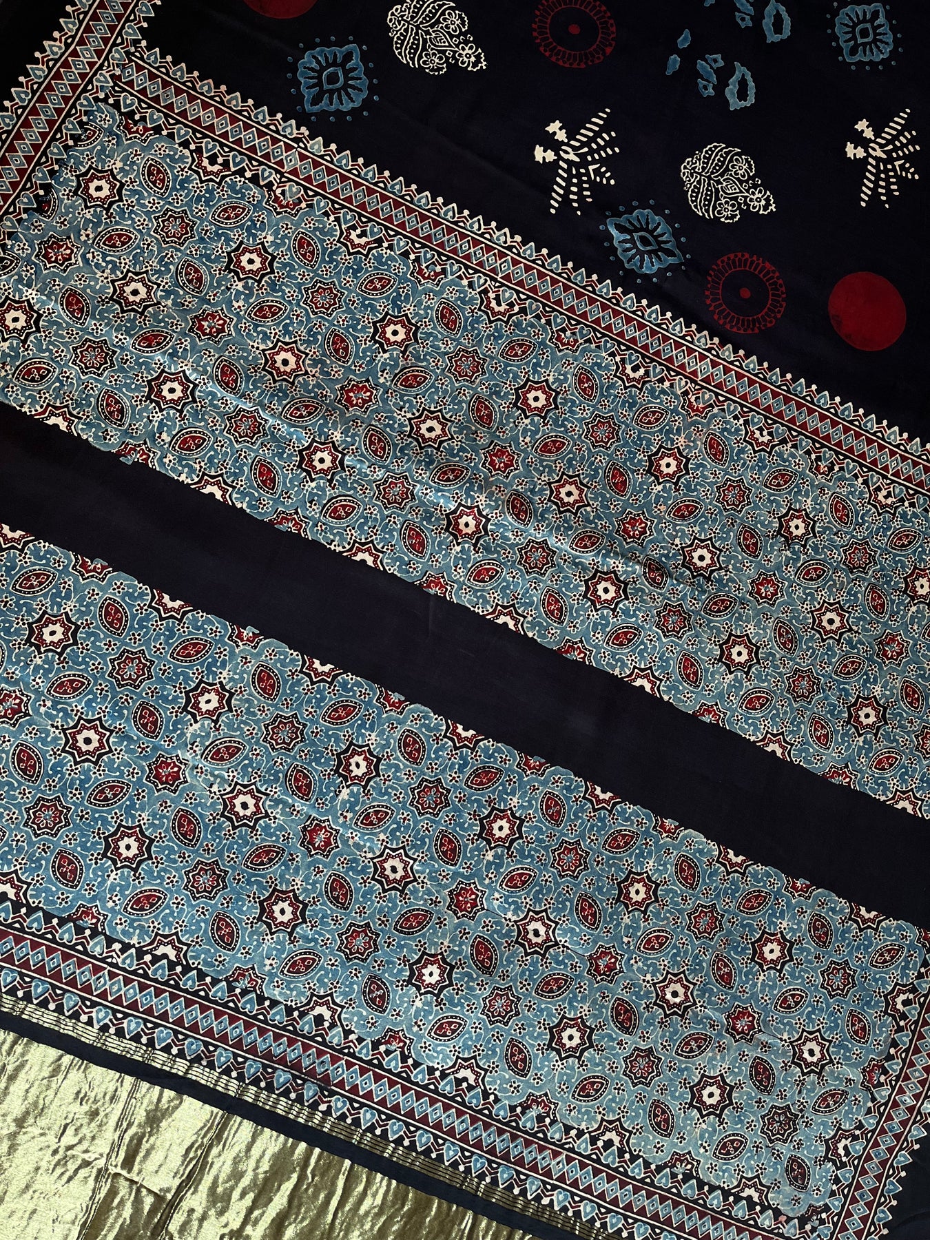 Sparkling stars: HANDBLOCK AJRAKH MODAL SILK SAREE WITH TISSUE PALLU