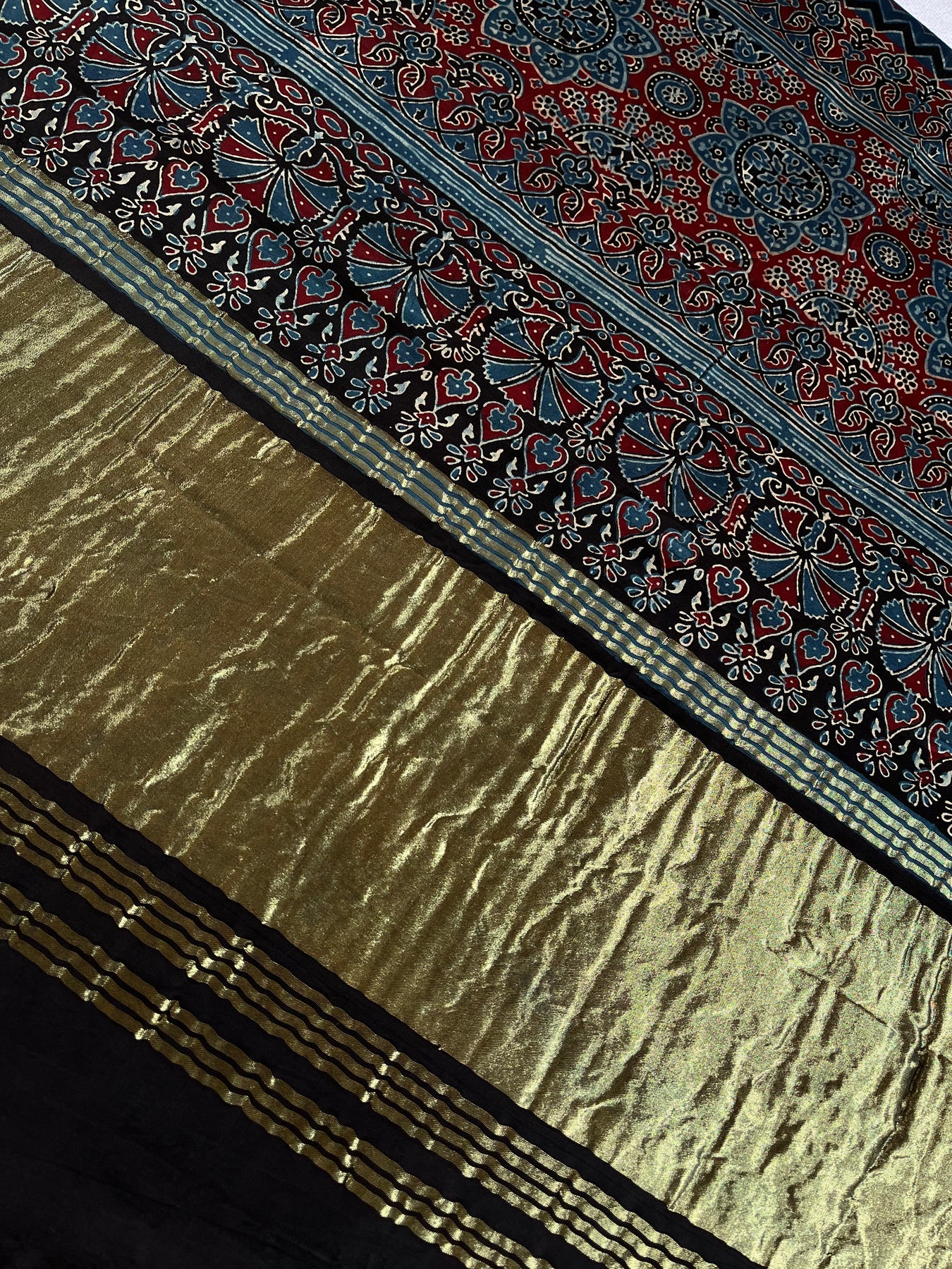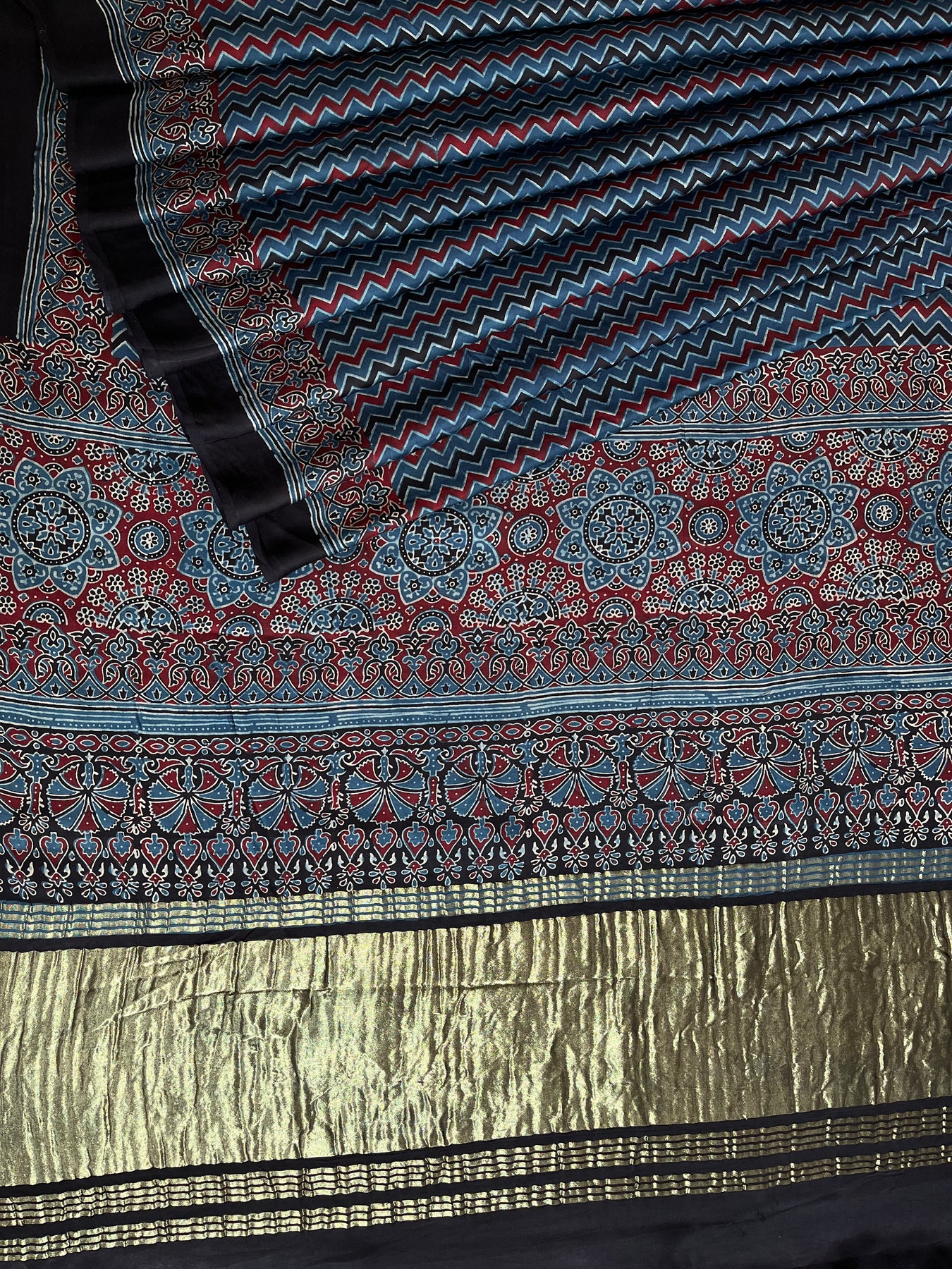 UTTARA: HANDBLOCK AJRAKH MODAL SILK SAREE WITH TISSUE PALLU