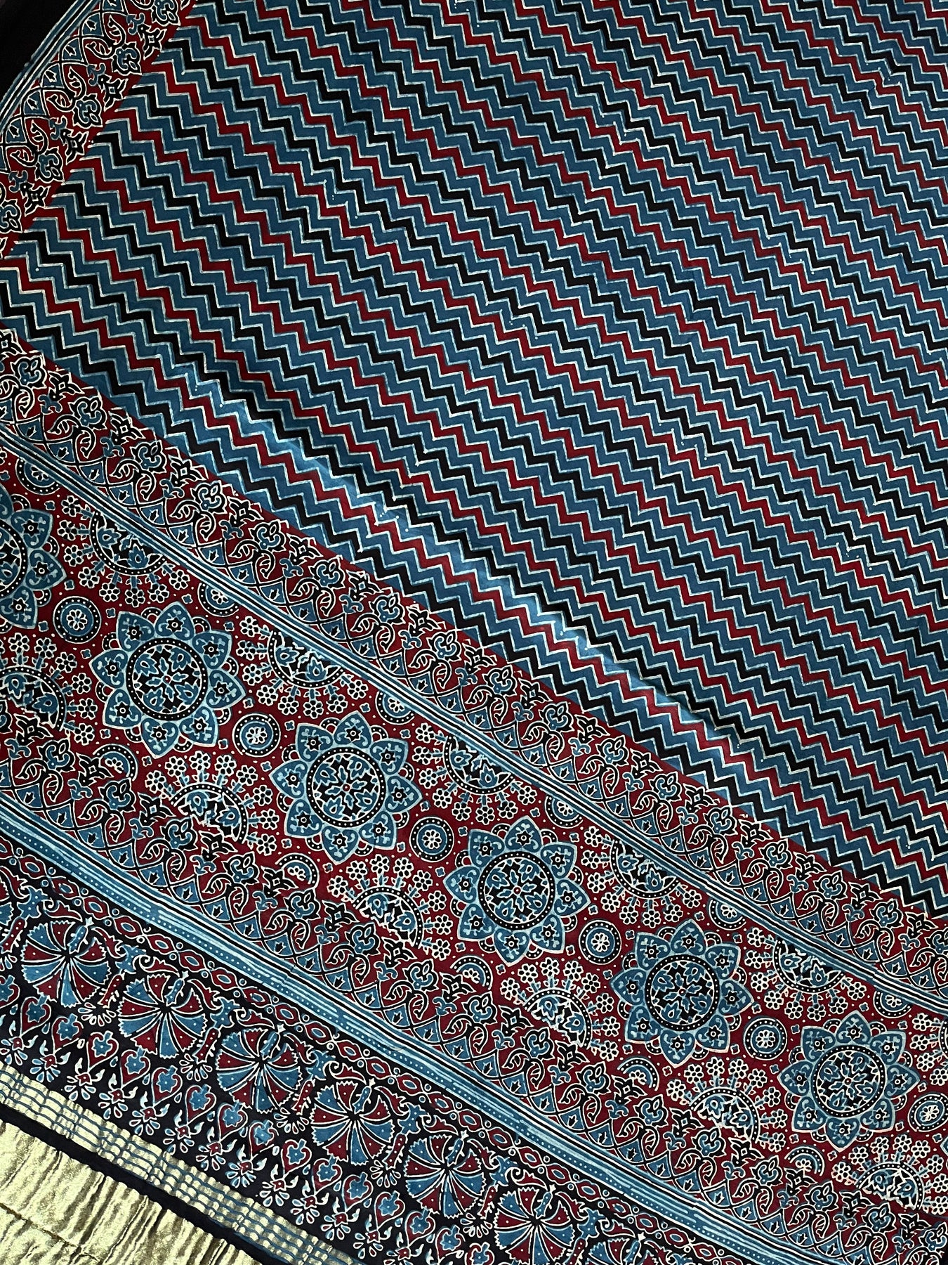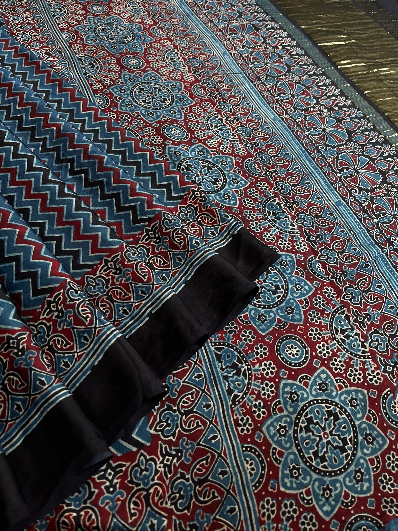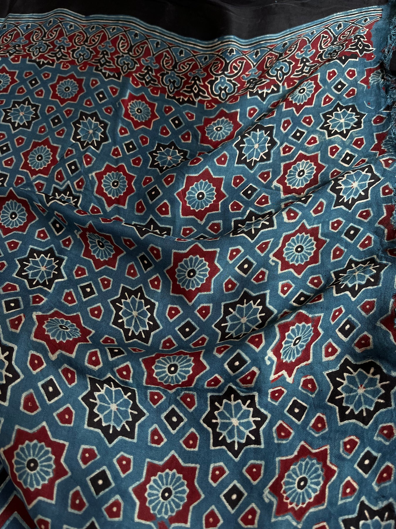 Handblock ajrakh print with natural colors by khtri community from kutch, Gujarat. |