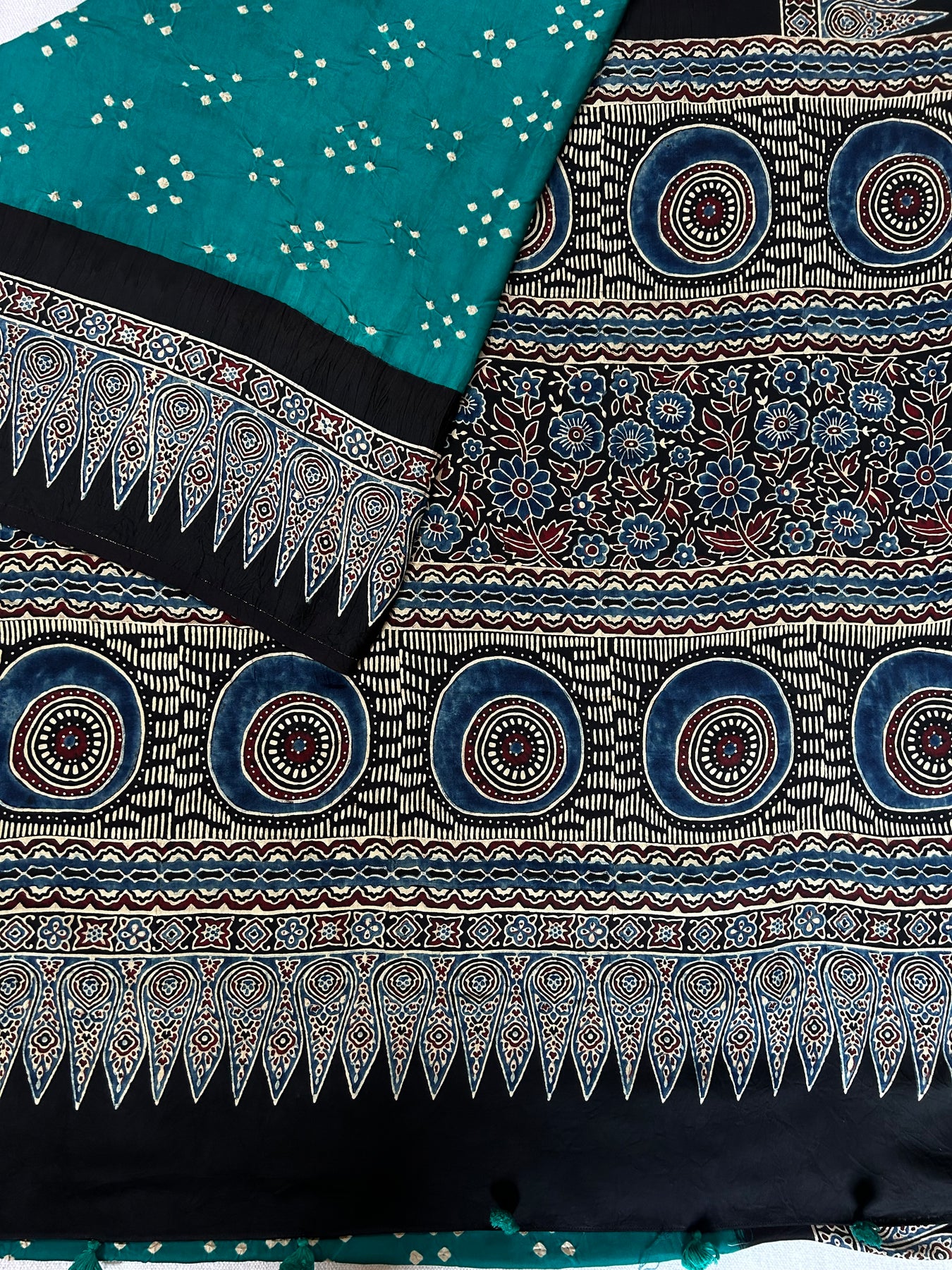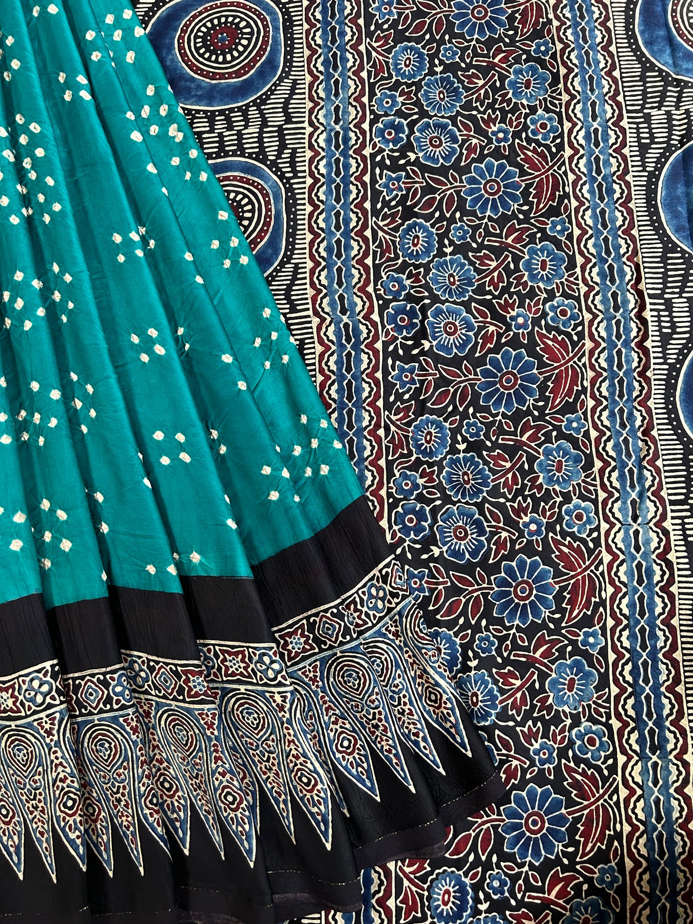 Pakhi : HANDMADE BANDHANI AJRAKH MODAL SILK SAREE