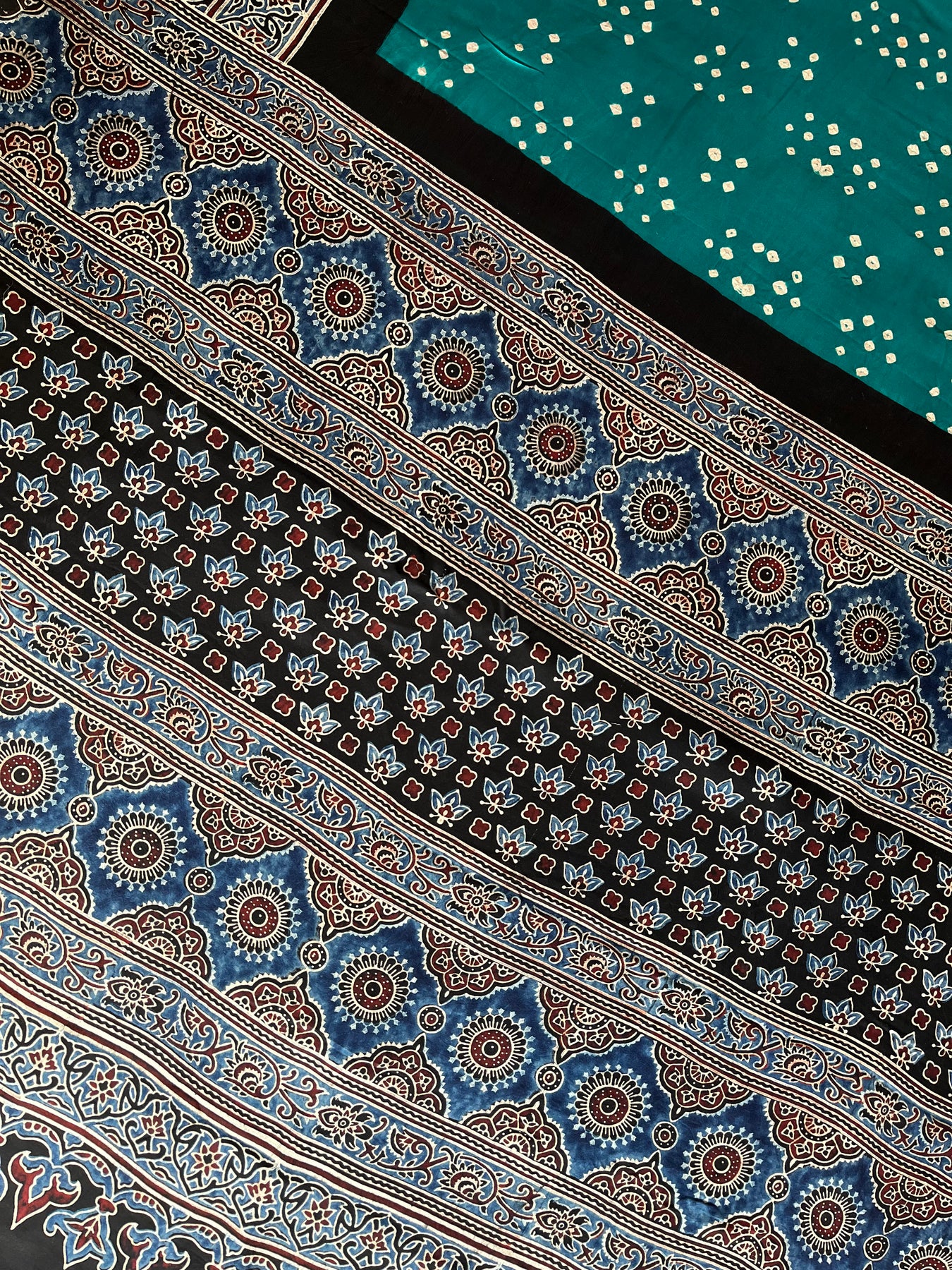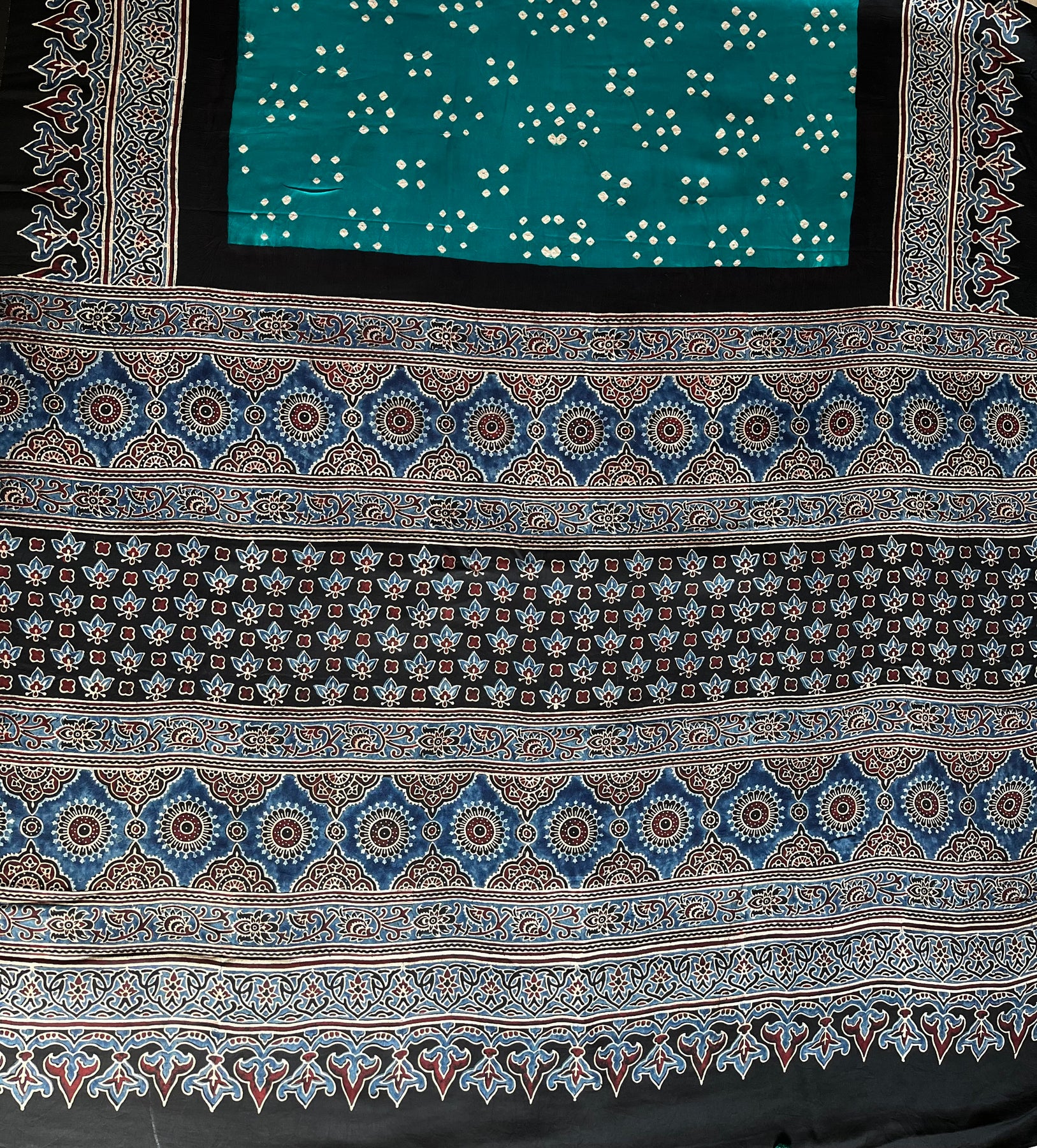 Handblock ajrakh print  and Bandhni craft with natural colors.