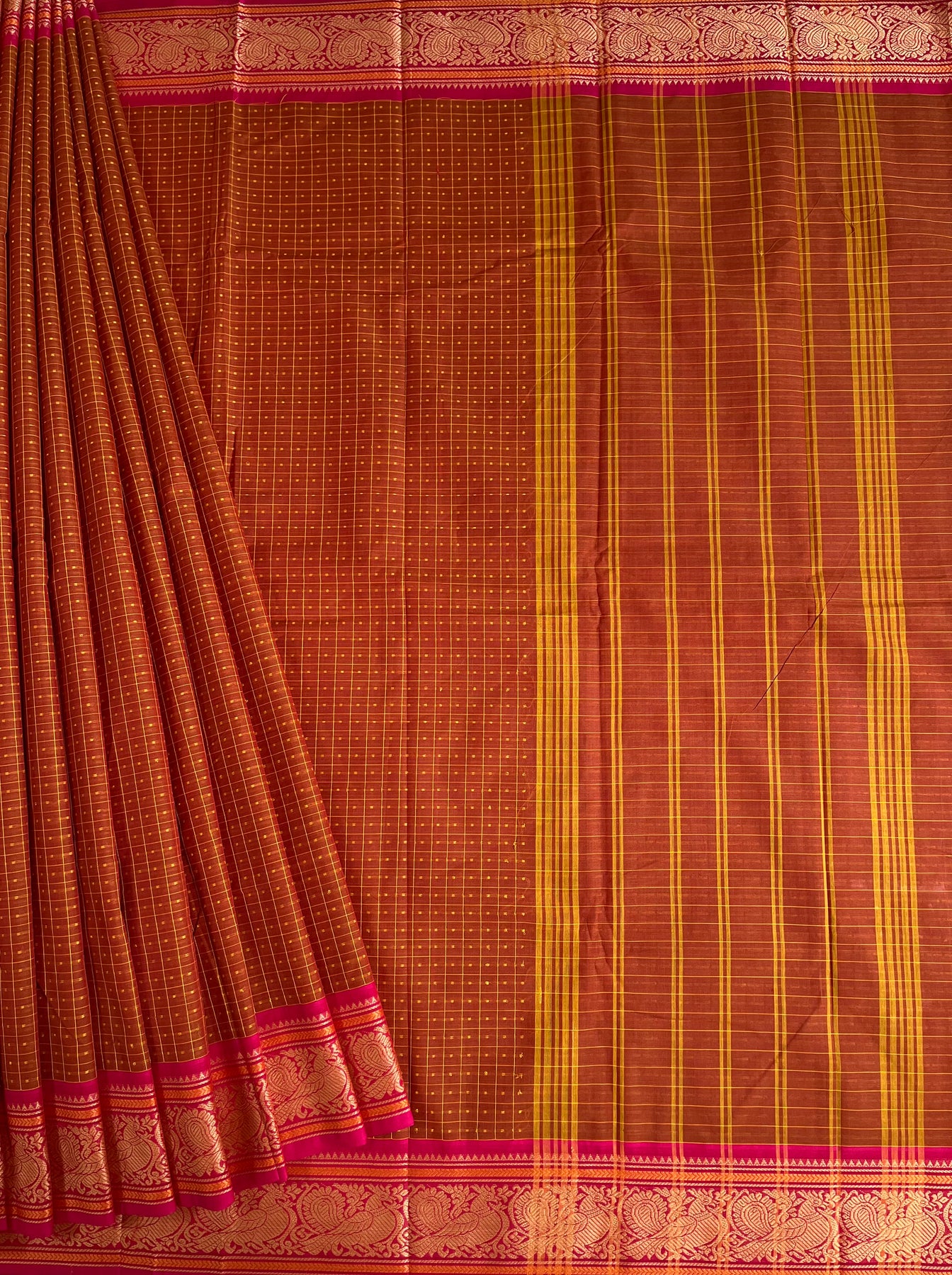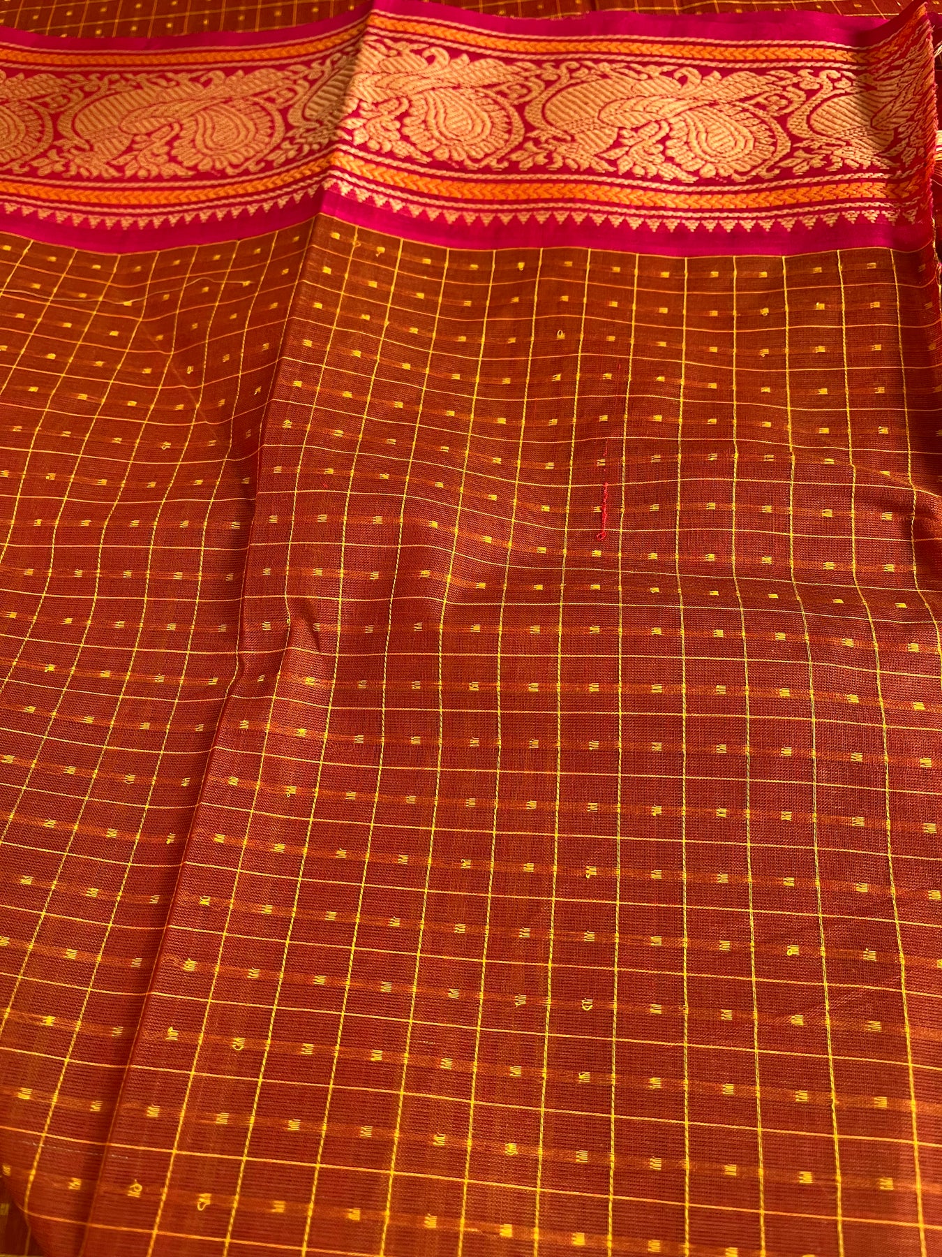 GODAVARI: KANCHIPURAM PURE COTTON SAREE WITH BORDERS.