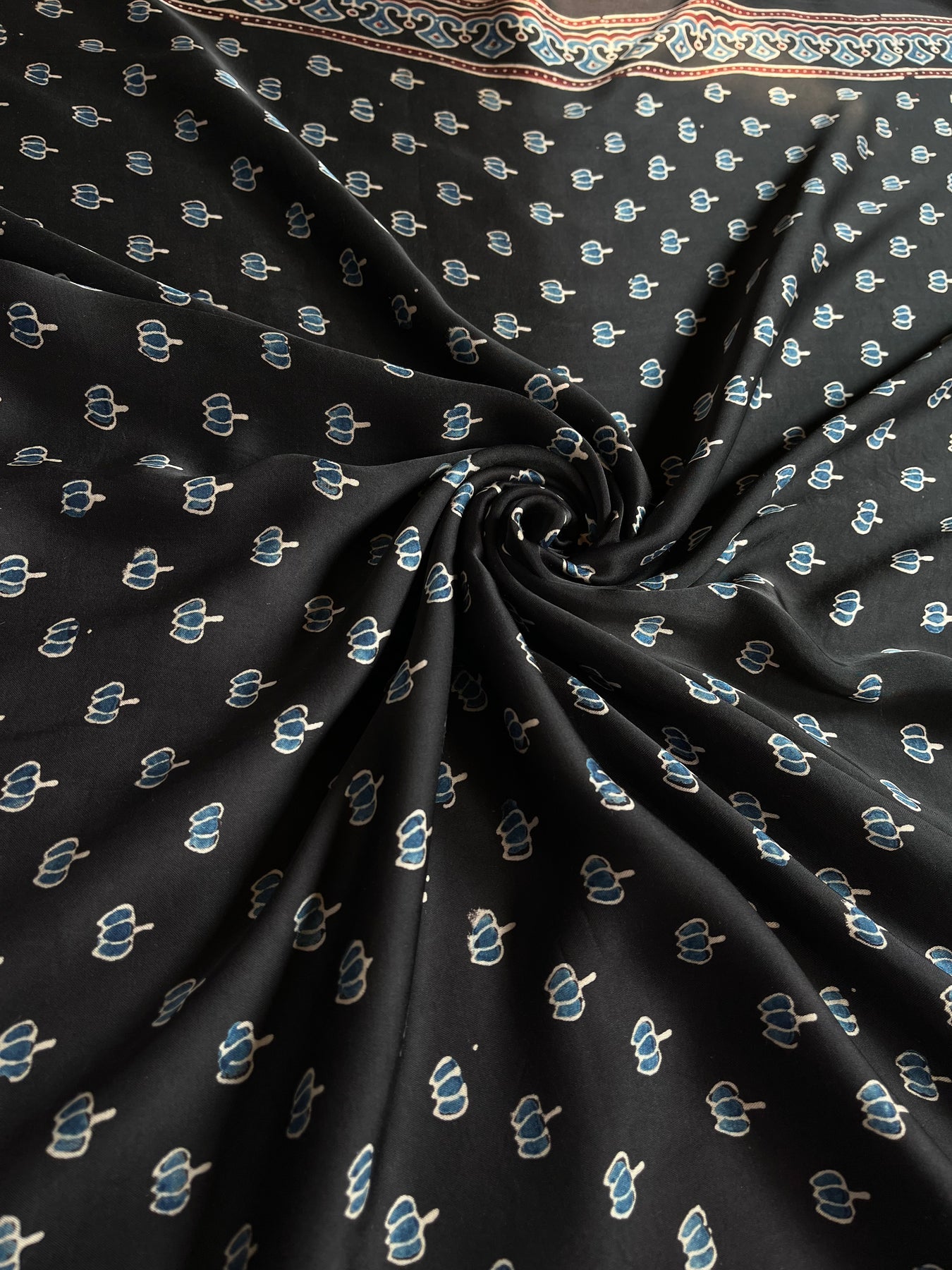 Black Lotus : Handblock Printed Ajrakh Modal Silk Fabric
