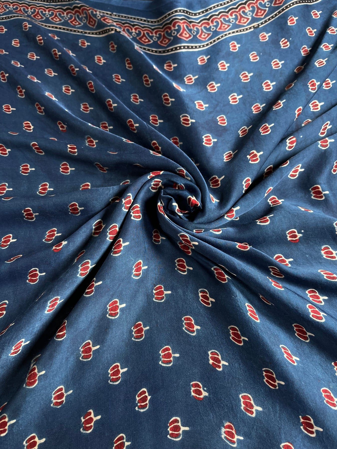 Indigo Lotus : Handblock Printed Ajrakh Modal Silk Fabric