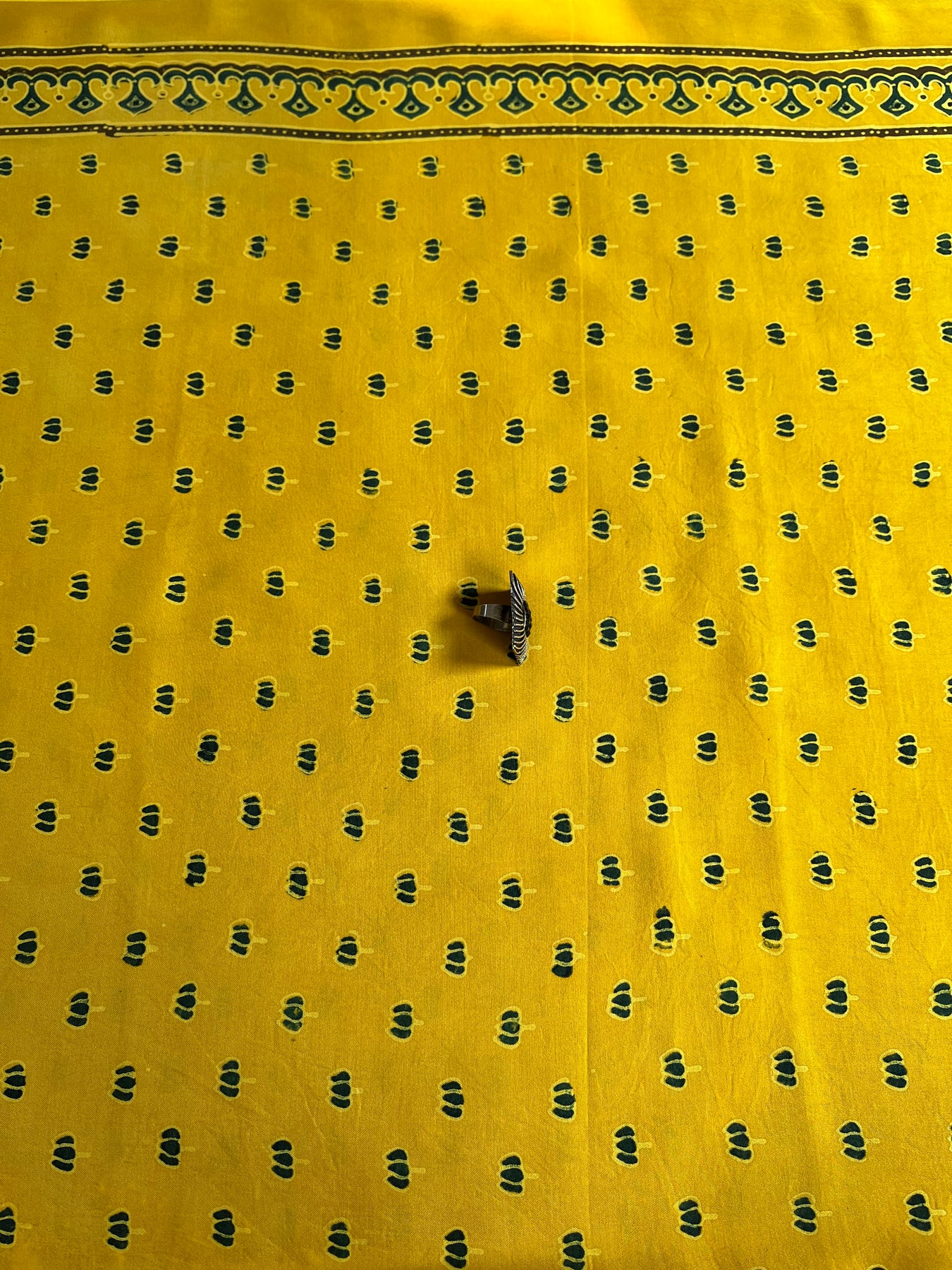Yellow Lotus : Handblock Printed Ajrakh Modal Silk Fabric