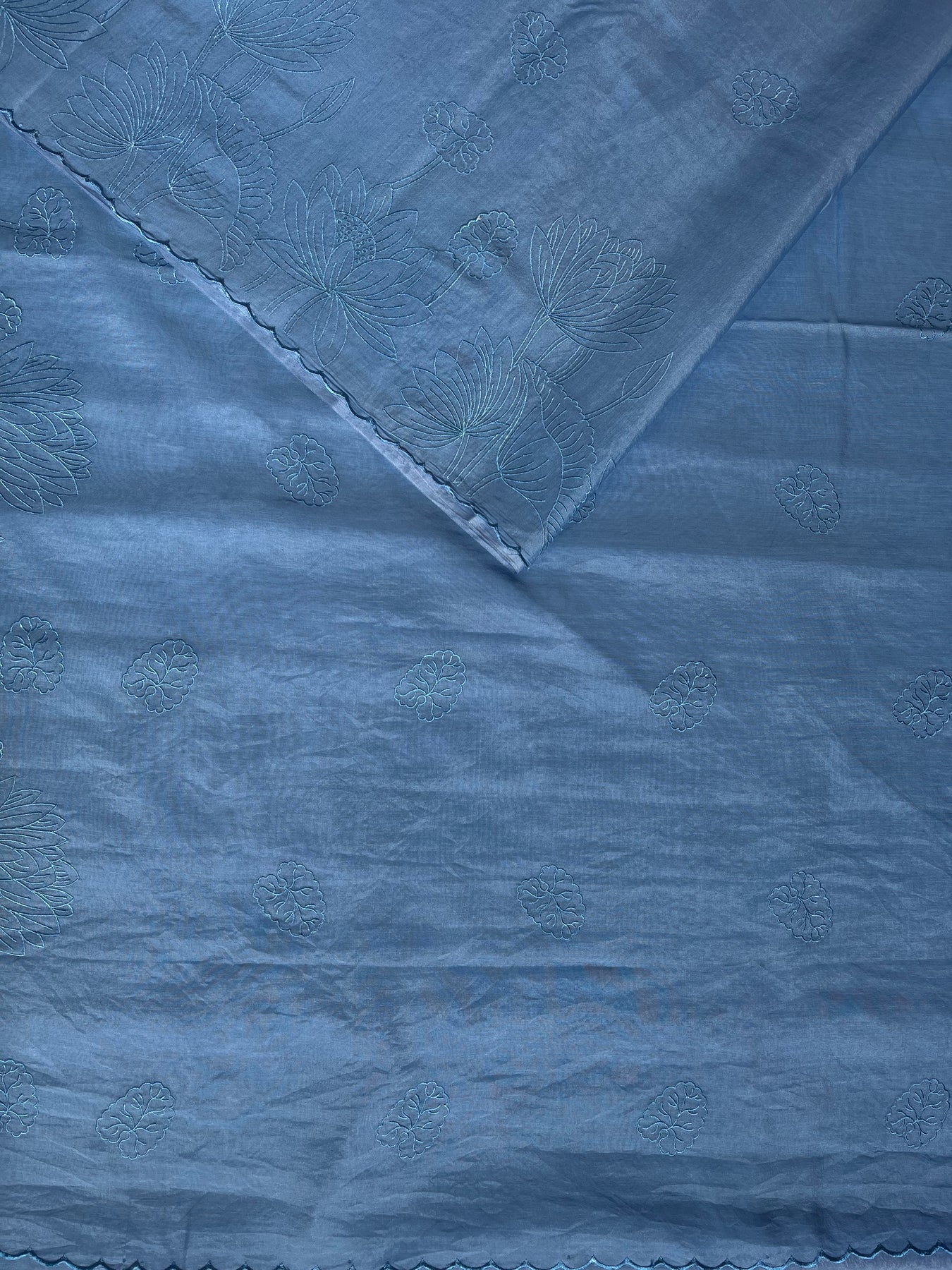 KANCHAN : INDIGO,PARTYWEAR PURE SILK-EXCEL SAREE WITH THREAD EMBROIDERY.