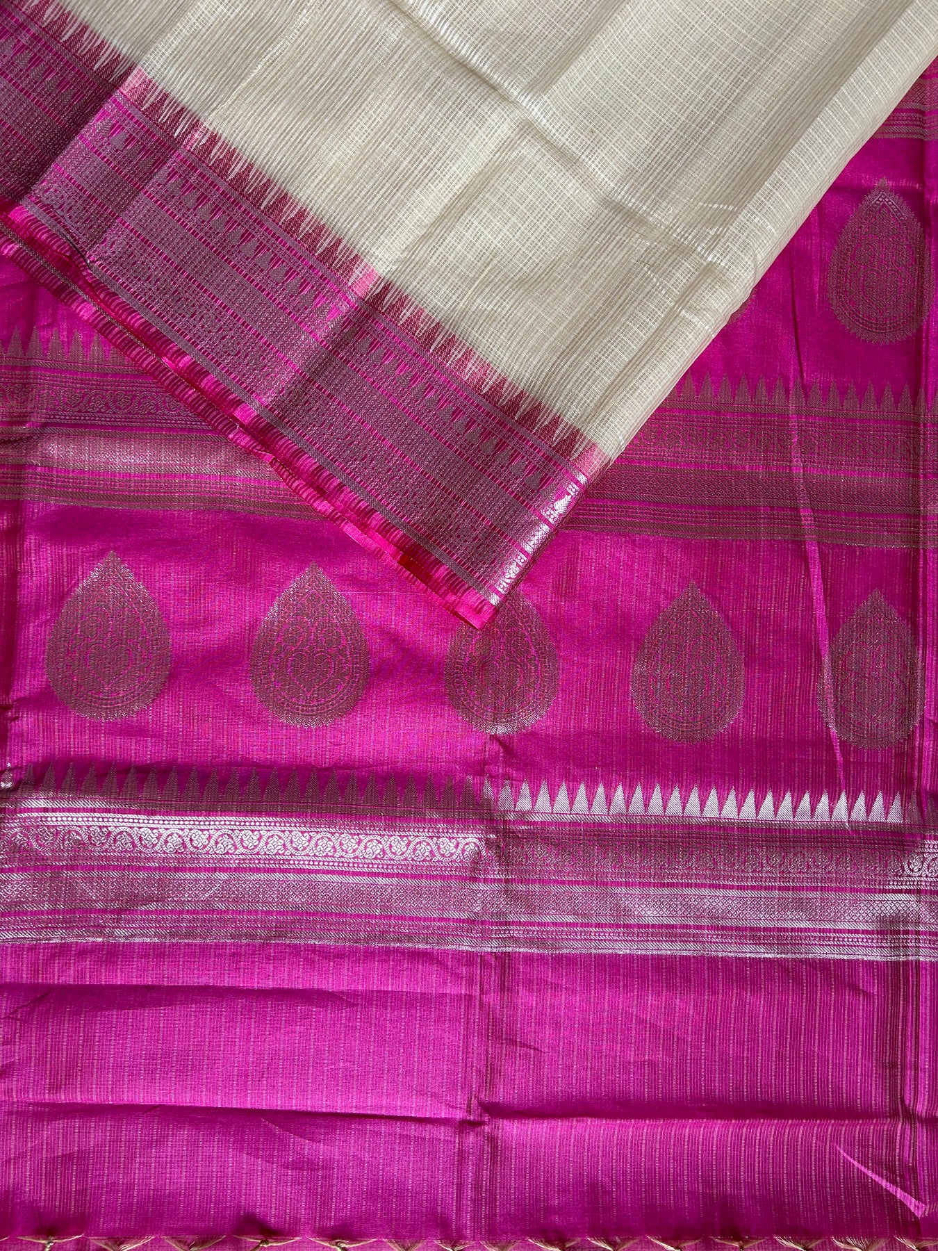 KUNDAN : CREAM, FESTIVE WEAR BANARASI KOTA CHECKS SAREE WITH GANGA- JAMUNA BORDER.