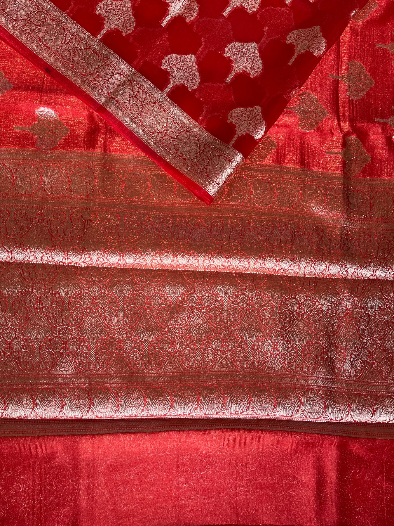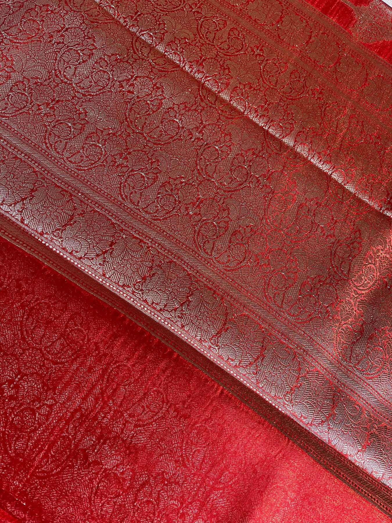 MRNALINI :RED, WEDDING WEAR BANARASI CHANDERI SILK SAREE