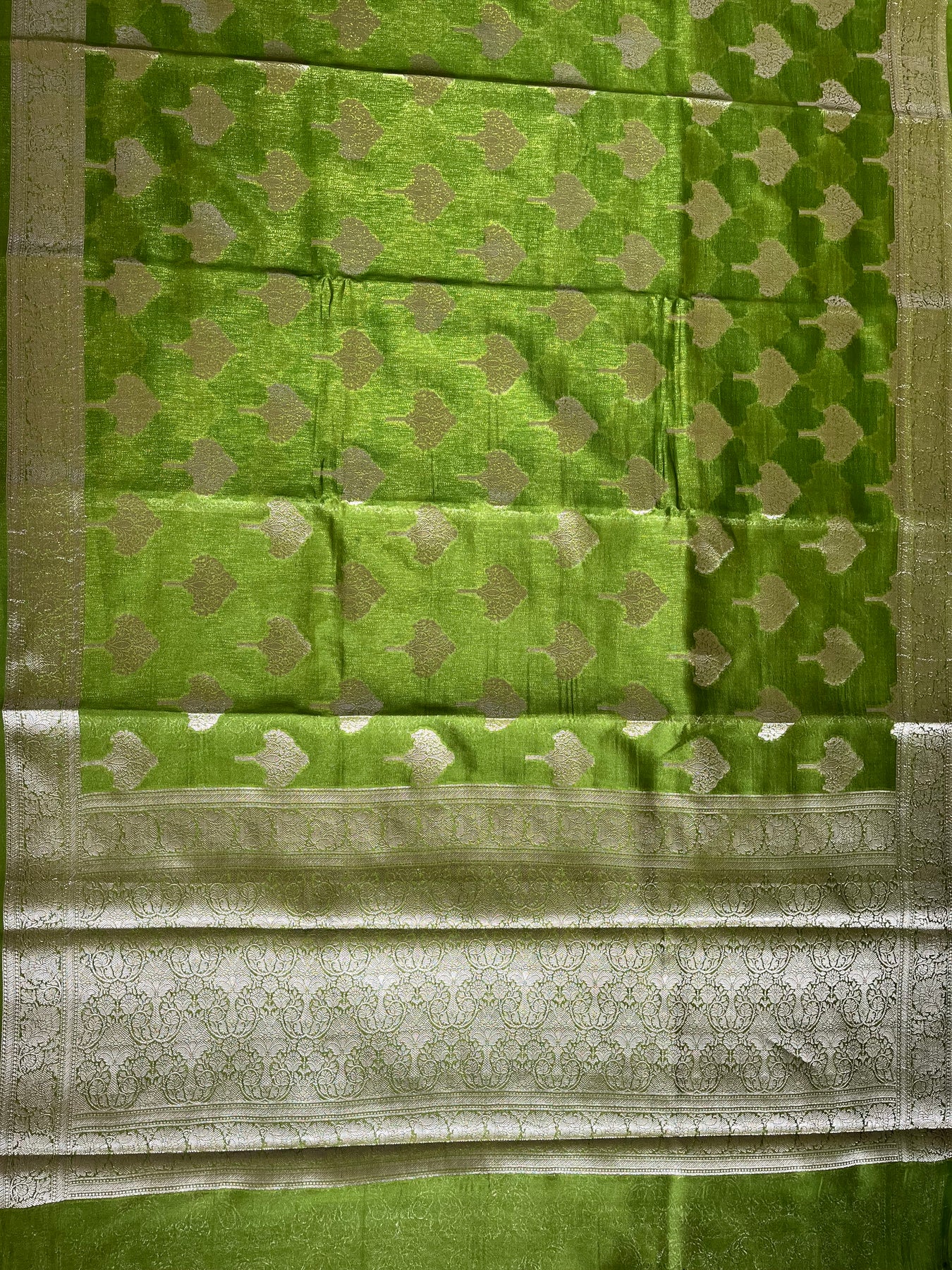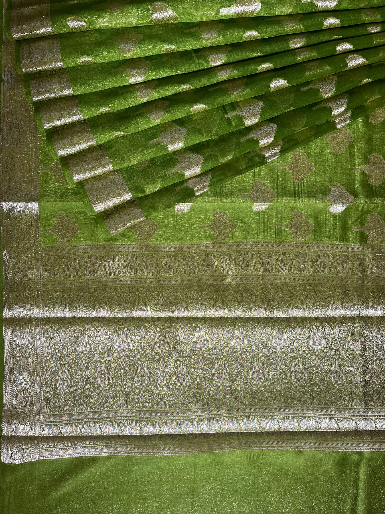 PARIJAT : HEENA GREEN, WEDDING WEAR BANARASI CHANDERI SILK SAREE
