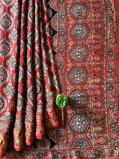 “Experience the timeless charm of Bagru, Dabu, and Vanaspati block printed sarees—handcrafted with love by our skilled artisans from the Bagru printing cluster. Each drape reflects heritage, tradition, and the beauty of natural dyes,The soft and elegant texture of modal silk adds a touch of luxury, making it perfect for every occasion—be it an office party or a housewarming celebration. Effortlessly stylish and comfortable, these drapes are your go-to choice for timeless elegance.