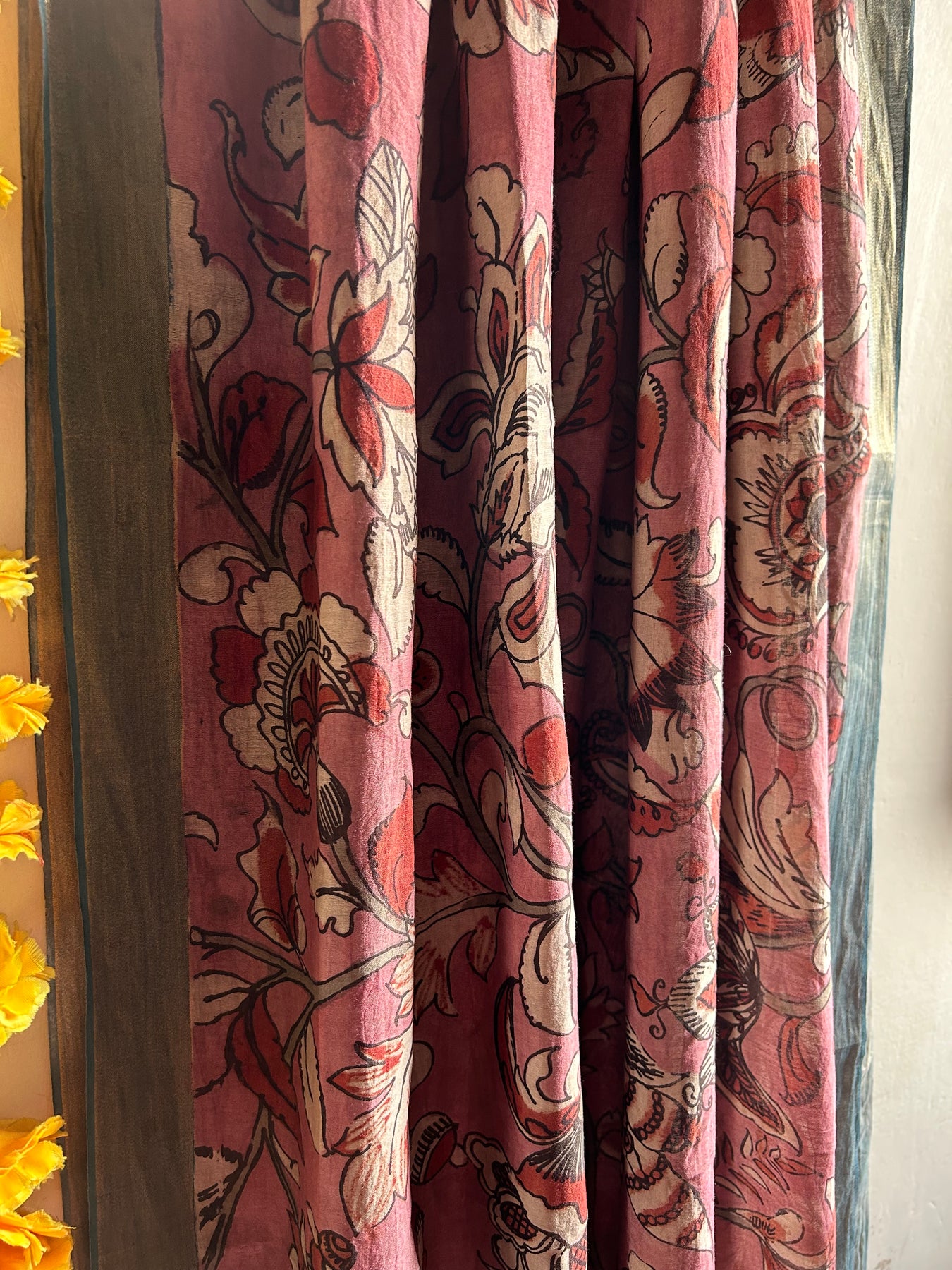 Hand Drawn & Hand Painted Penkalamkari Dupatta , painted with natural colors only. |