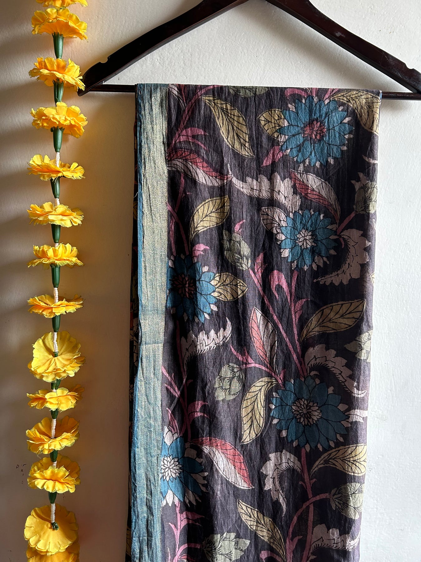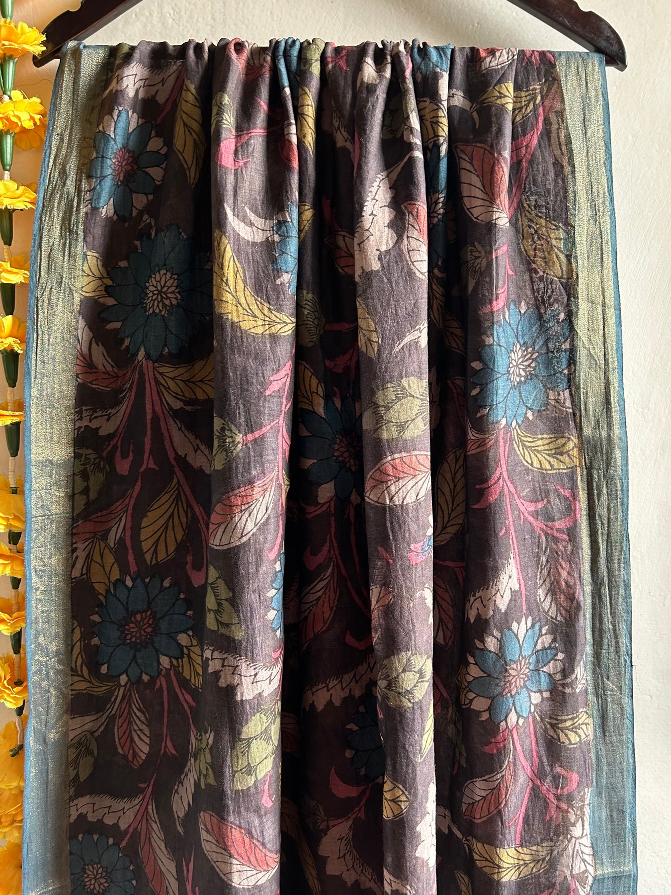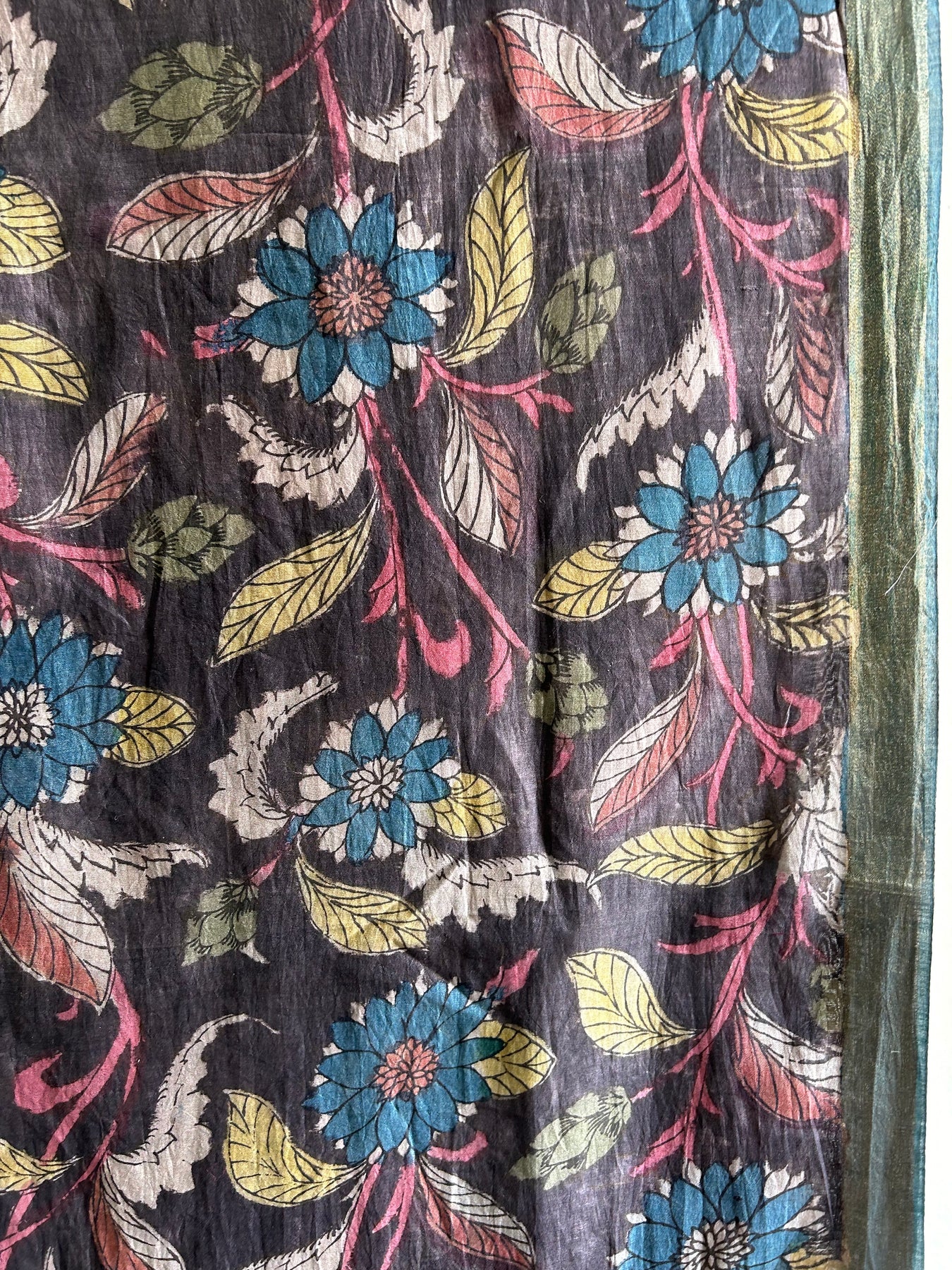 The authentic pen-kalamkari dupatta on chanderi .Pen-Kalamkari or Hand-painted kalamkari is an-ancient heritage craft of India, mainly in Sri-kalahasti located in Andhra Pradesh.