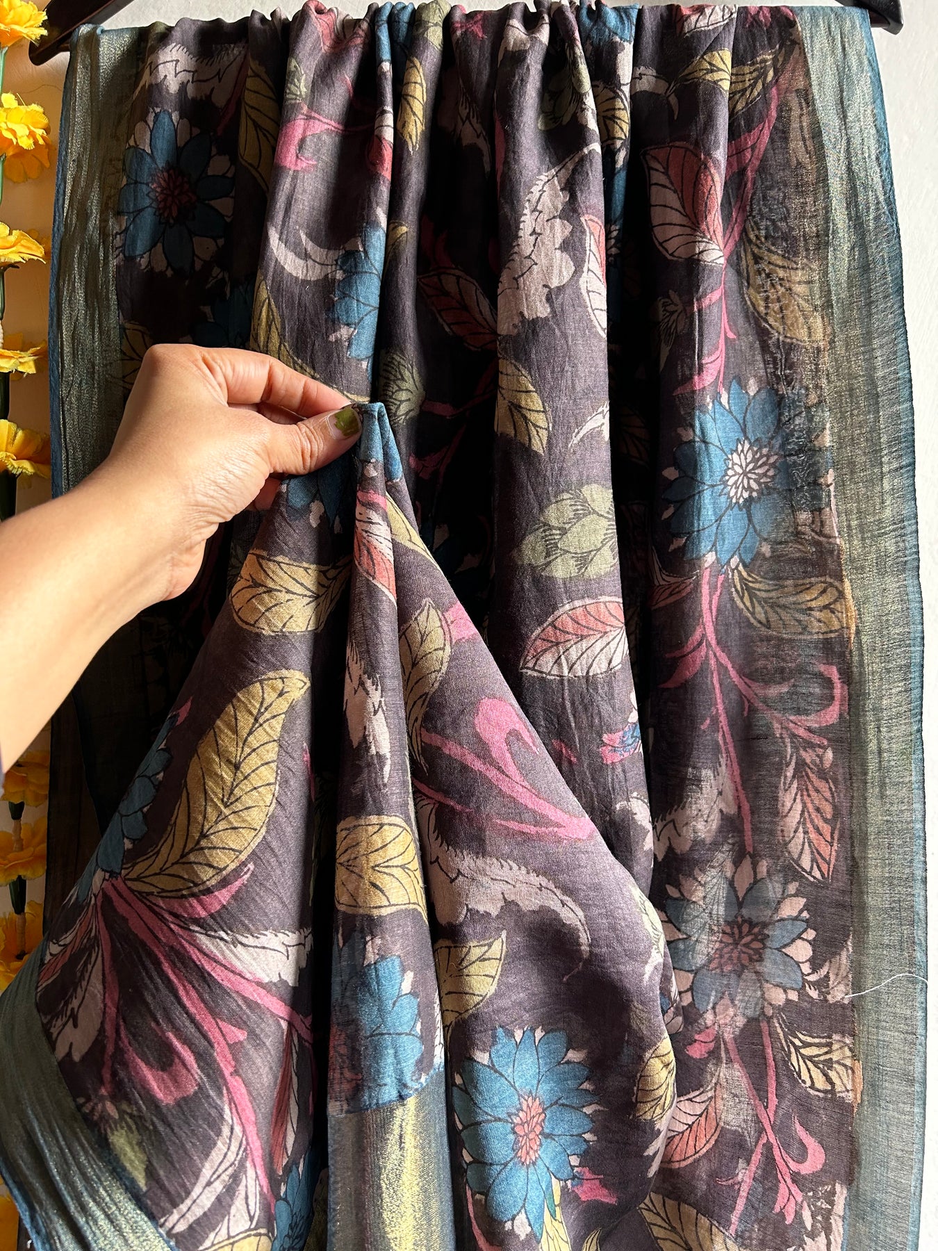 RIDHIMA :Hand-drawn & Hand- Painted Penkalamkari chanderi dupatta