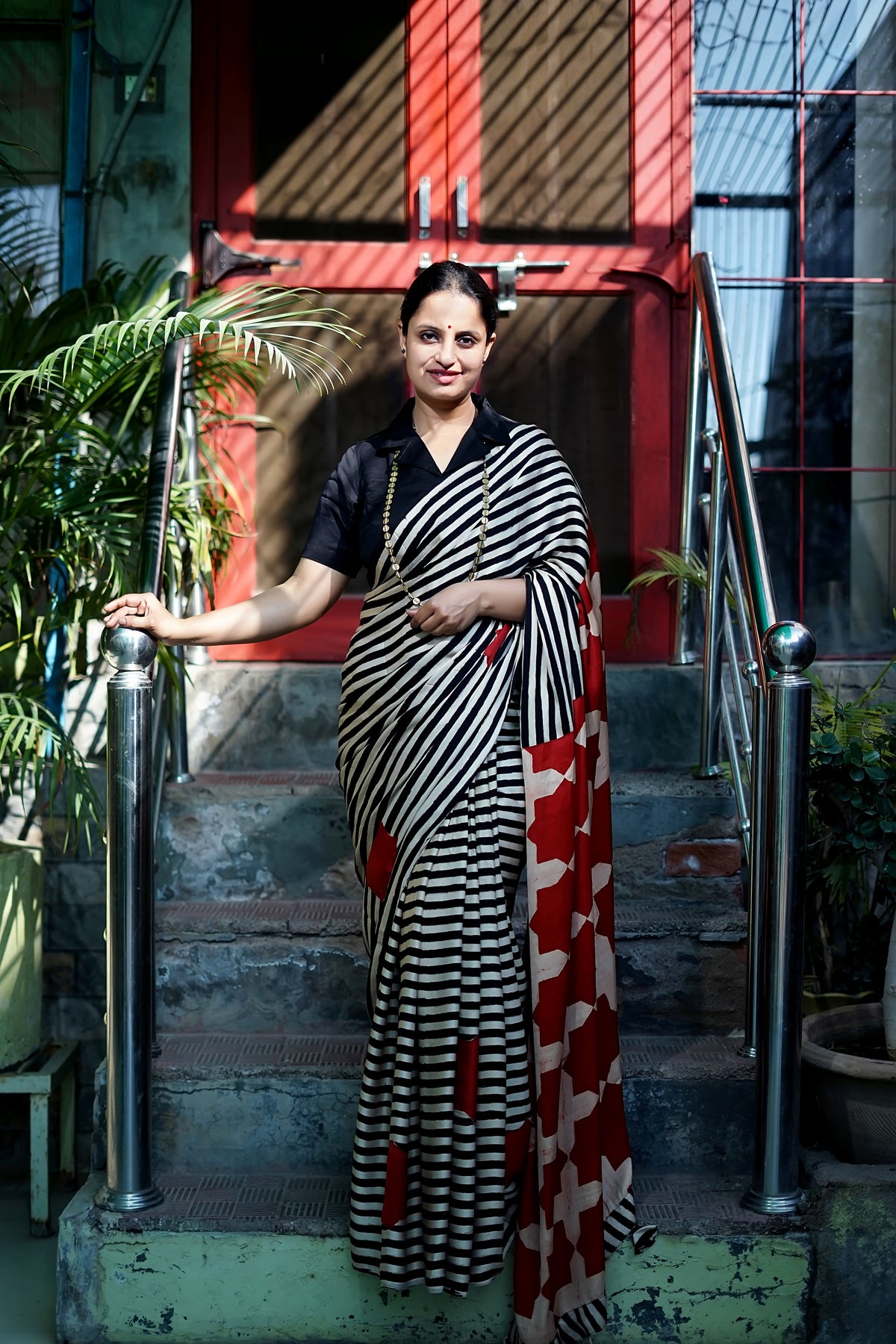 It’s a handmade product so there may be some irregularities are possible due to human hand involvement , this may enhance the beauty of handmade products. This saree is made by a young ajrakh artist from kutch Gujrat.