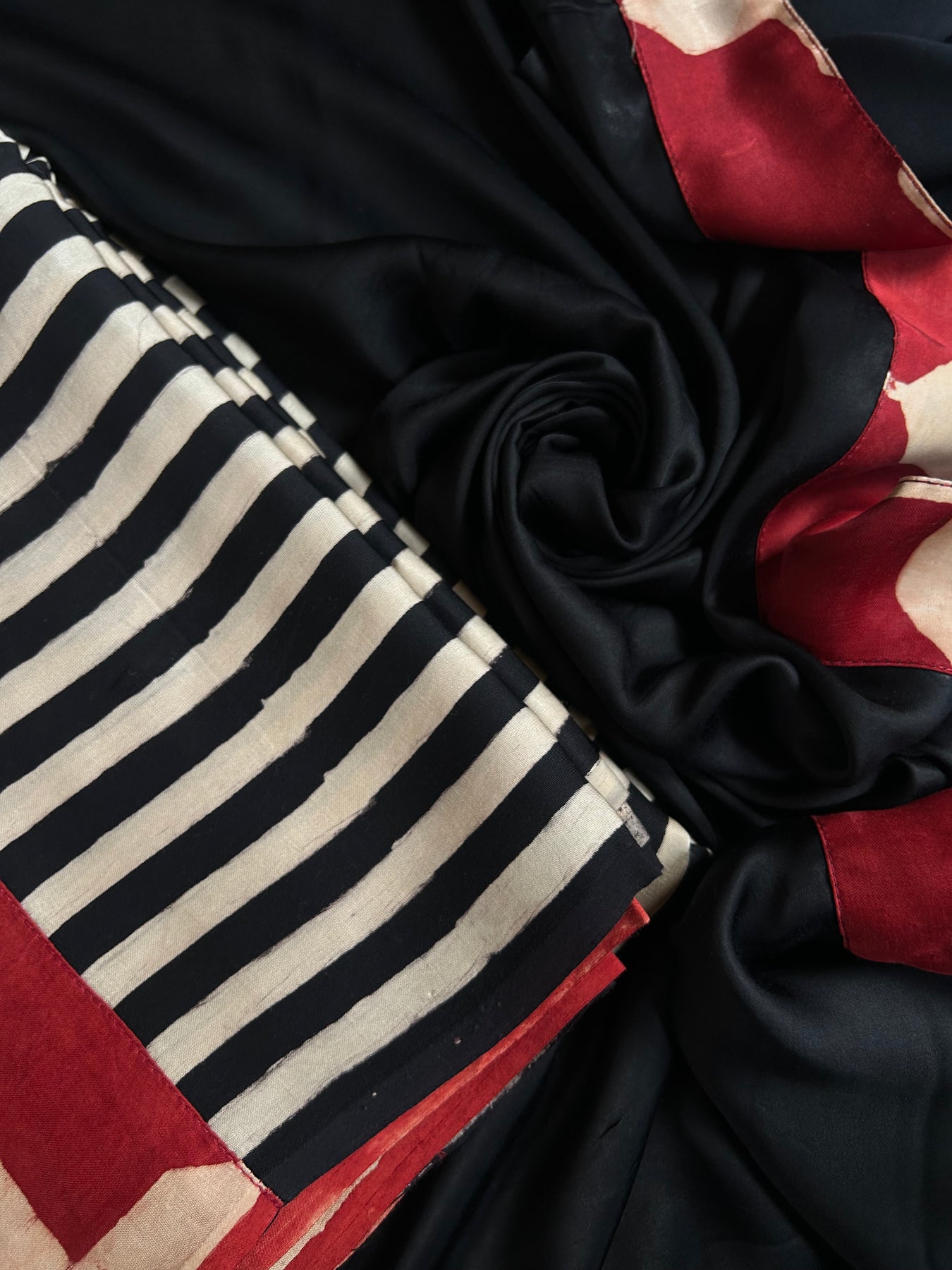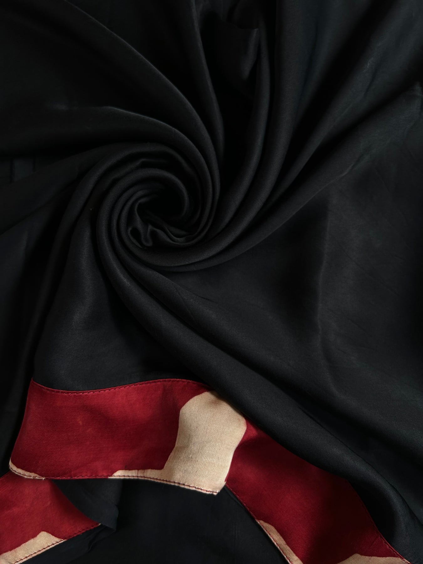 Ajrakh is a thousand year old art performed by ‘ khatri” community from kutch, Gujrat. It’s a multistage printing process completed in 14-21 steps and only natural colors are used in dyeing and printing process.