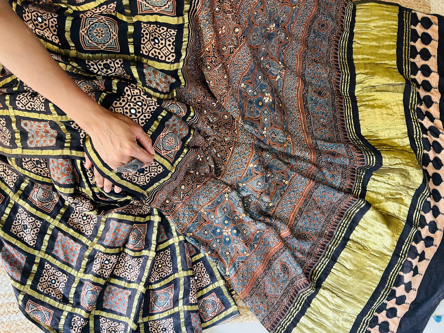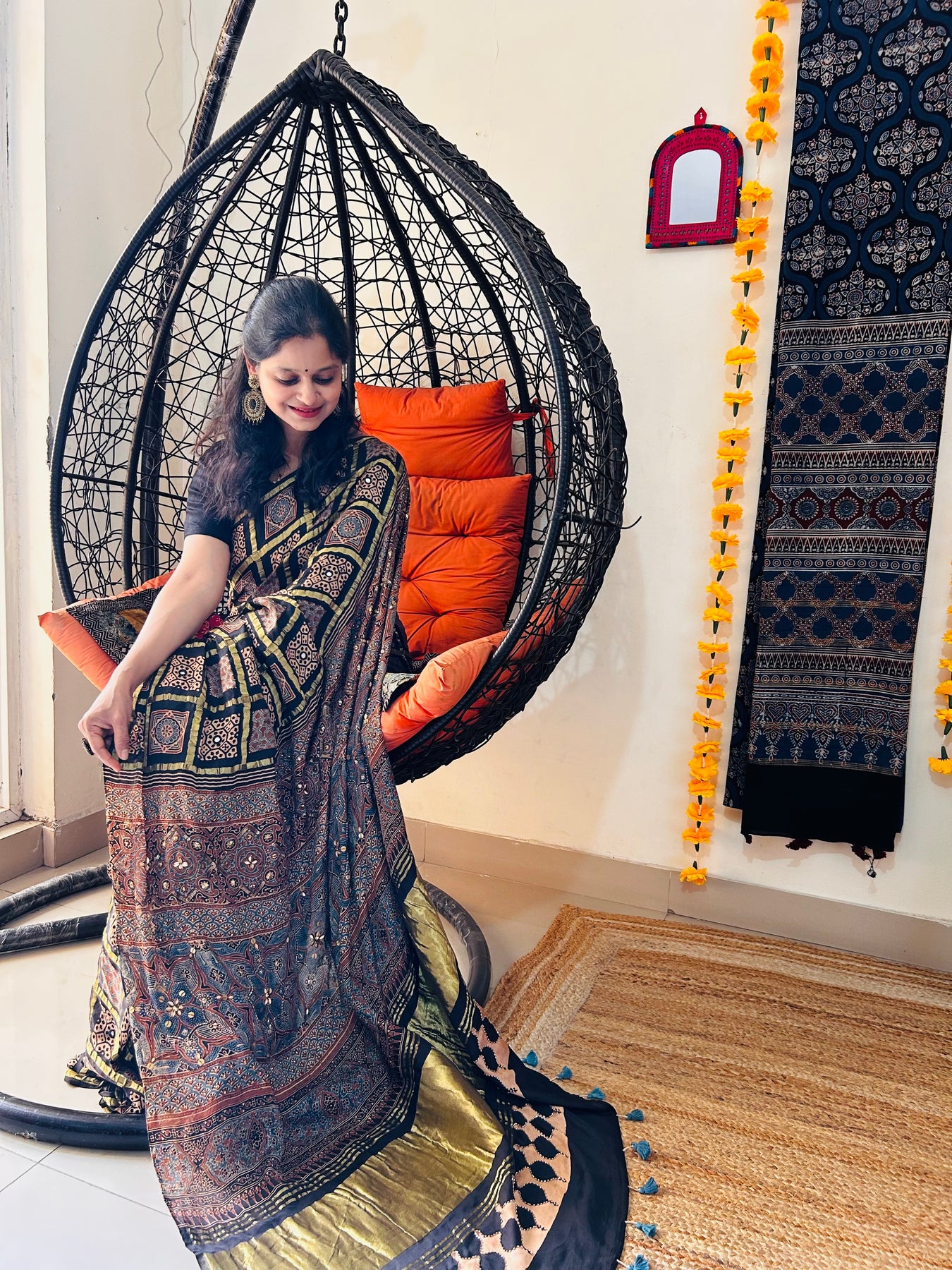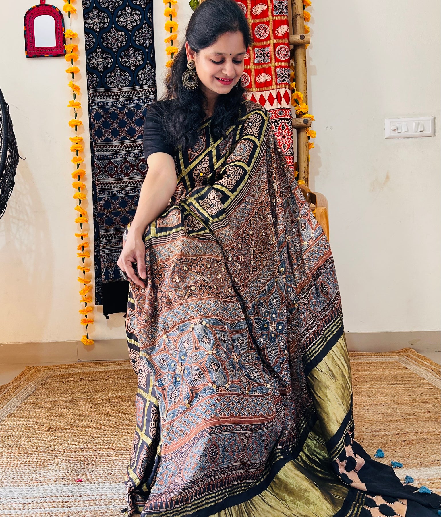 The saree is amazing!!! The ajrakh print is awesome. Cannot wait to flaunt this one 🩷