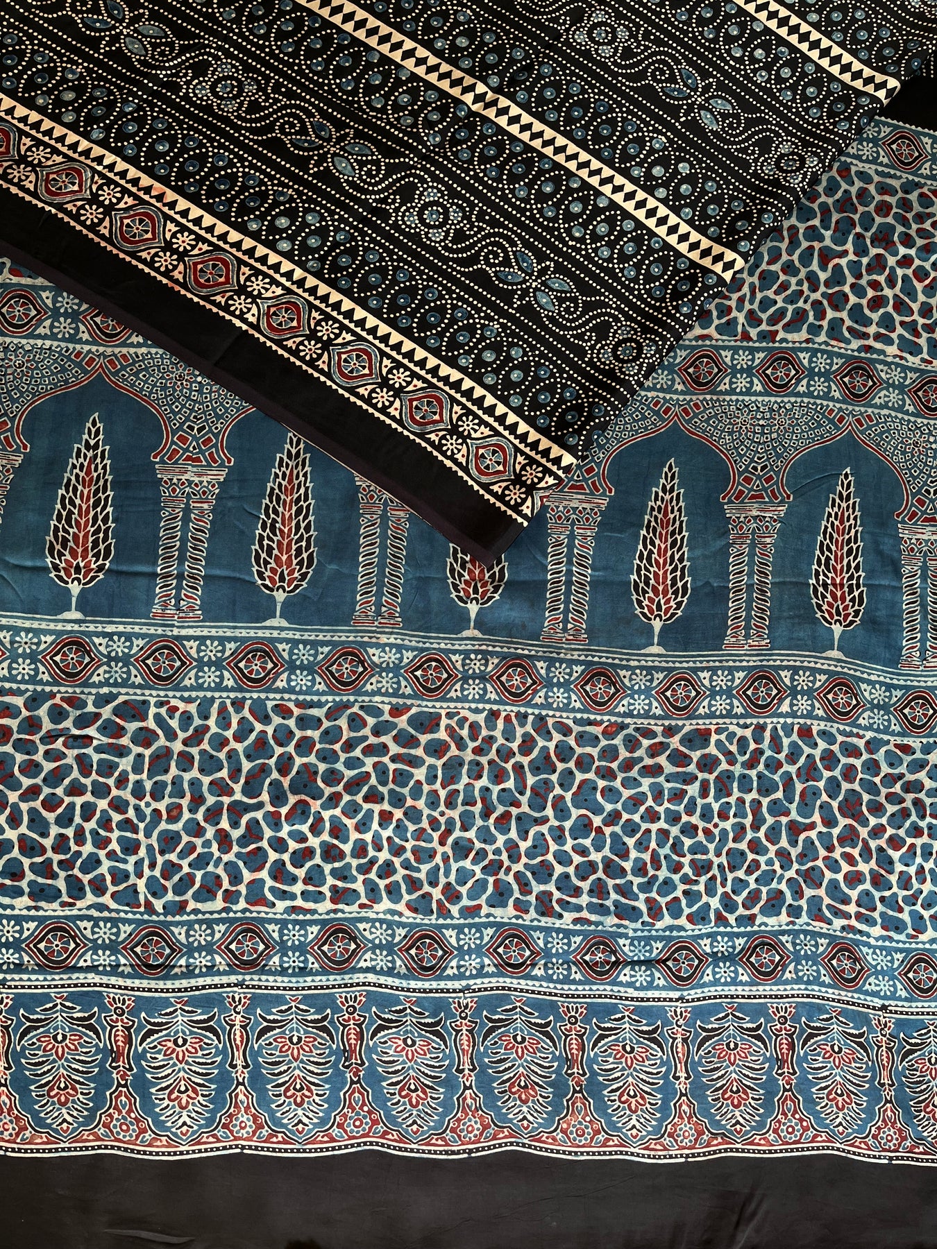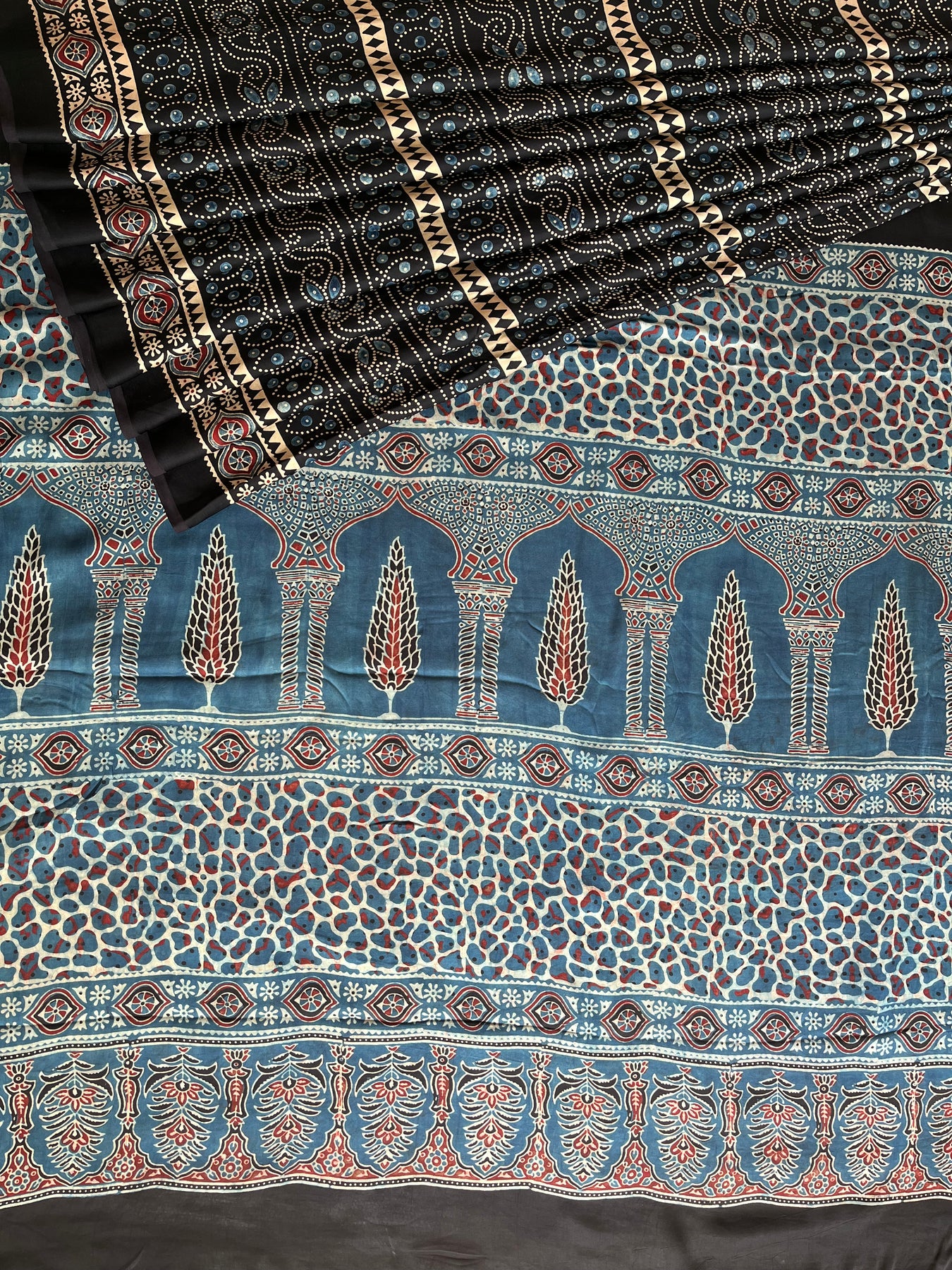 MIRZA: HAND BLOCK AJRAKH MODAL SILK SAREE