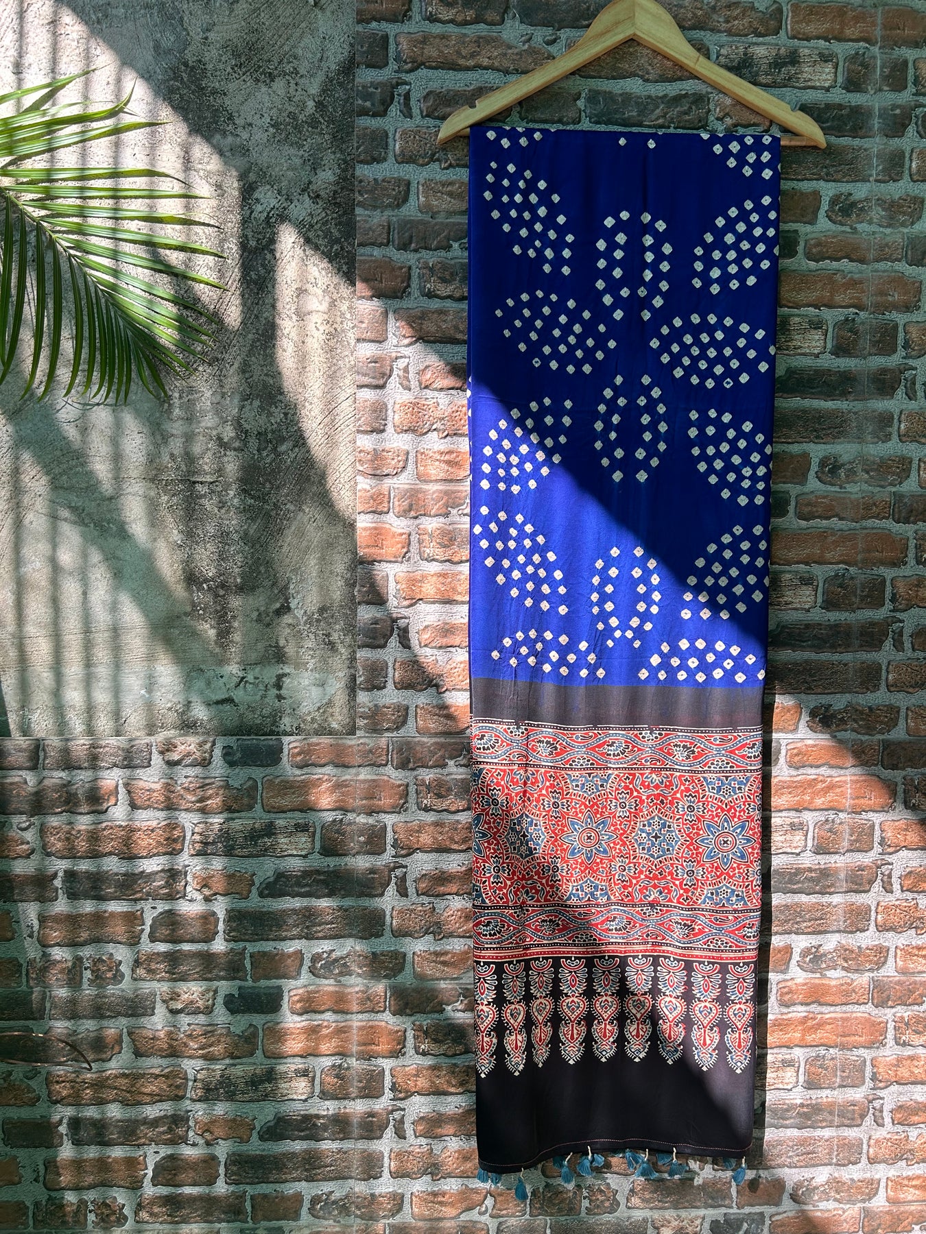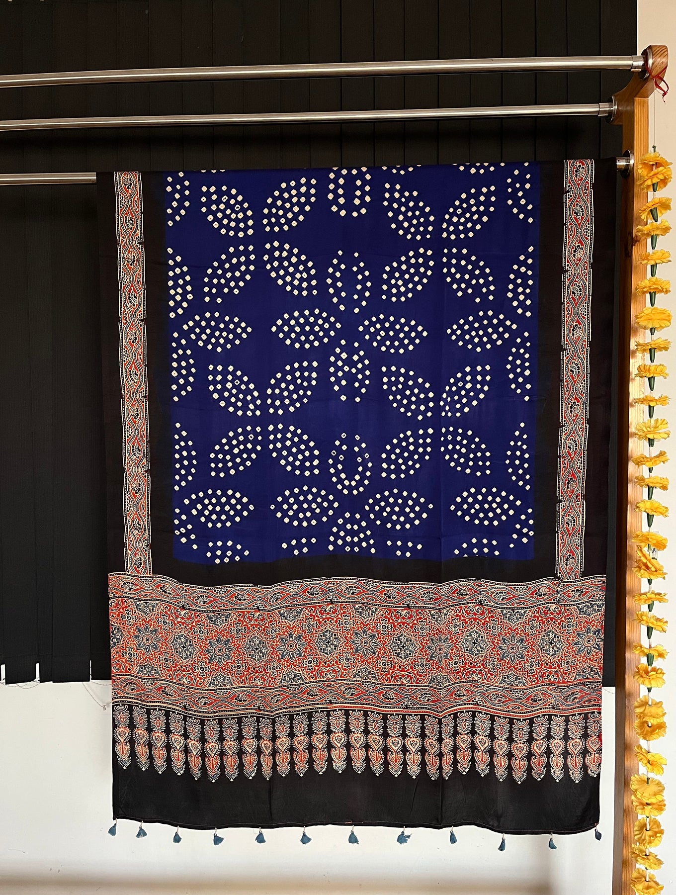 SAMAIRA : HANDMADE BANDHANI AJRAKH MODAL SILK DUPATTA WITH TISSUE