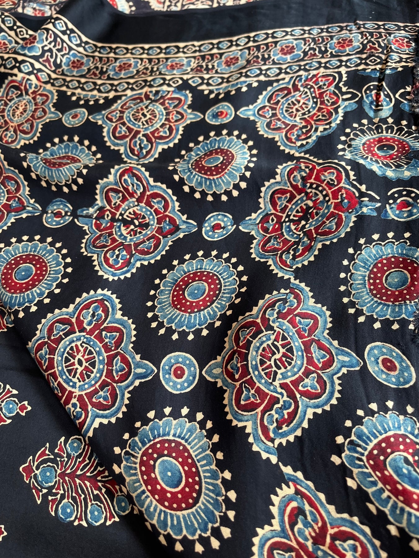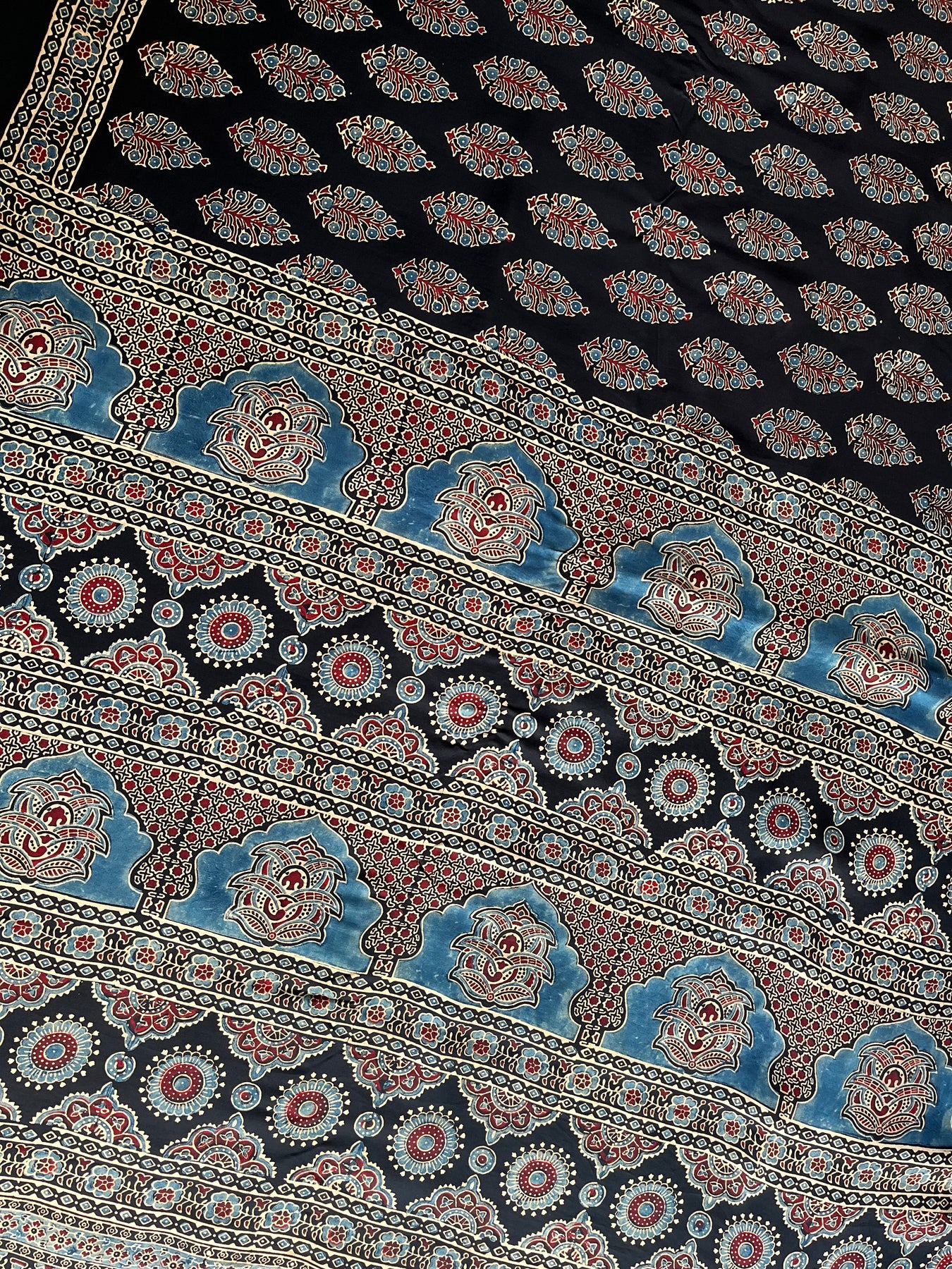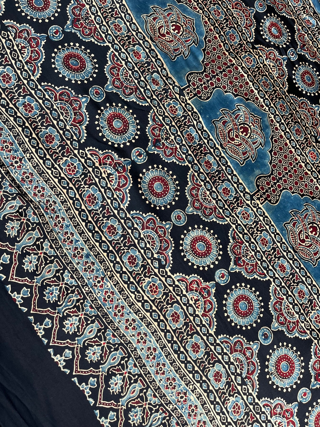 Handblock ajrakh print with natural colors by khatri community from Kutch,Gujarat