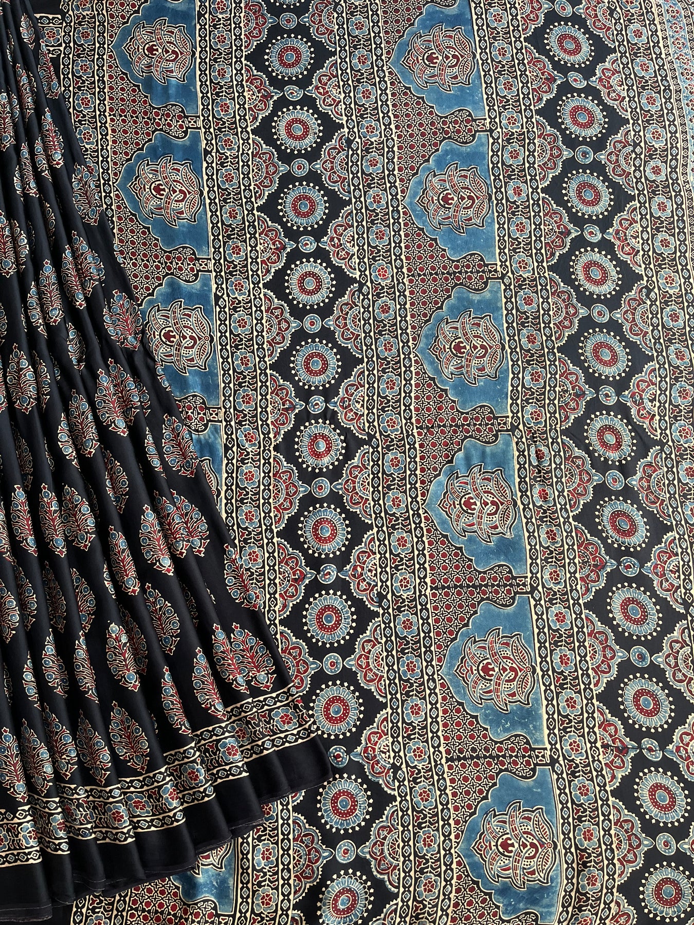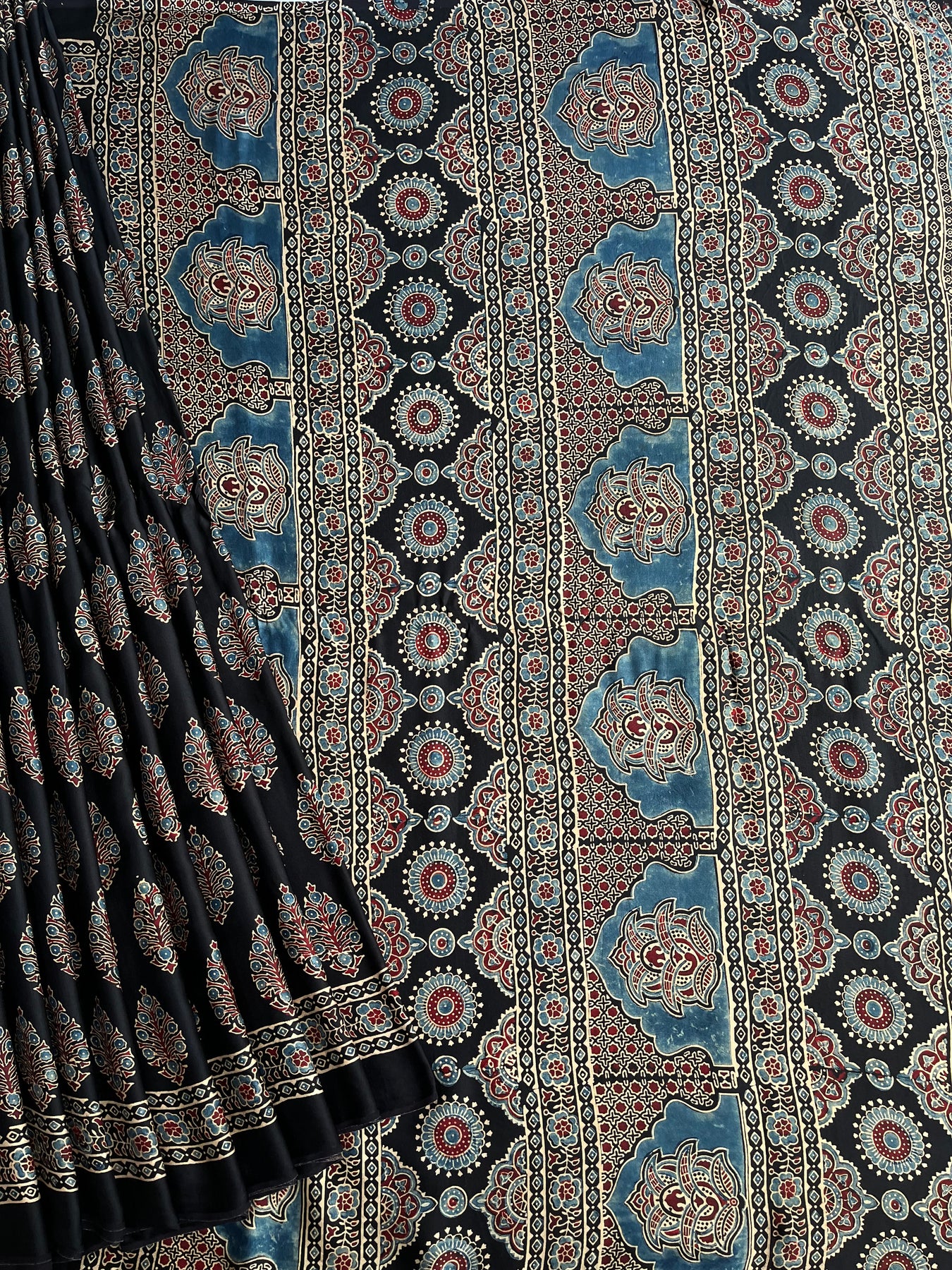 GOPIKA:HANDBLOCK AJRAKH MODAL SILK SAREE