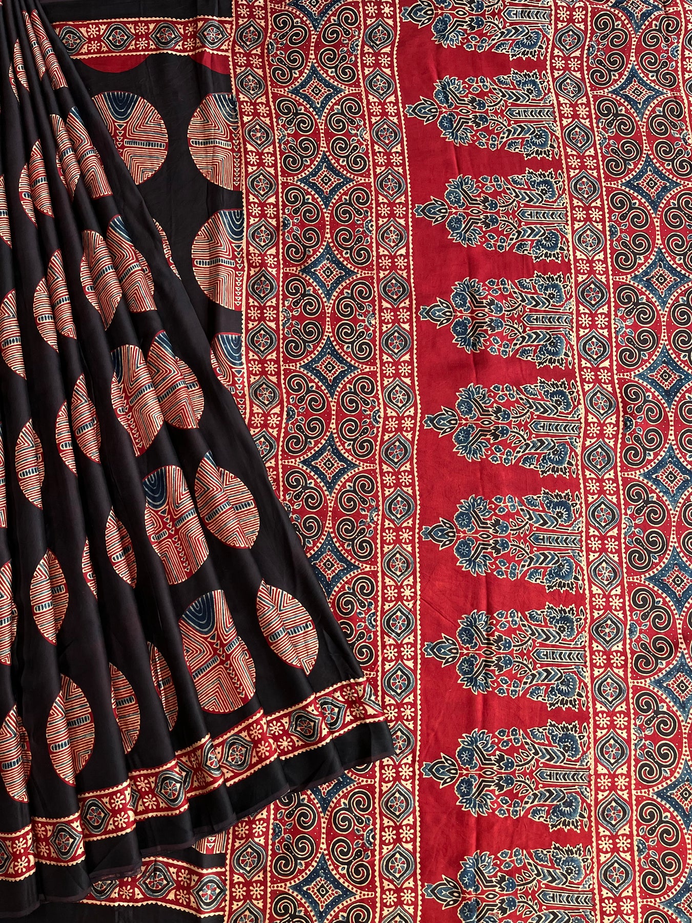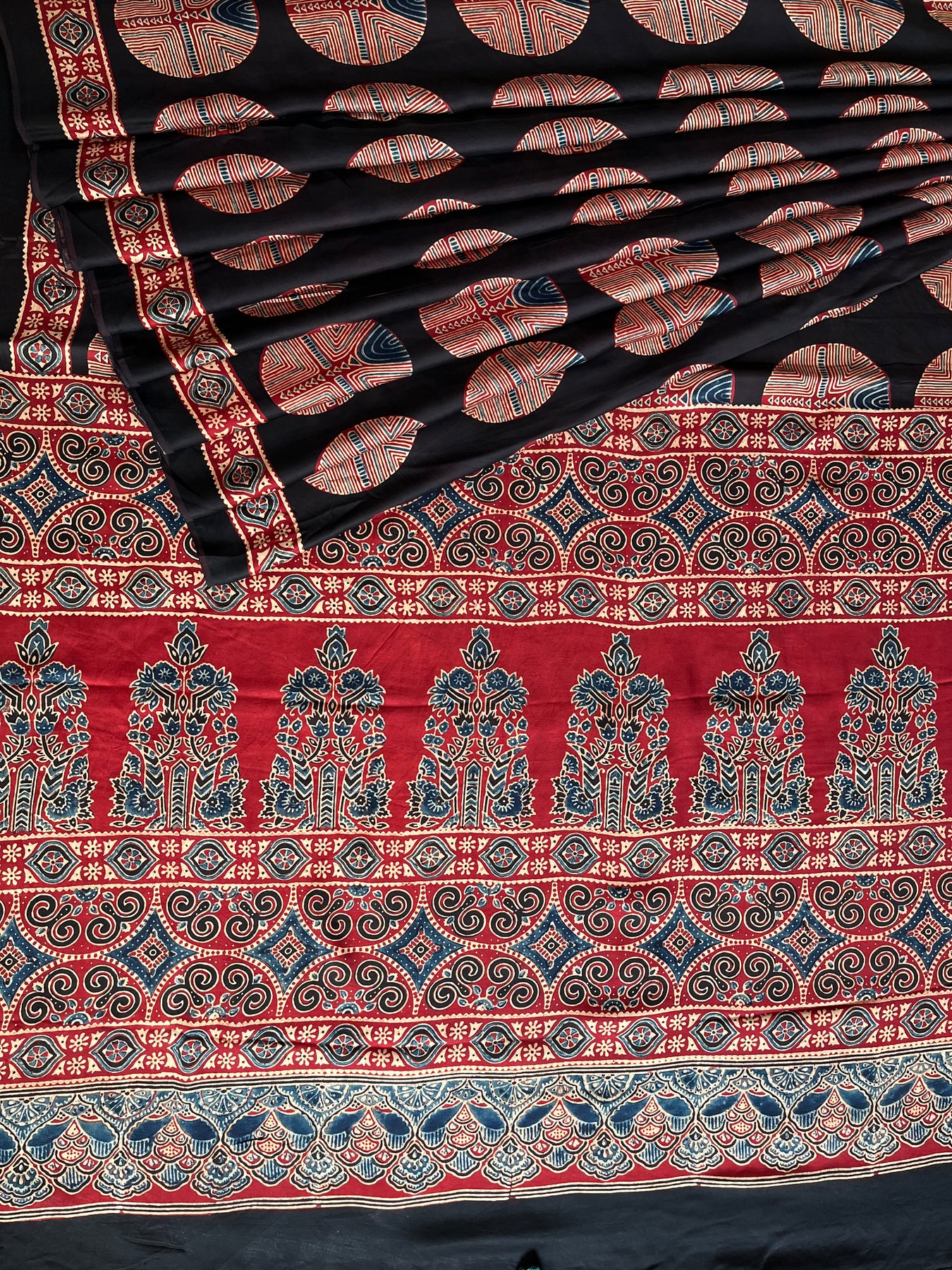 Brinda: HANDBLOCK AJRAKH MODAL SILK SAREE