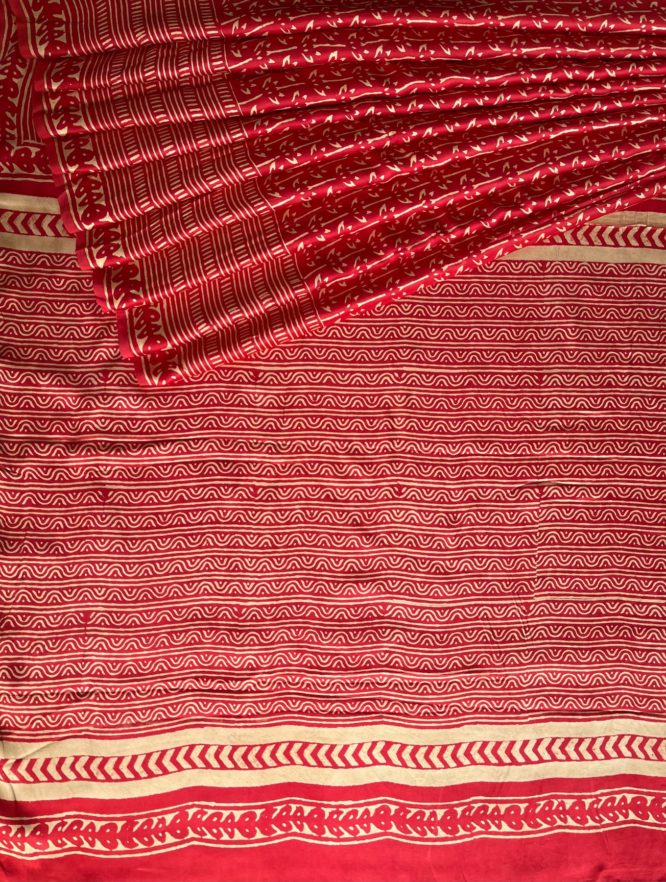 NEELAM: HANDBLOCK BAGRU PRINTED ICE BLUE MODAL SILK SAREE
