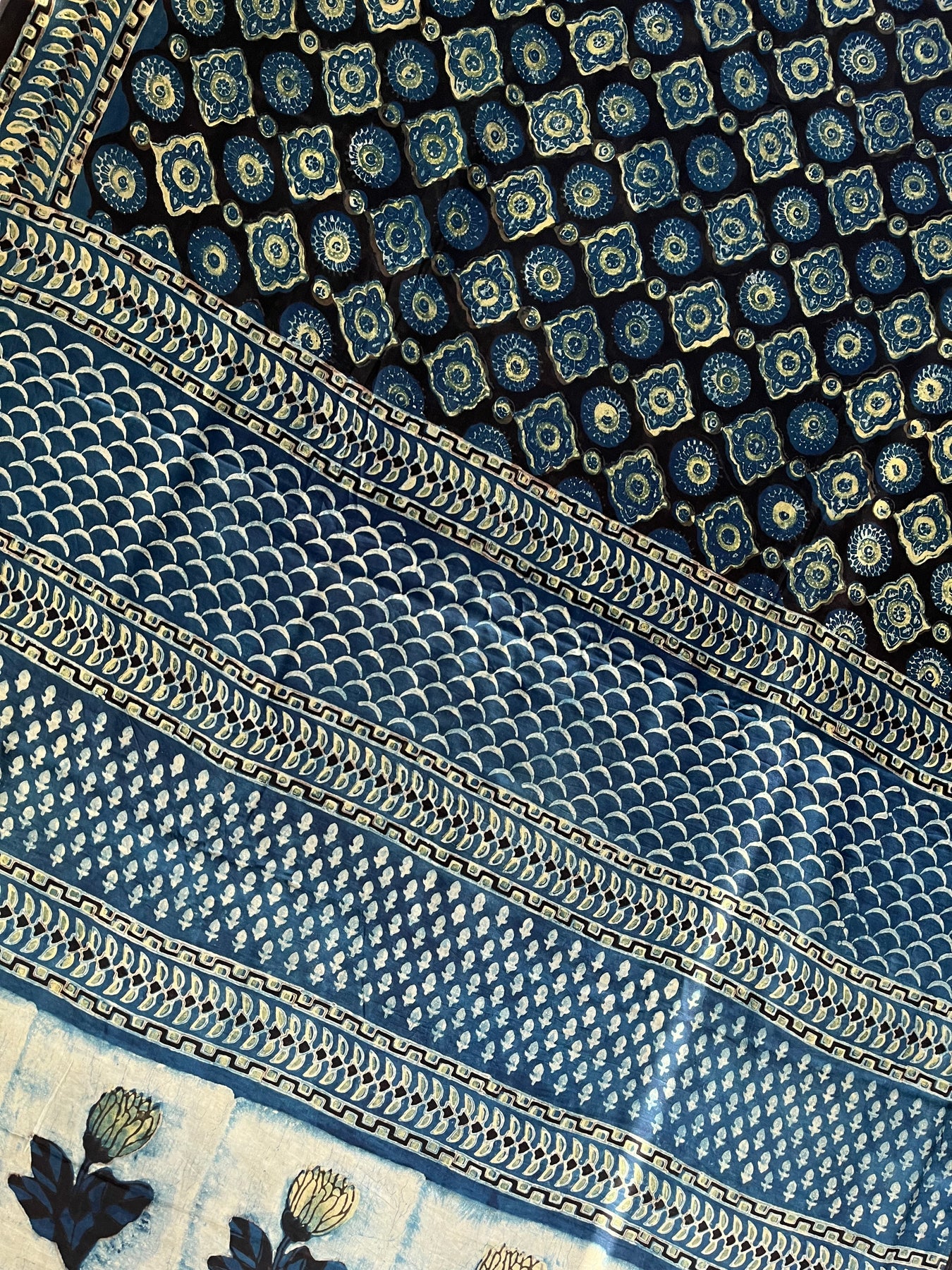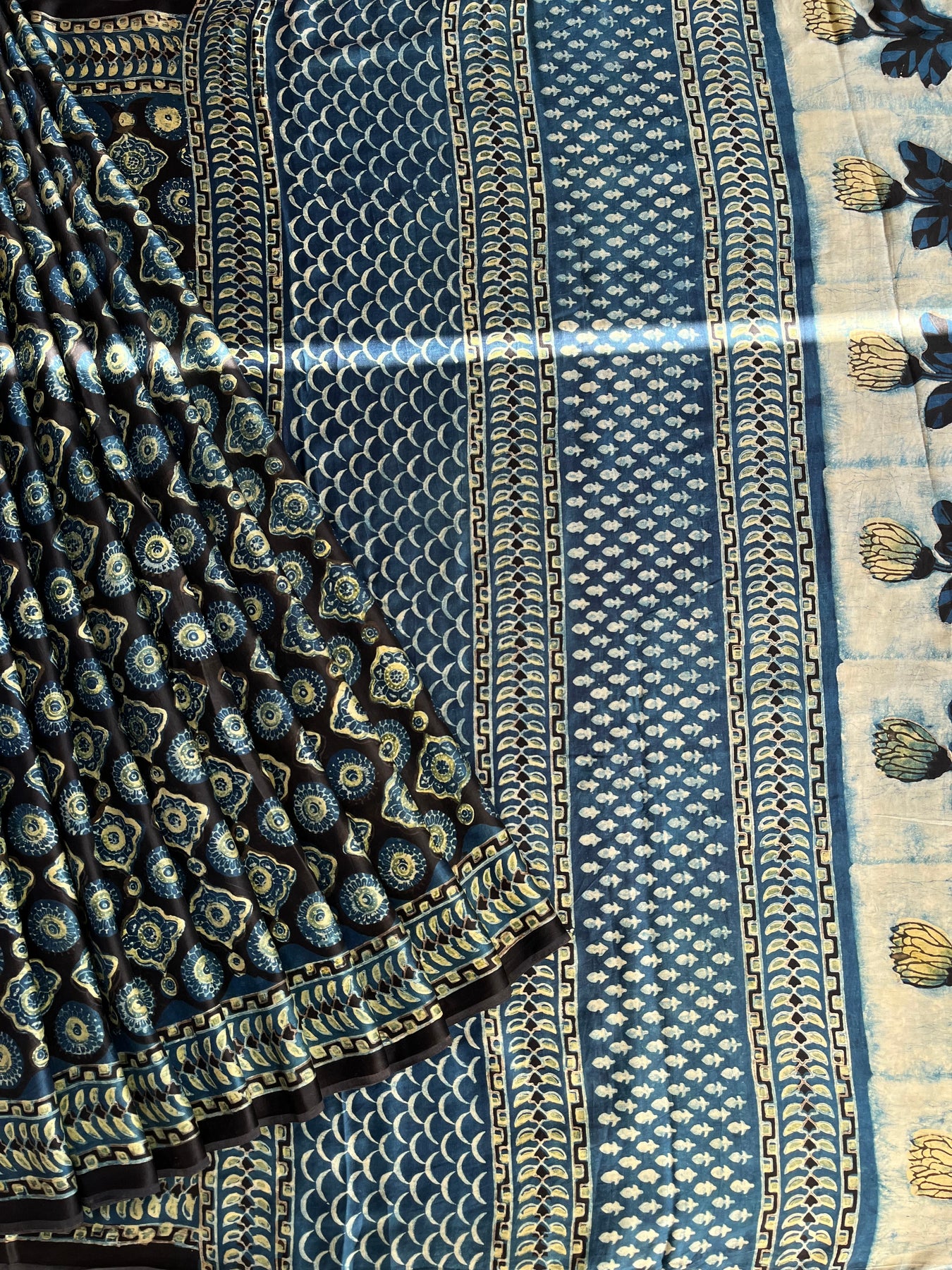 Roshan:MARIGOLD,HANDBLOCK PRINTED DABU MODAL SILK SAREE