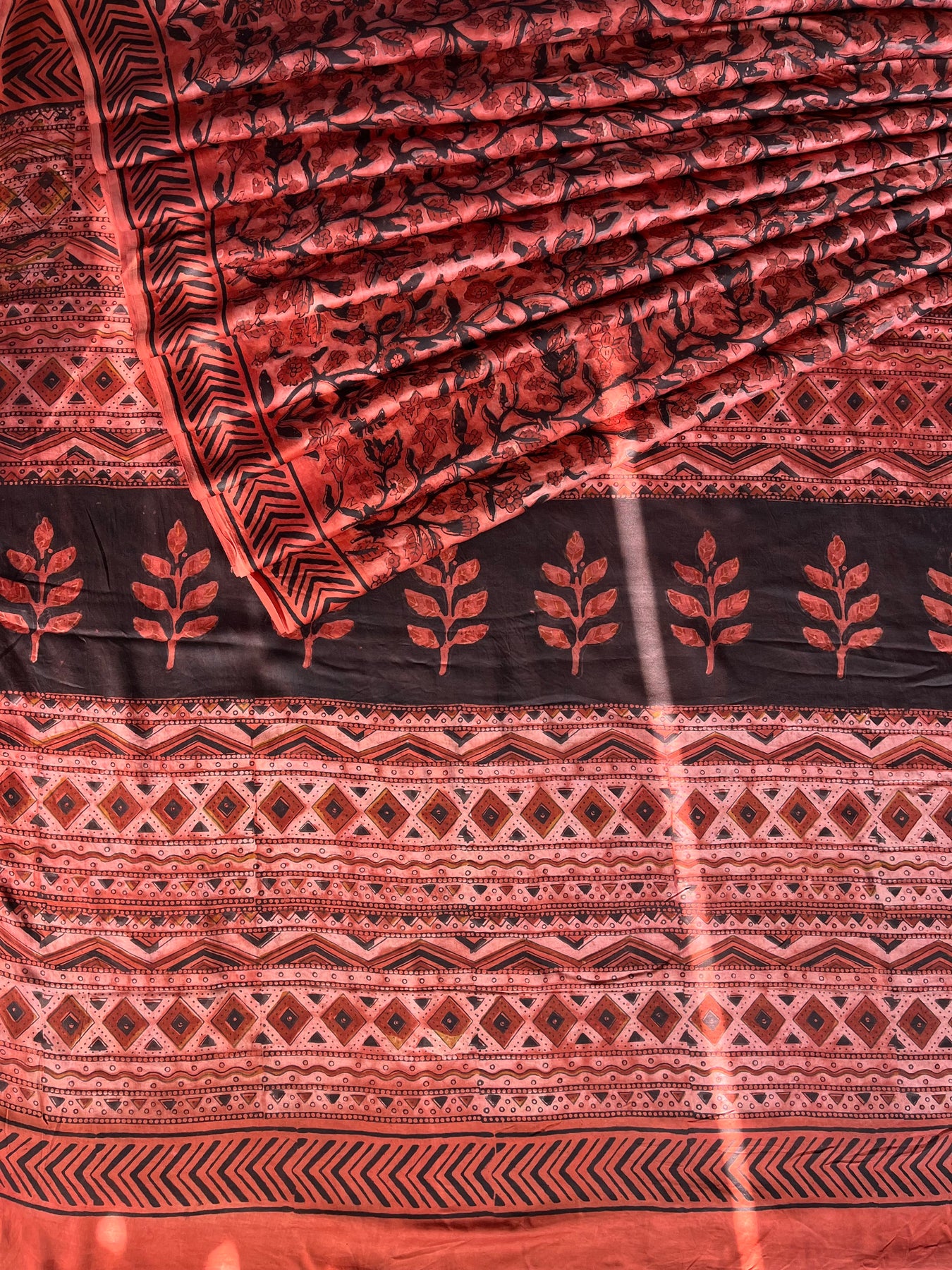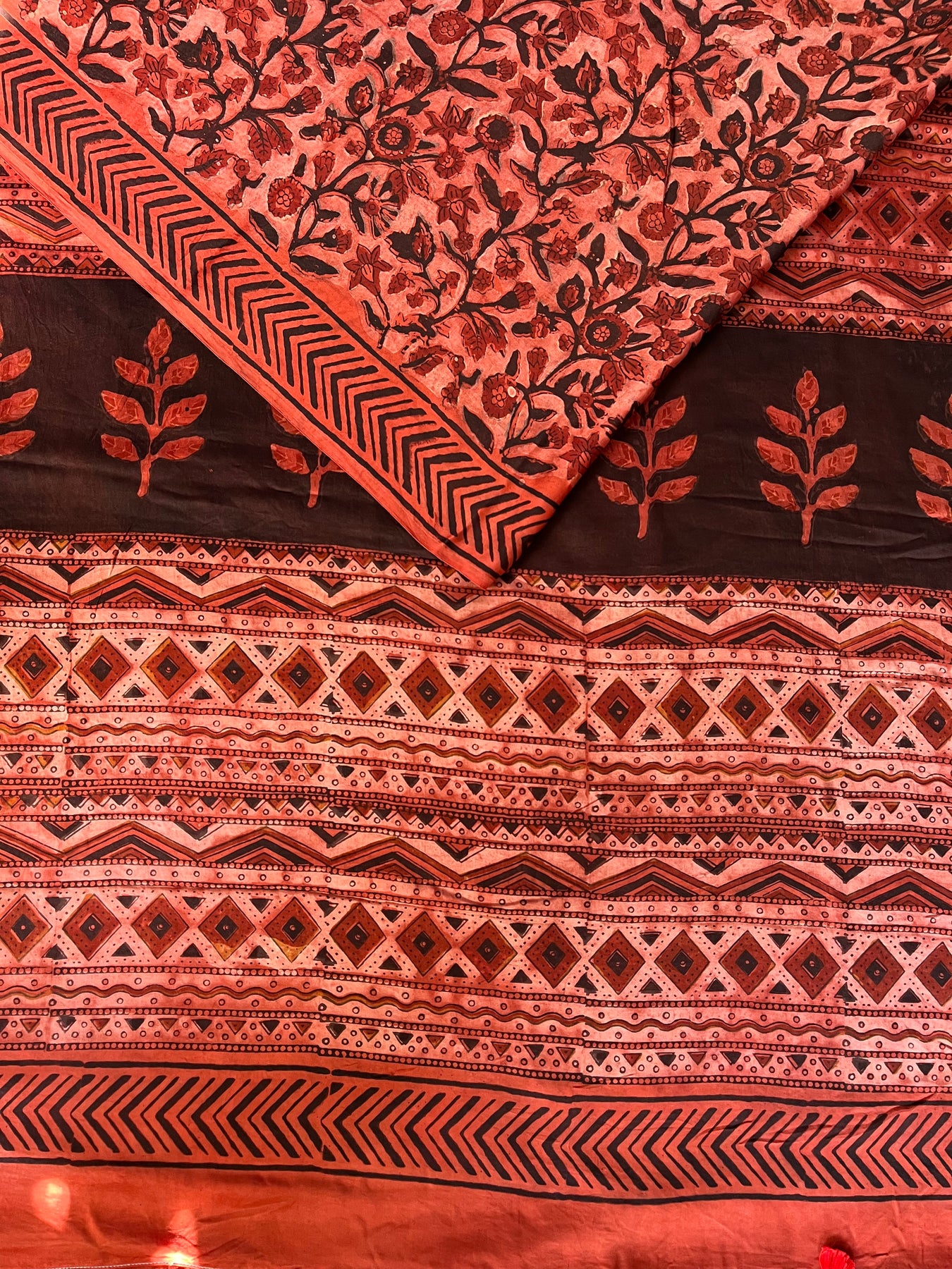 RUHANI: VIOLET,HANDBLOCK PRINTED DABU MODAL SILK SAREE