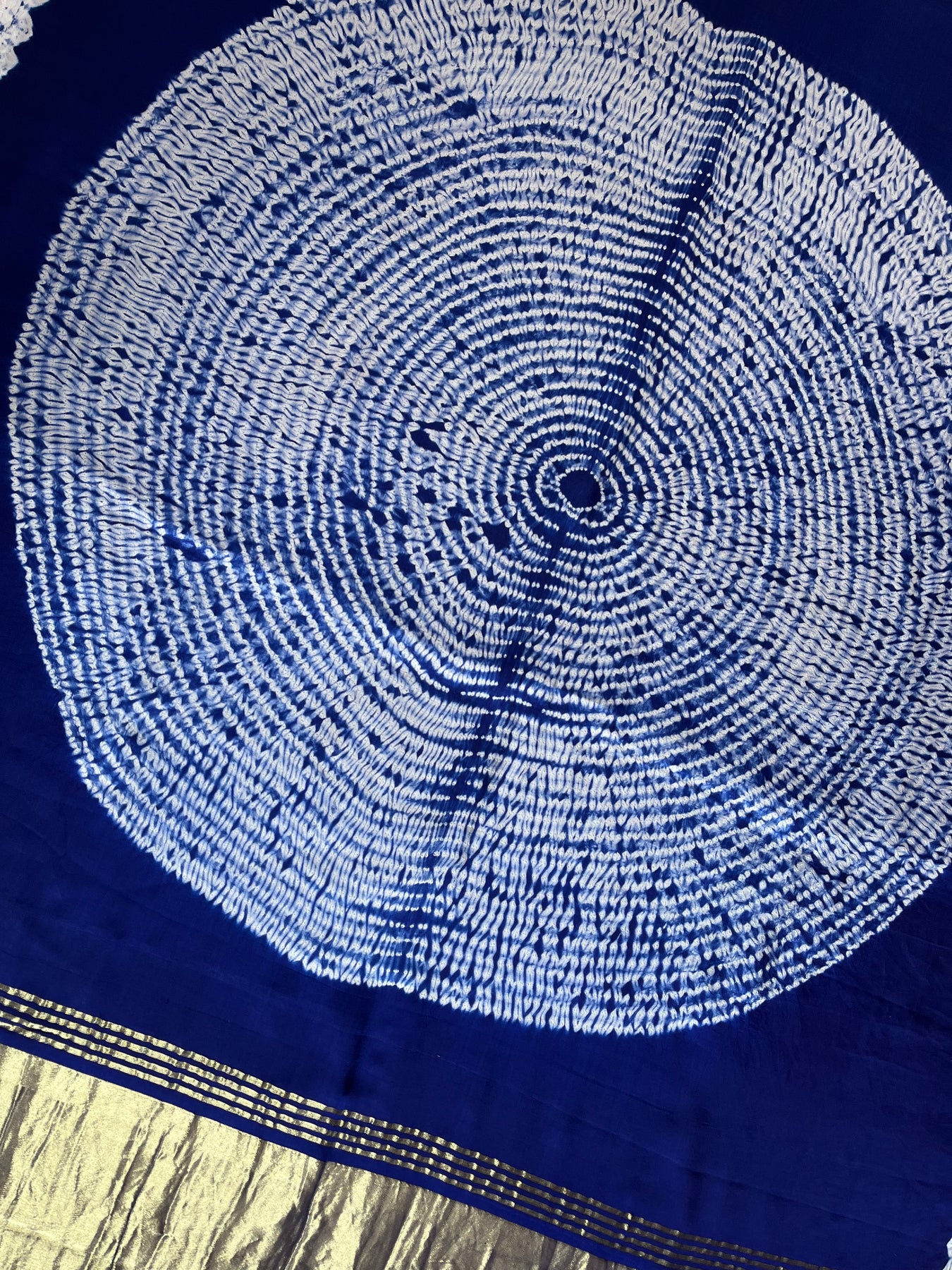 It’s a handmade product so there may be some irregularities are possible due to human hand involvement , this may enhance the beauty of handmade products. This saree is made by a award winning shibori artist from kutch Gujrat. |