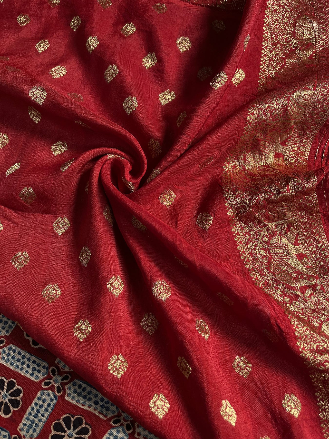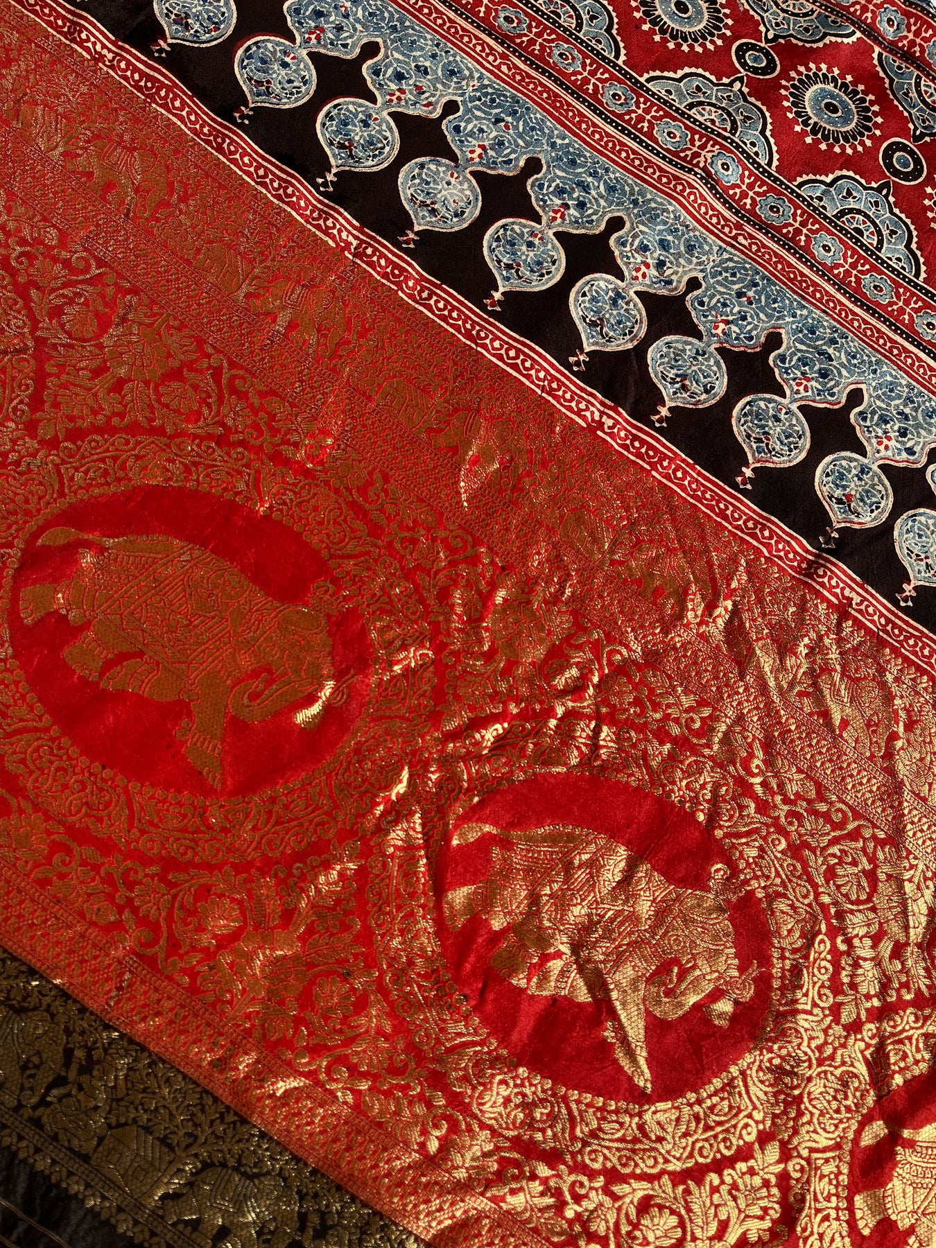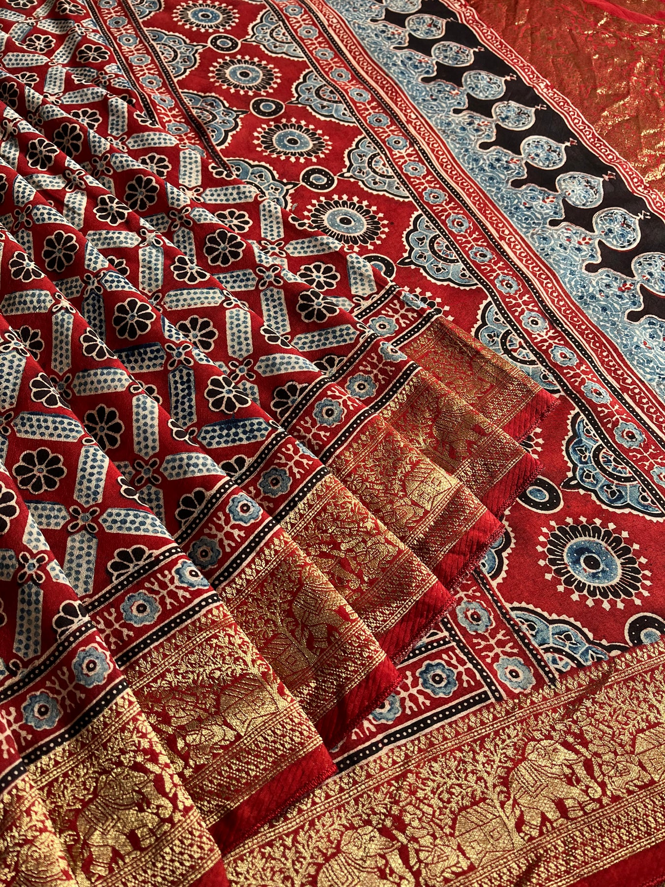 It’s a handmade product so there may be some irregularities are possible due to human hand involvement , this may enhance the beauty of handmade products. This saree is made by a young ajrakh artist from kutch Gujrat.