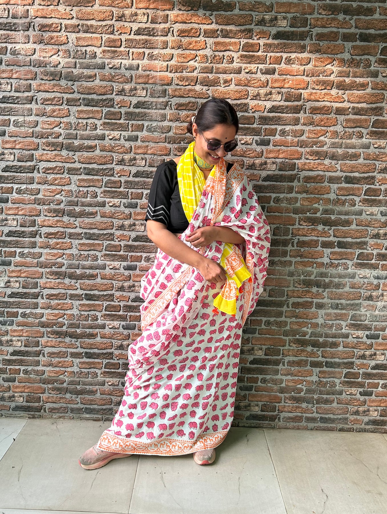 Handmade Shibori stitched saree with natural colors. |