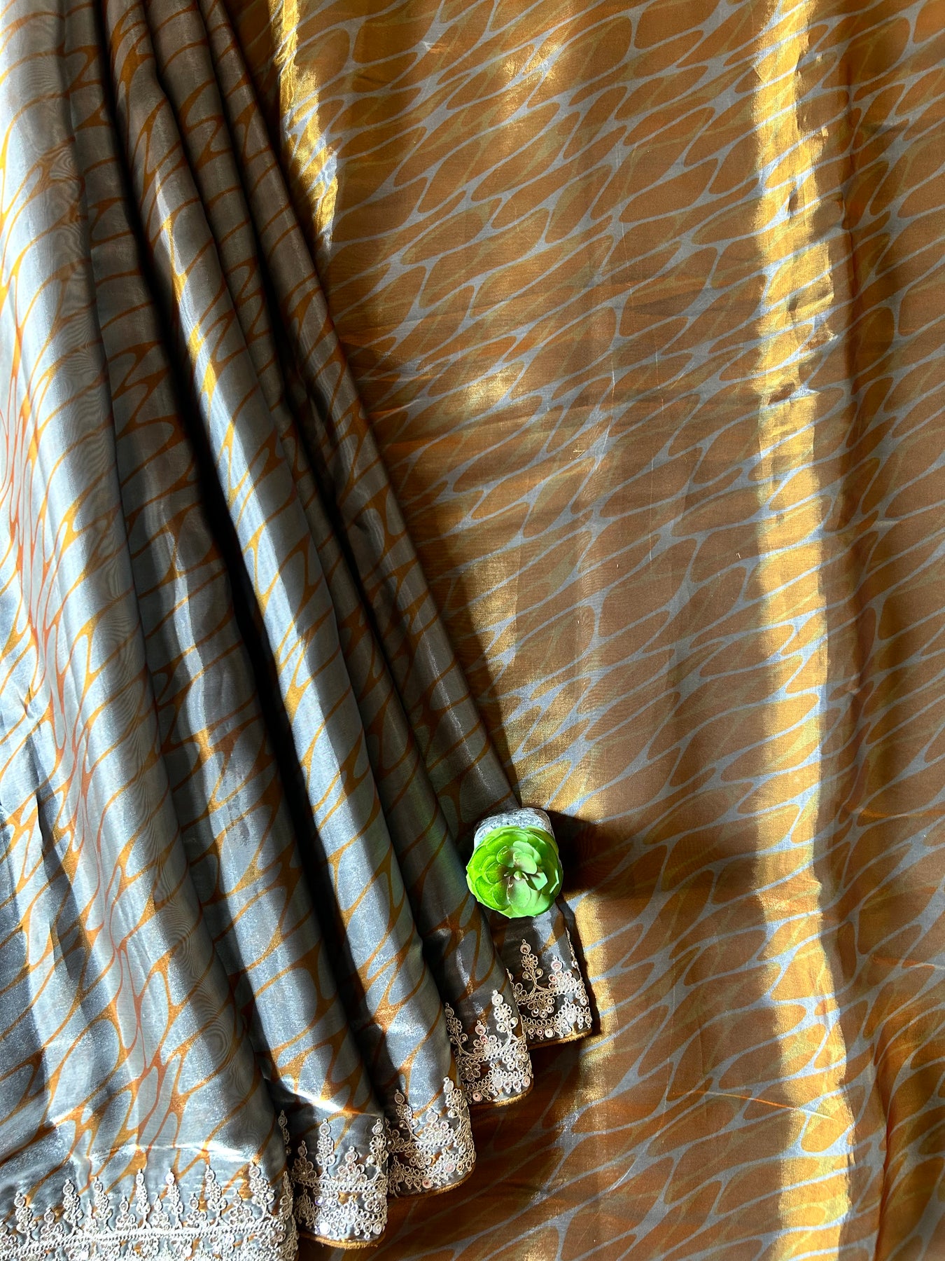 NAYAN: PARTYWEAR DIGITAL PRINTED TISSUE ORGANZA SAREE WITH EMBROIDERY.