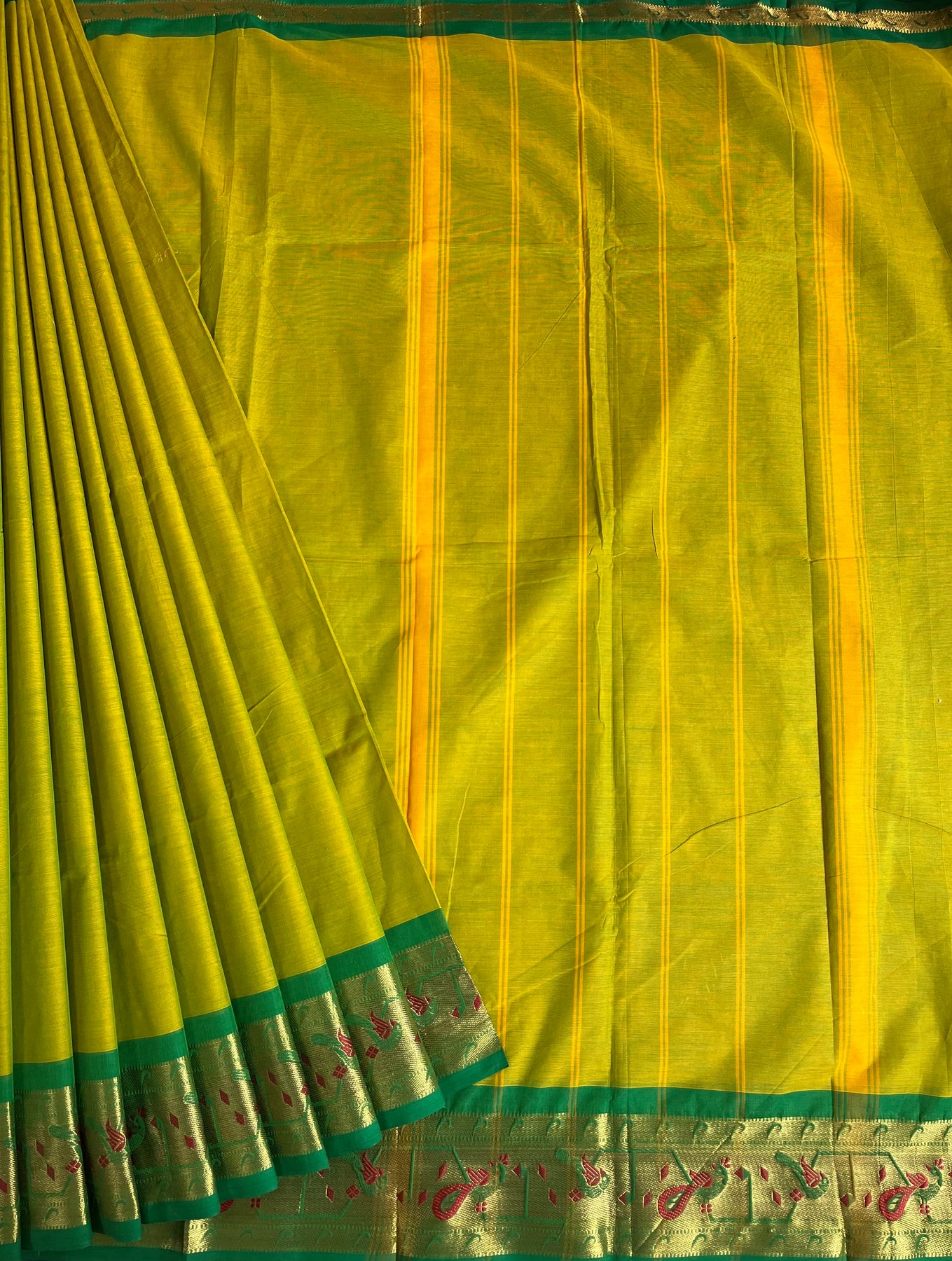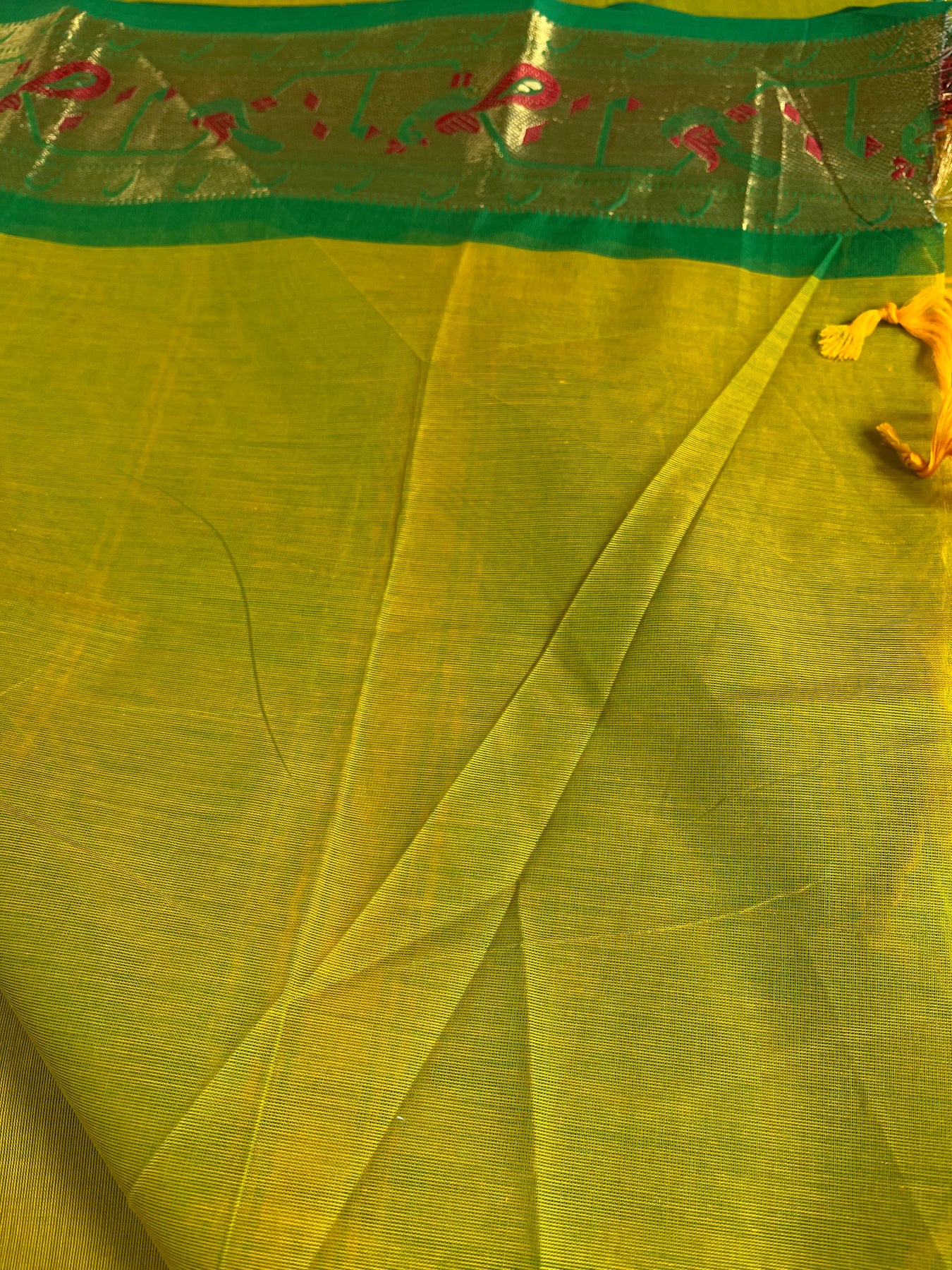 Our “BASANT” collection is dedicated to new joy, happiness and festivity which gives us freshness, colors and positive attitude. These south kanchi cotton saris from our Kanchipuram, Tamilnadu cluster is gives you a beautiful and comfortable drape. Kanchi cotton saris are most famous due to their comfortable drape and bight and vibrant colors and famous for their borders.