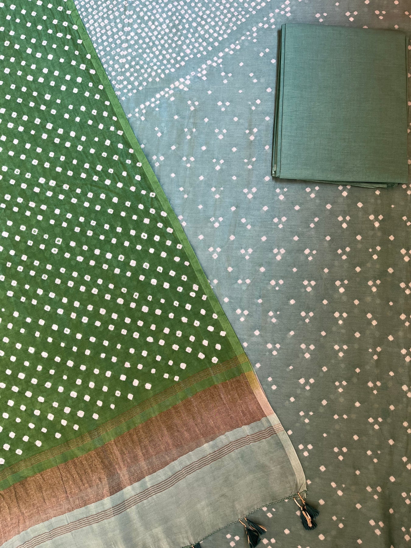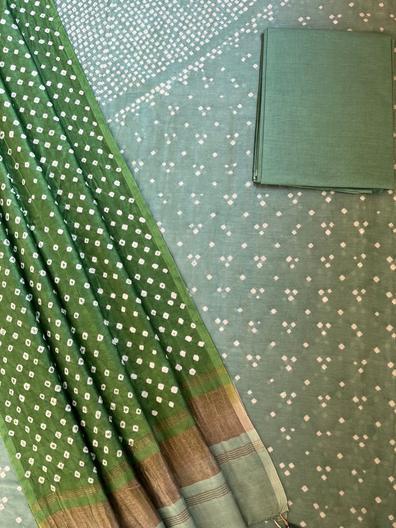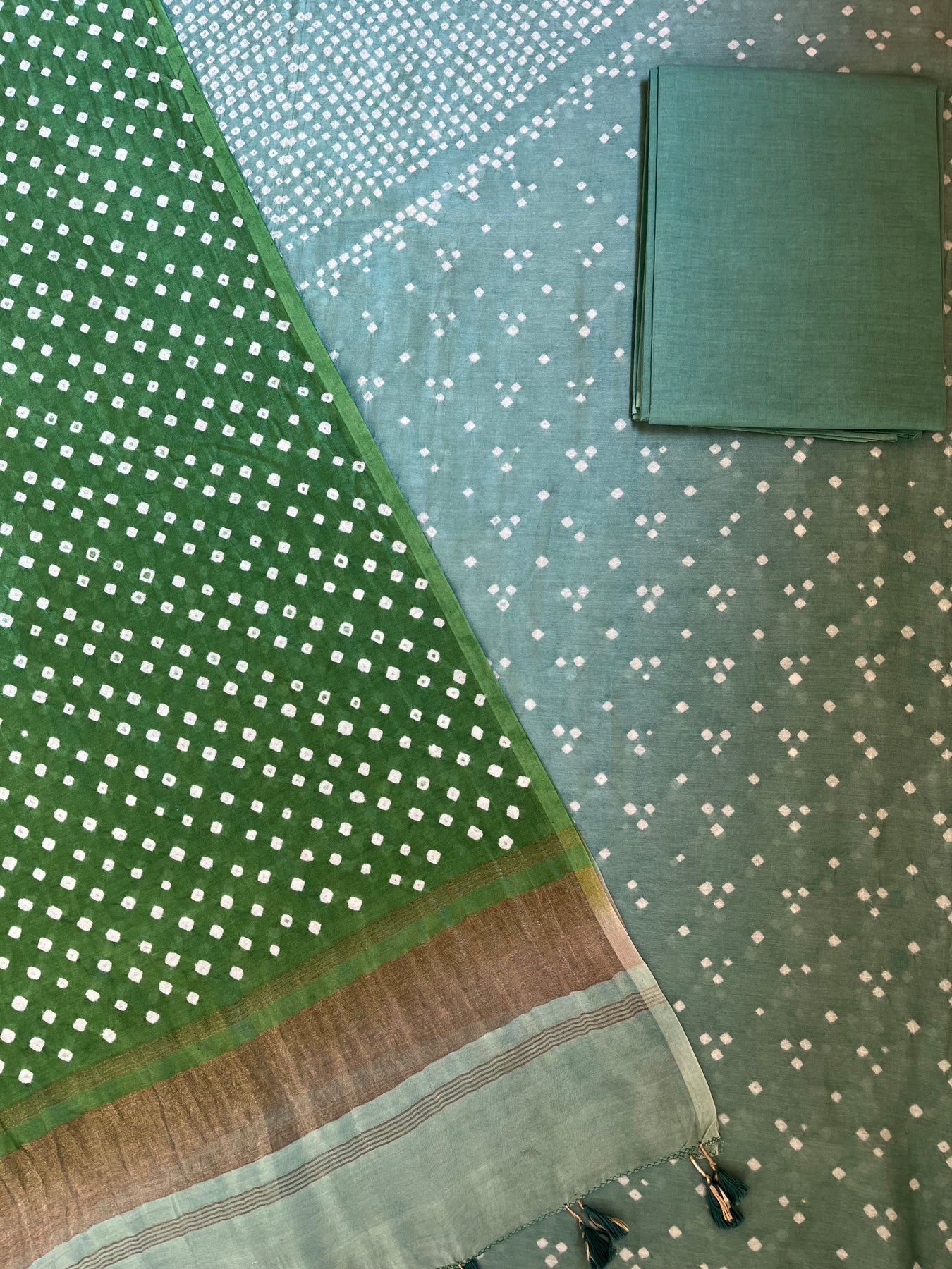 NIHARIKA :Handmade Designer Bandhnai Chanderi Silk- Cott 3 Piece Suit Set.