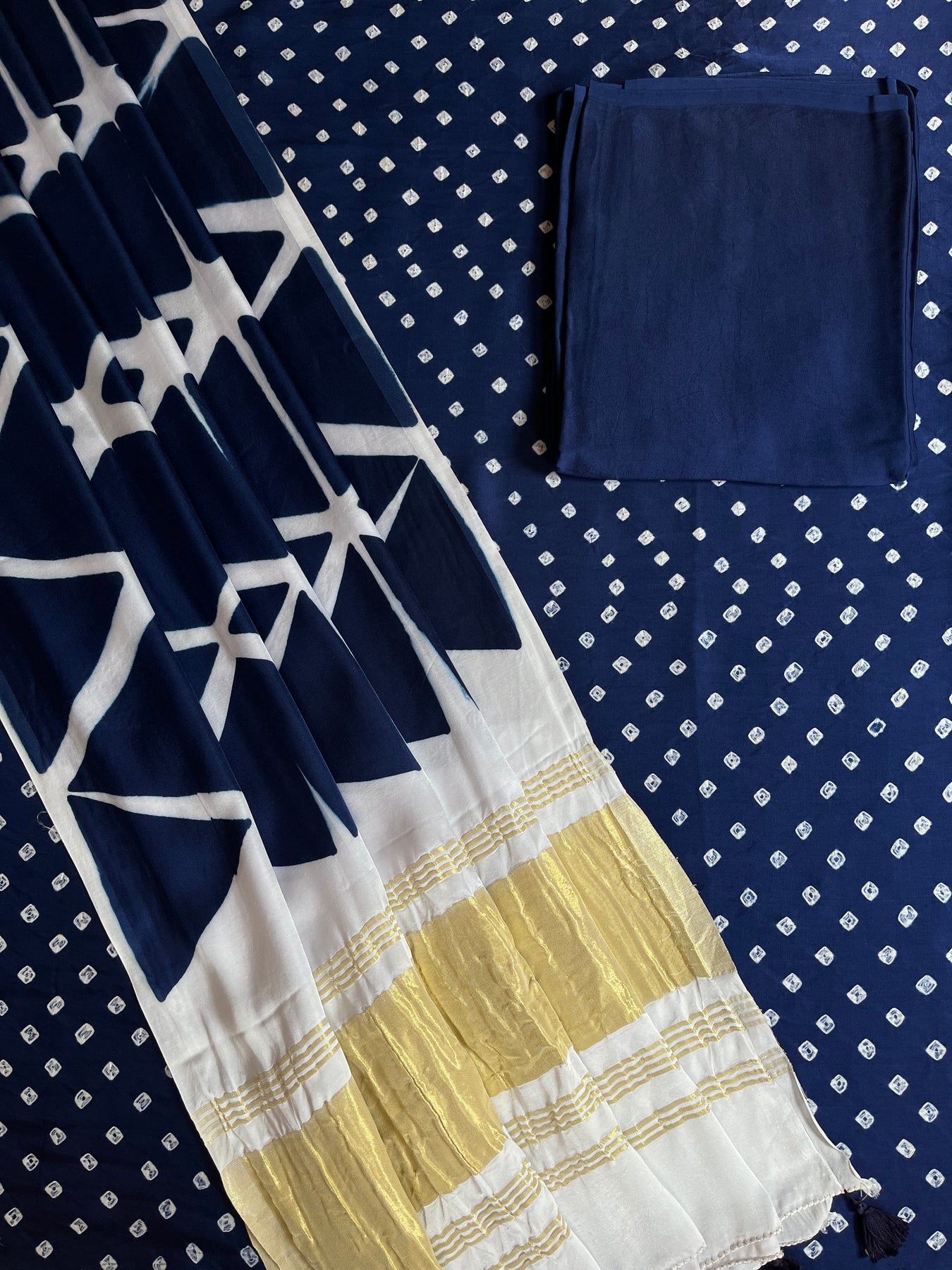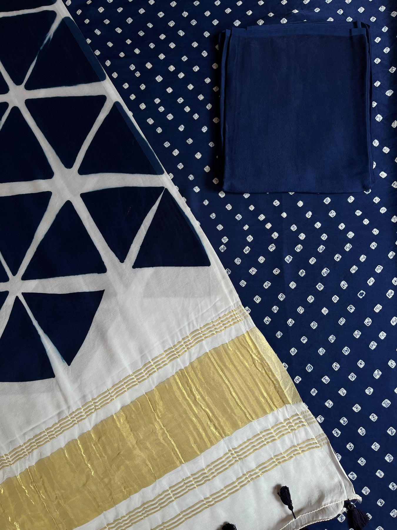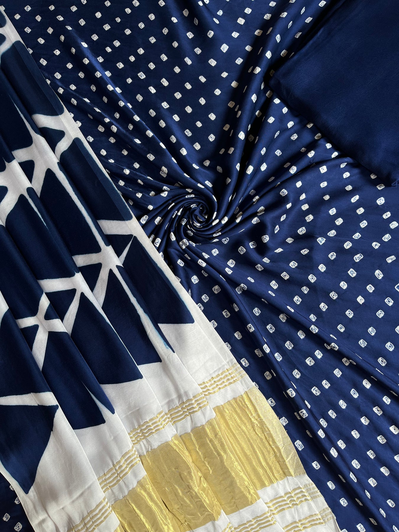 YASHIKA :Handmade Designer Bandhnai- Clamp Modal Silk 3 Piece Suit Set.