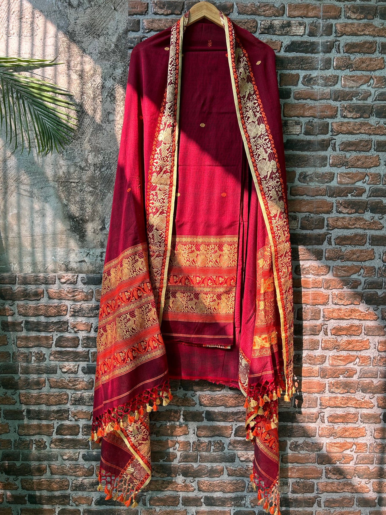 MADHUBALA : HANDLOOM JAMDANI PURE MUL COTTON 3 PIECE SUIT SET.