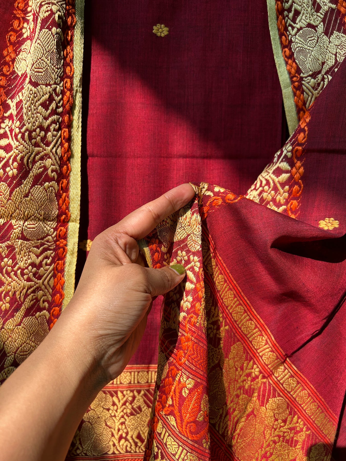 Handloom needle jamdani weaving from West Bengal. |