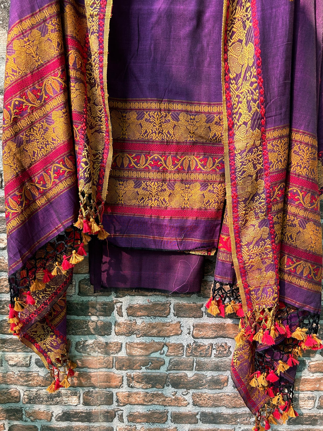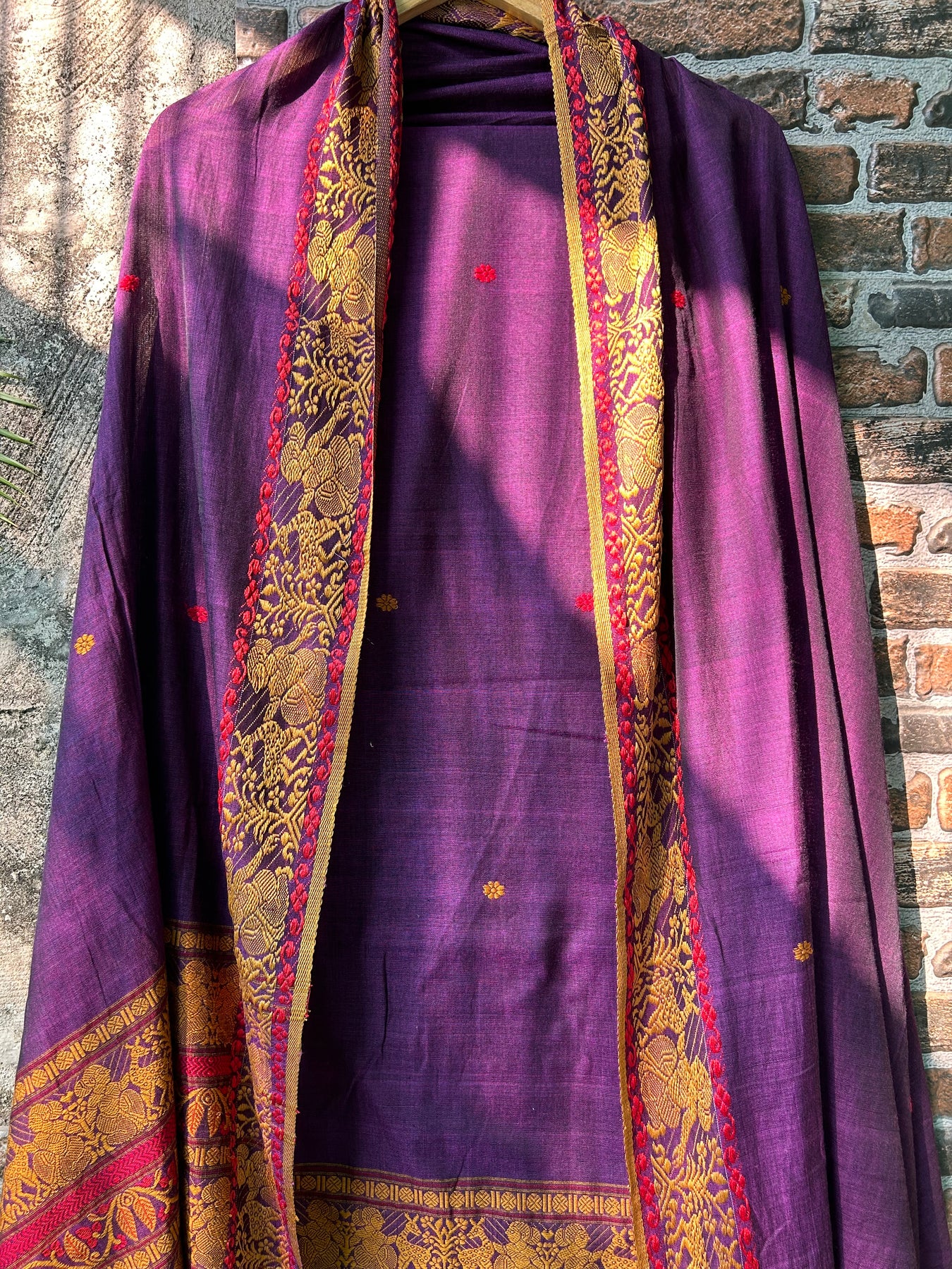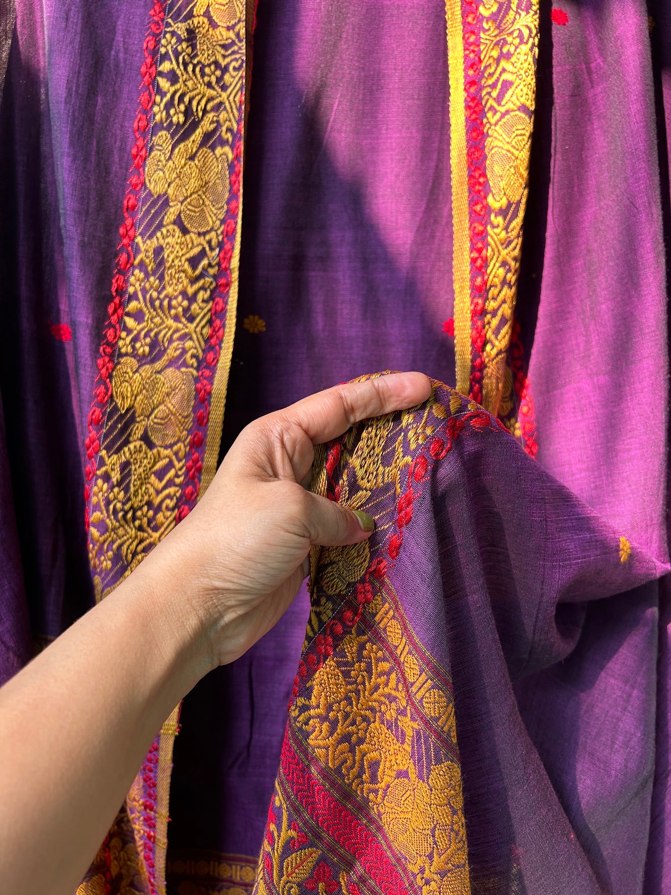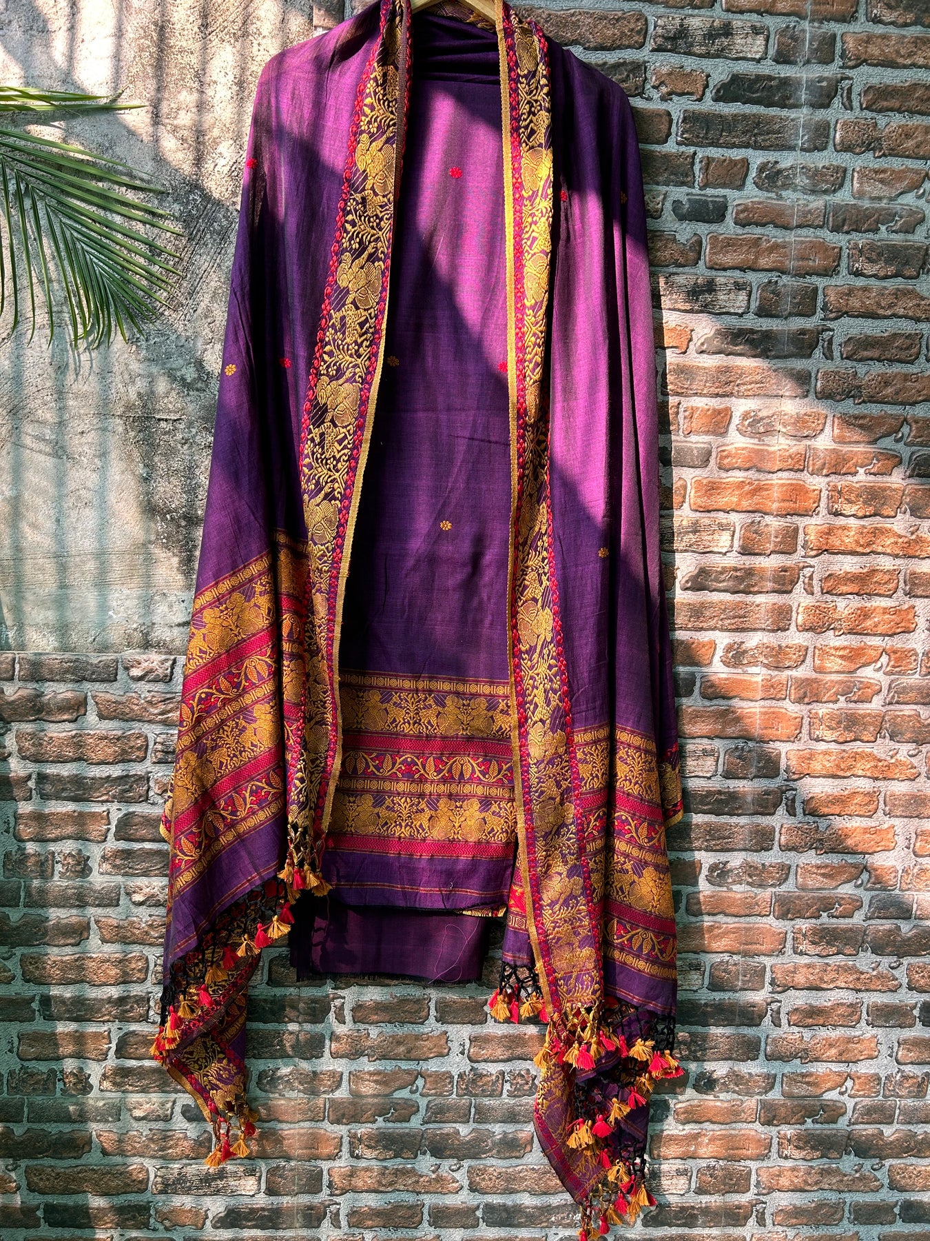 NALINI: HANDLOOM JAMDANI PURE MULMUL COTTON 3 PIECE SUIT SET.