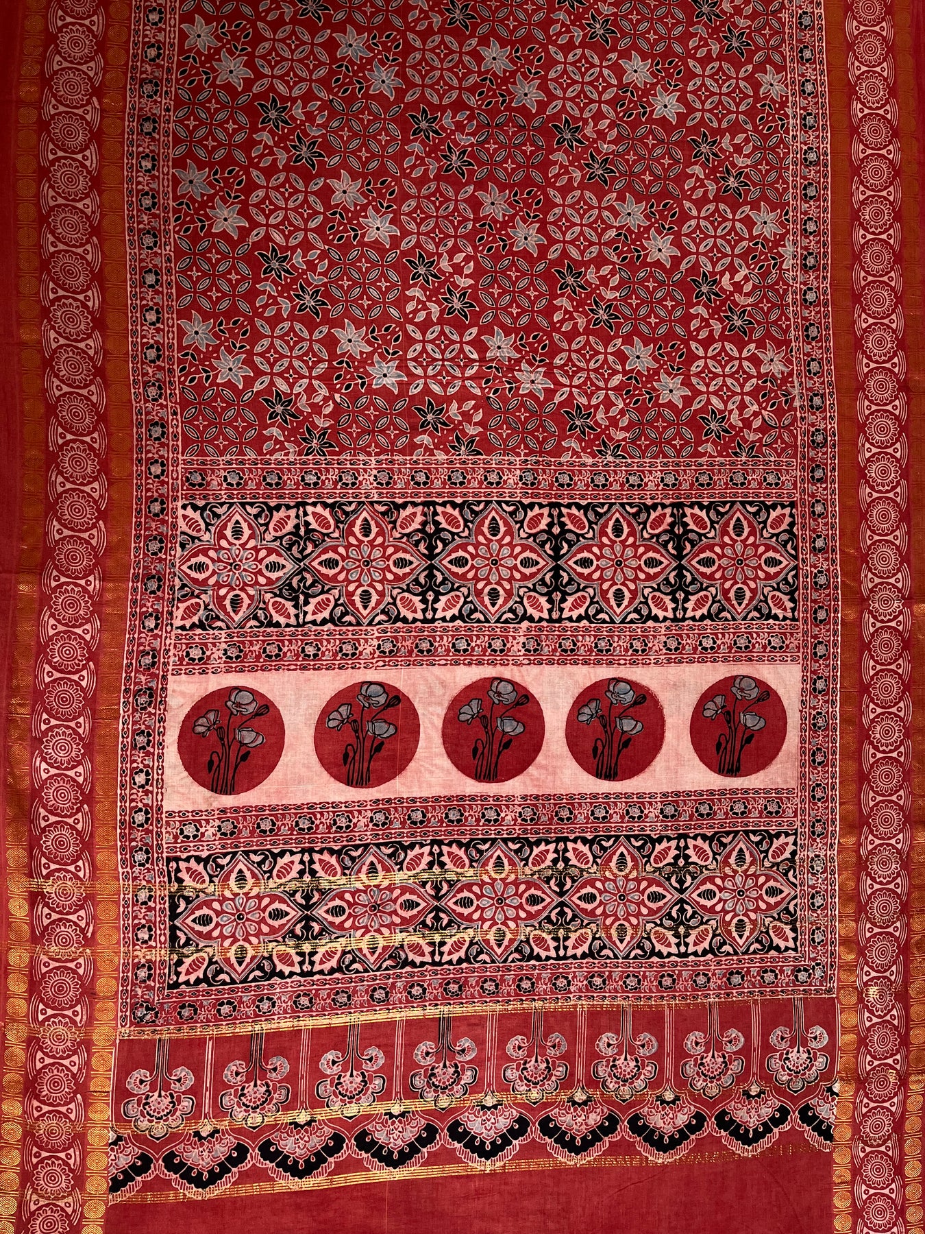 AADHIRA: Handblock printed ajrakh madurai cotton saree