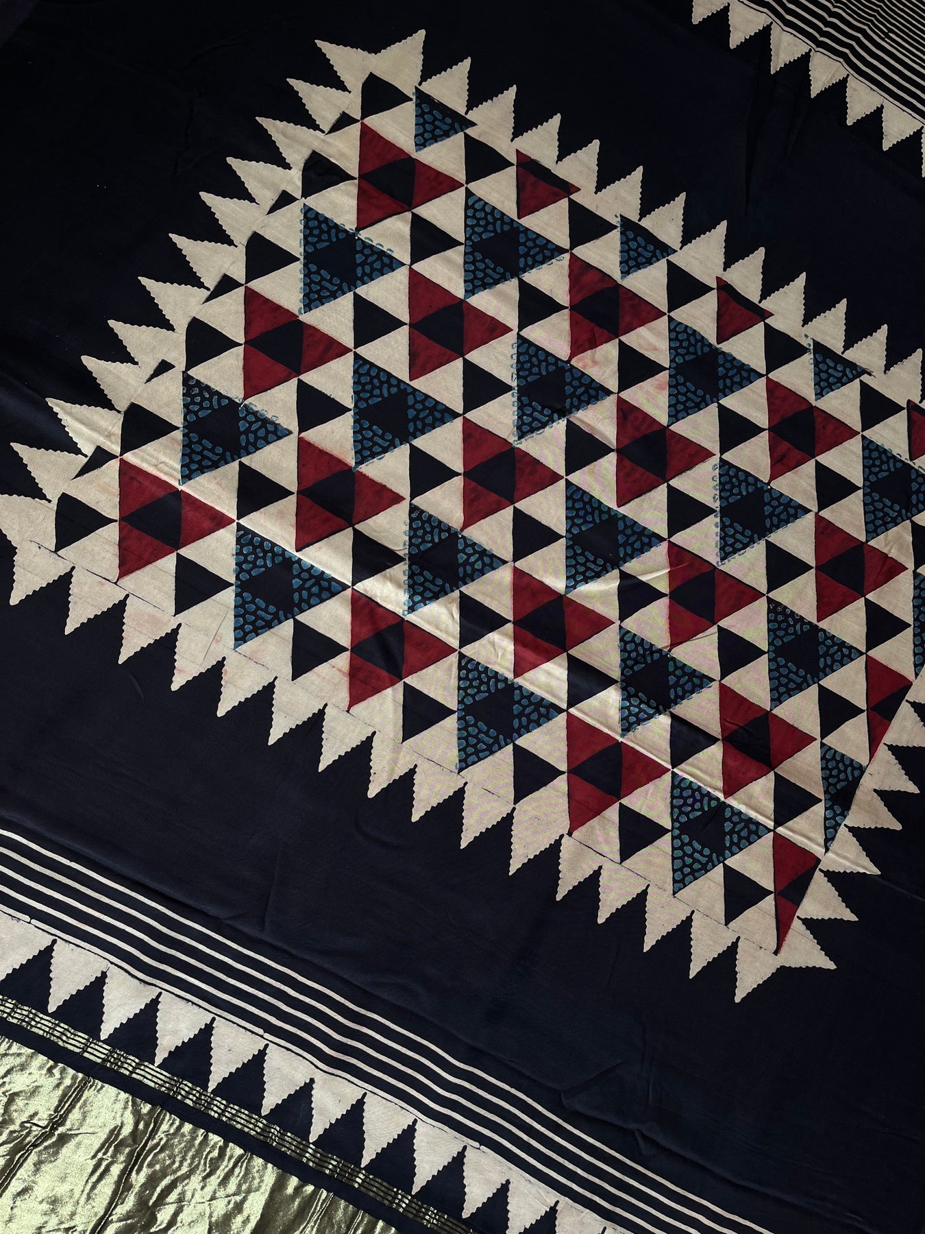 Handblock ajrakh print with natural colors by khtri community from kutch, Gujarat. |